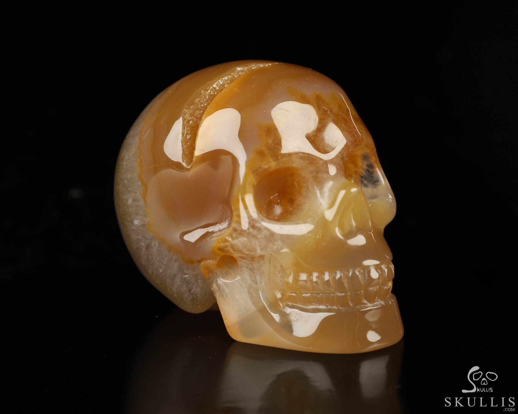 Lifesized 6.8" Agate geode Carved Crystal Skull Super Realistic, Crystal Healing
