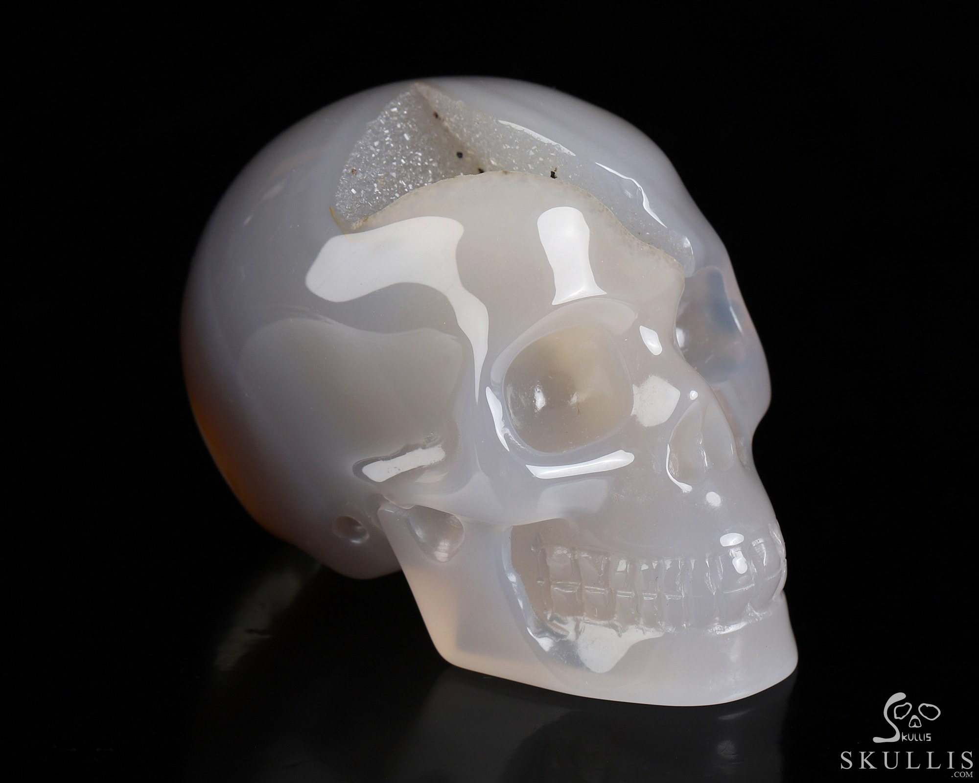 2.0" Agate Geode Carved Crystal Skull,Realistic, Crystal Healing