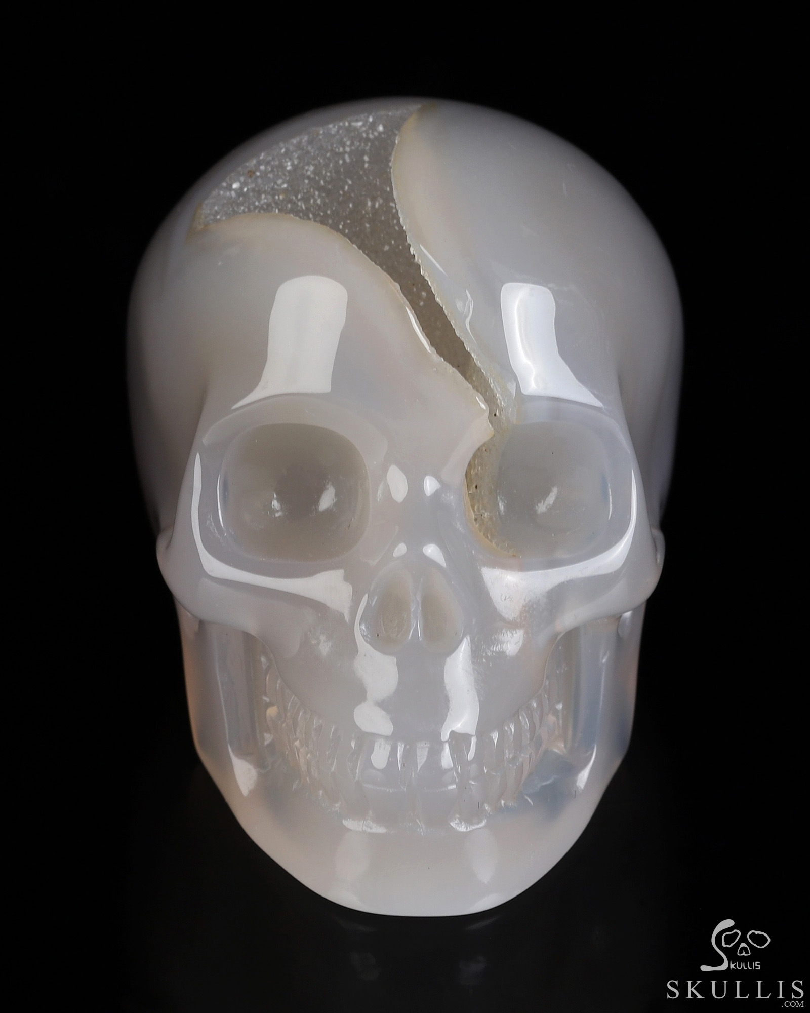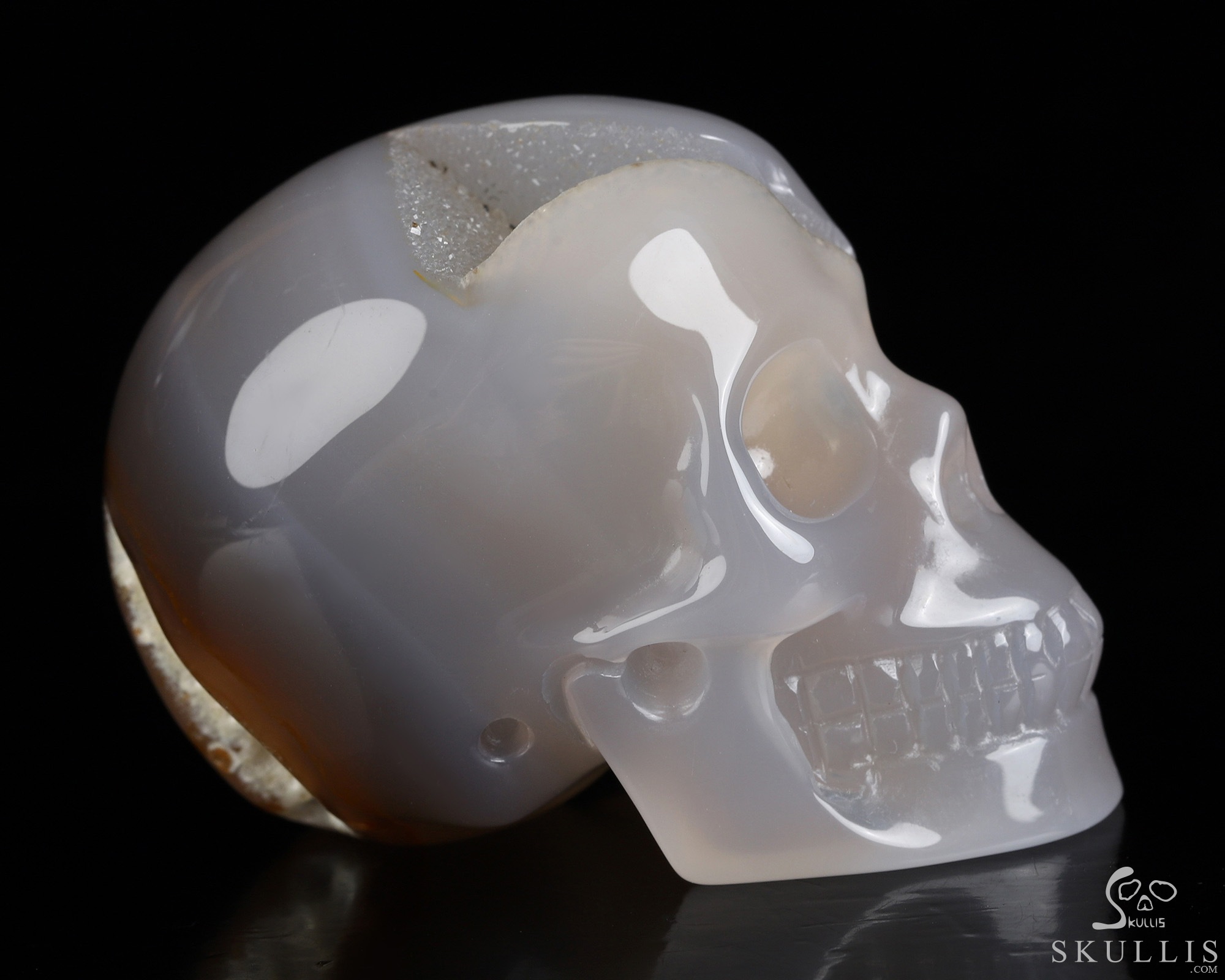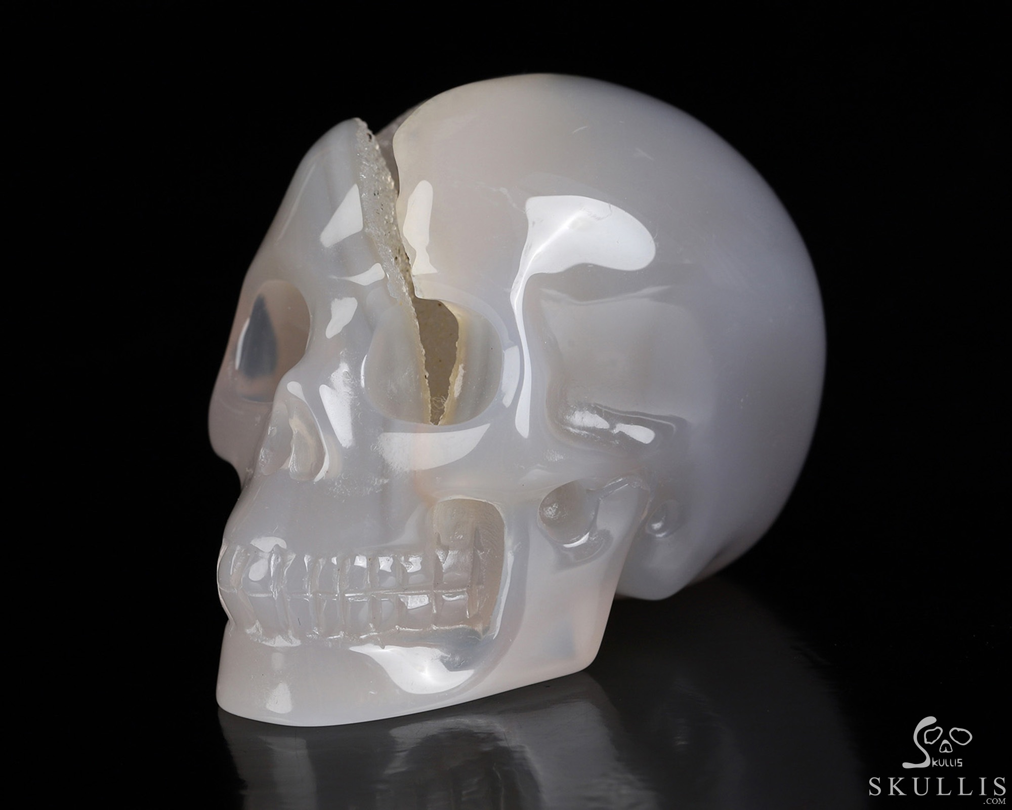 5.2" Agate Geode Hand Carved Crystal Skull, Super Realistic, Crystal Healing