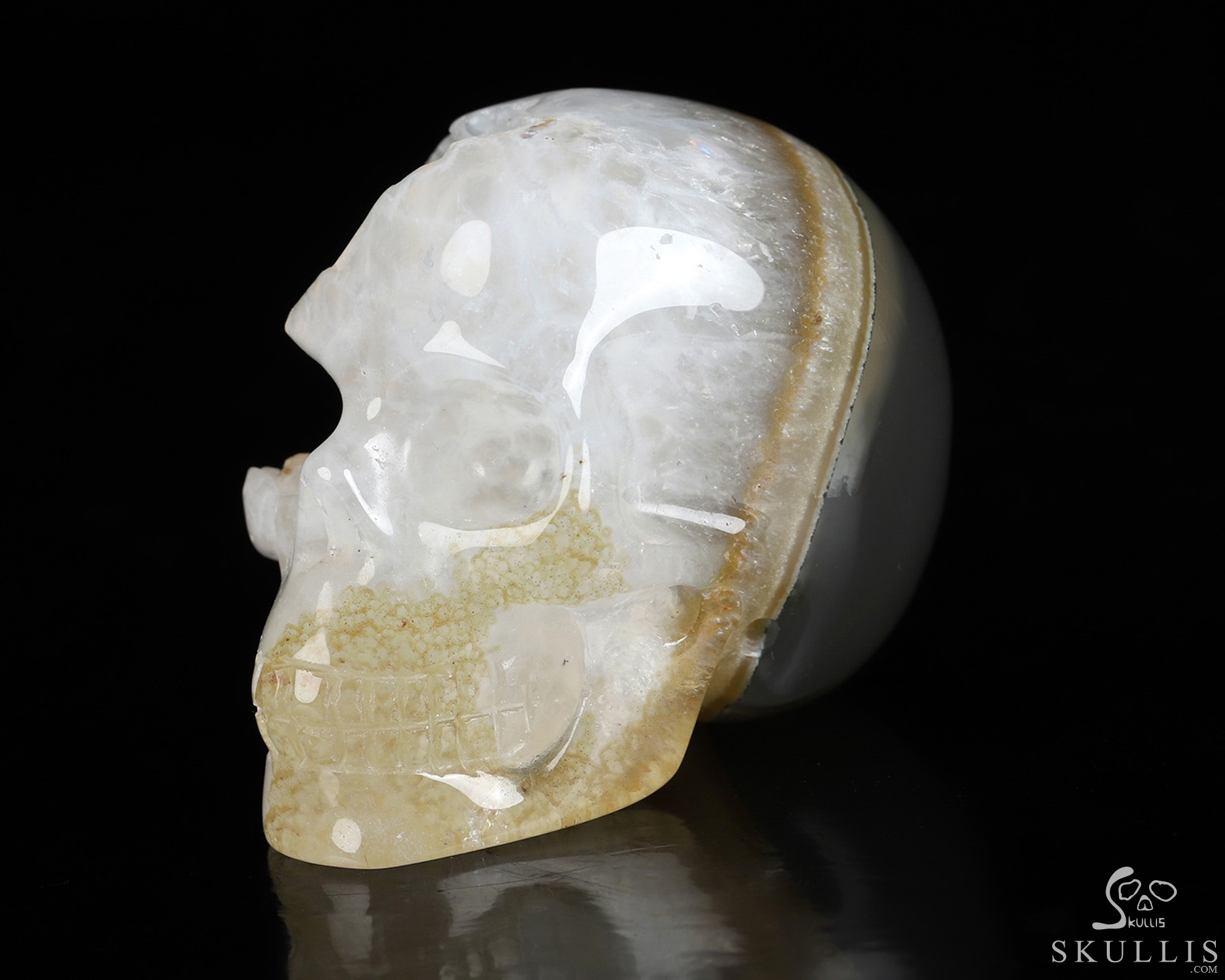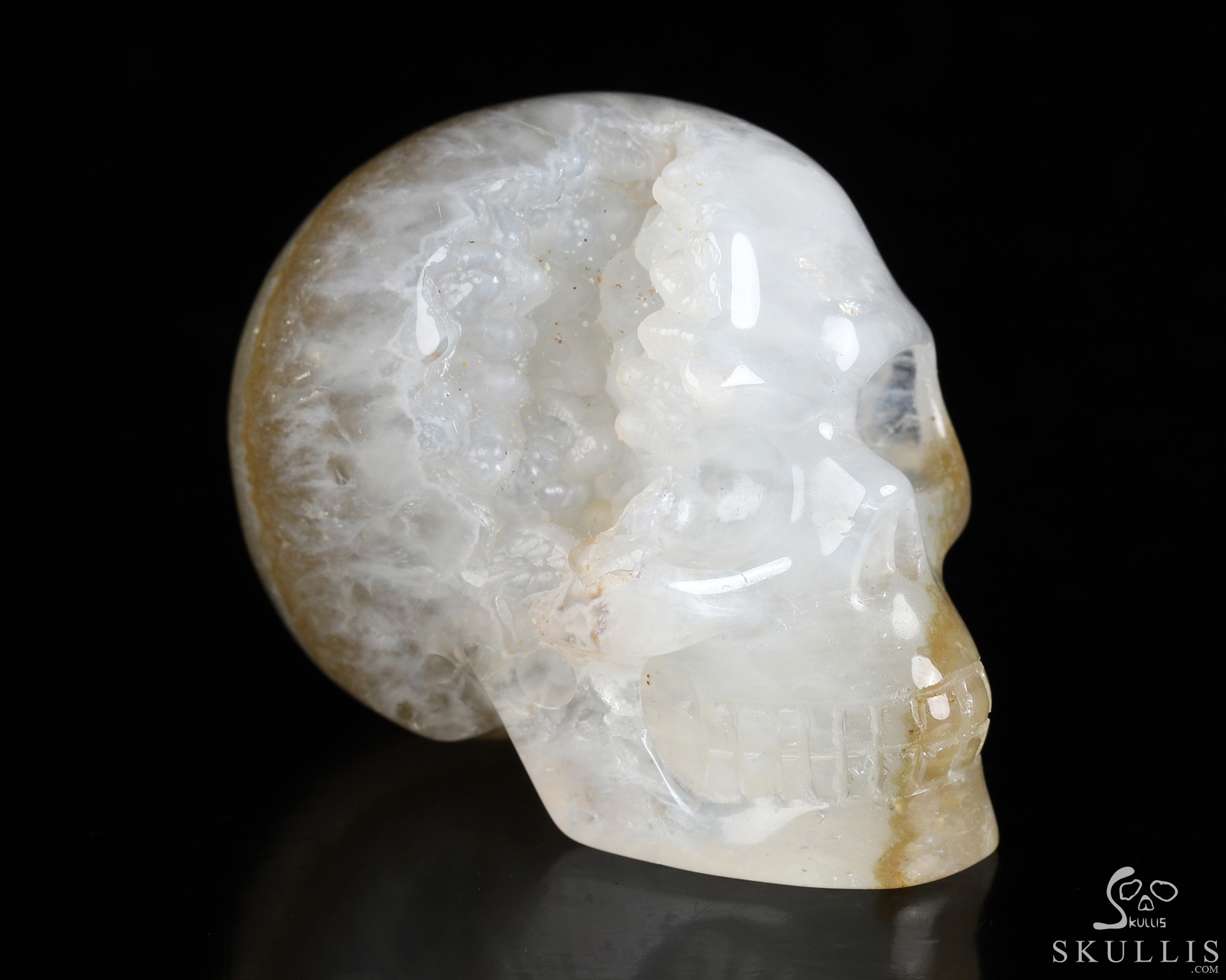 3.9" Agate Geode Hand Carved Crystal Skull, Realistic, Crystal Healing
