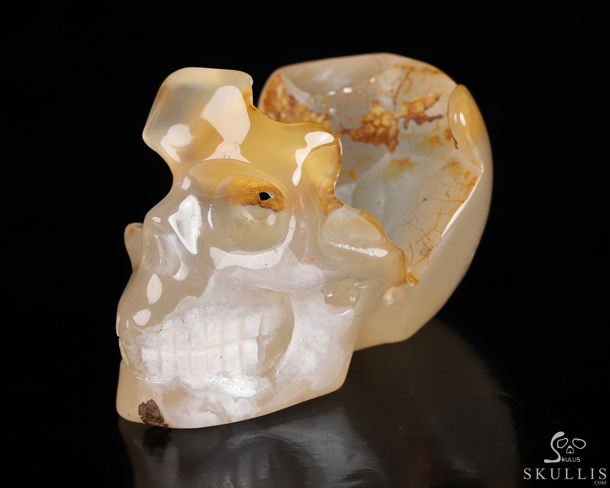 Huge 4.4" Agate Geode Carved Crystal Skull