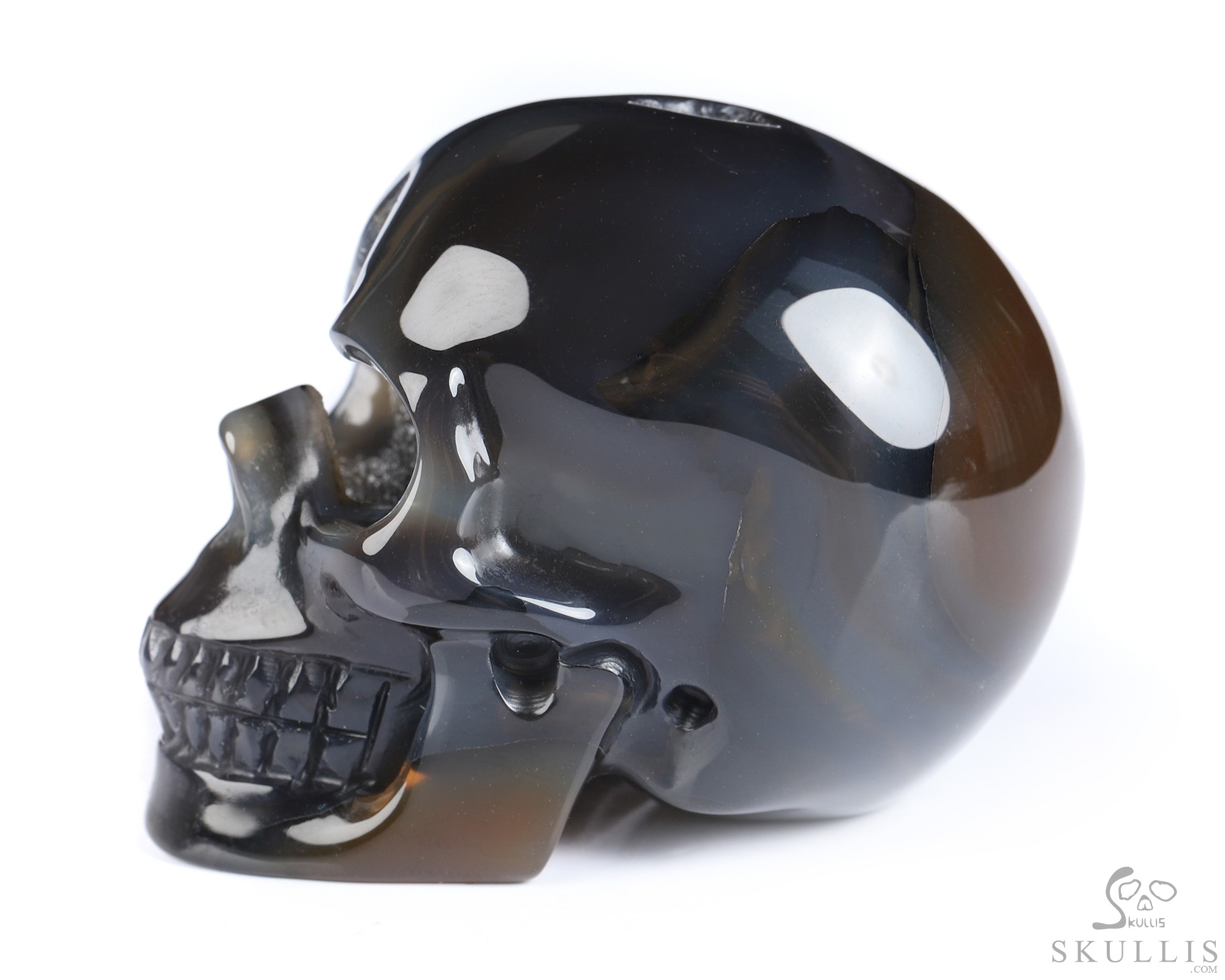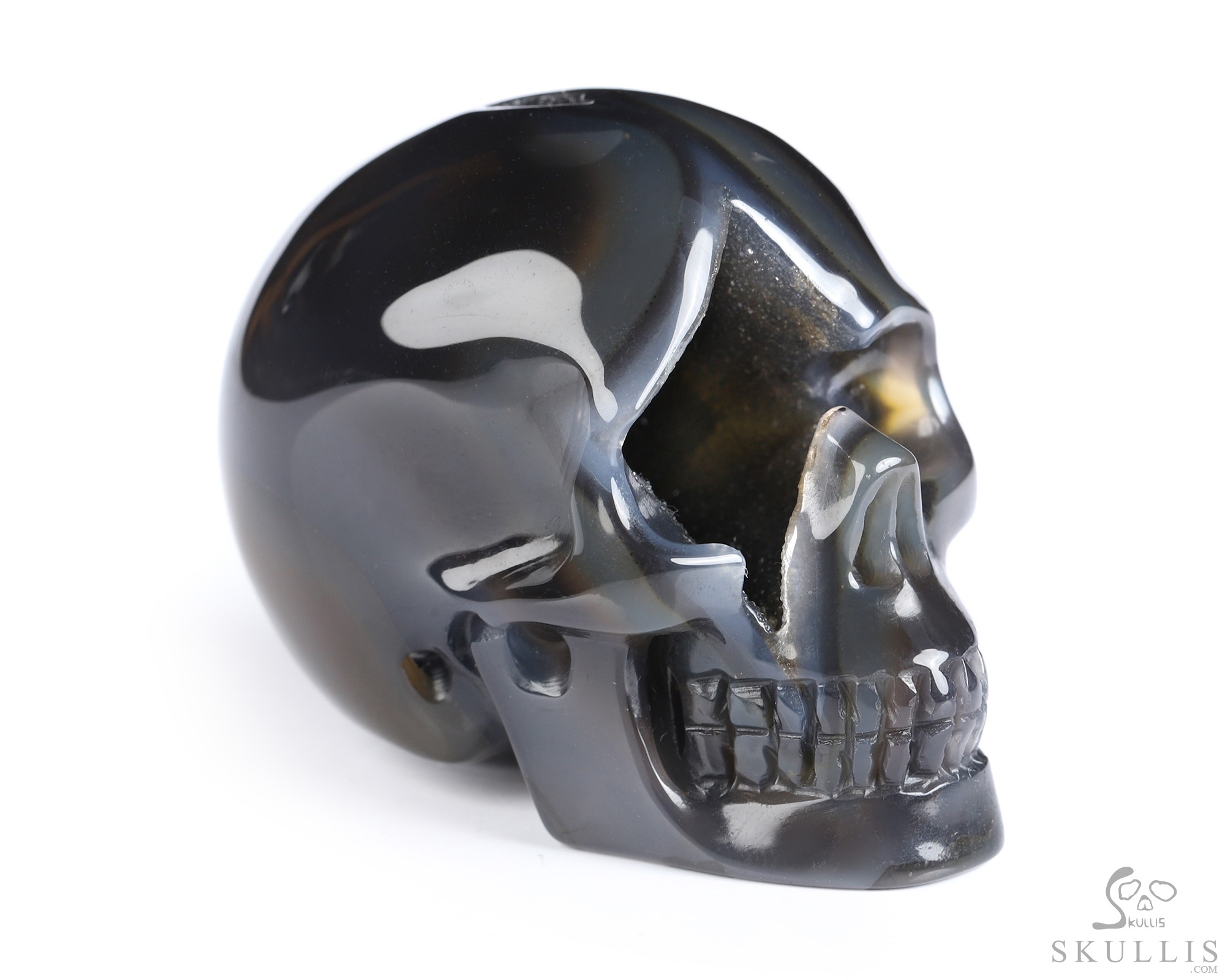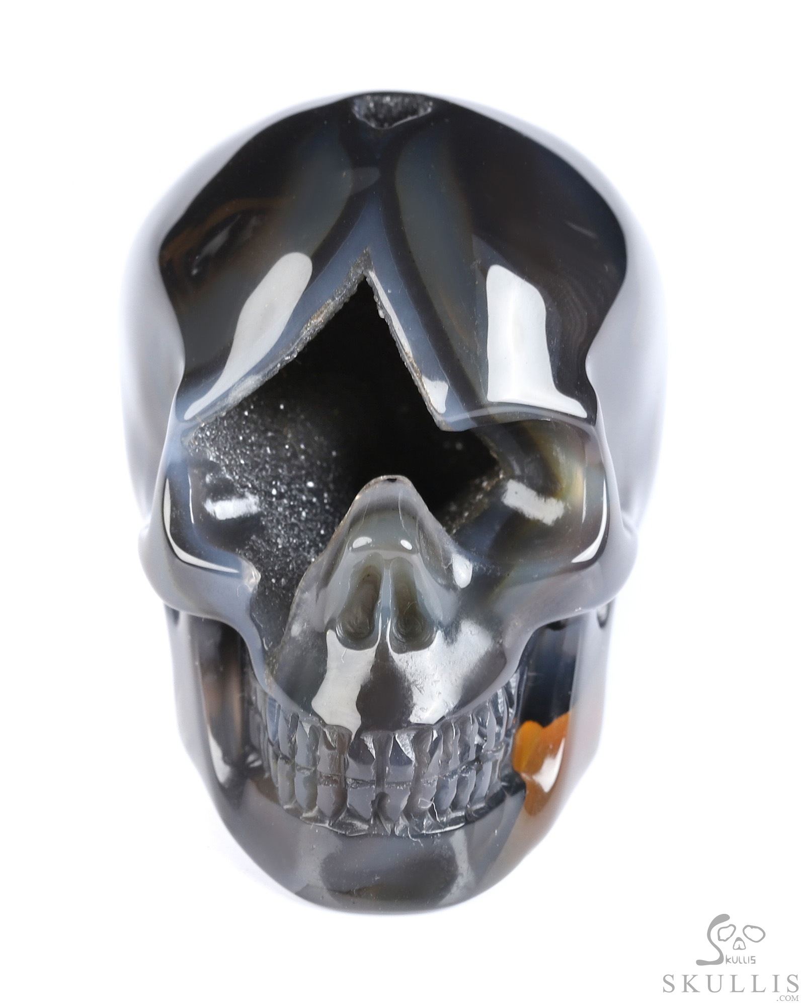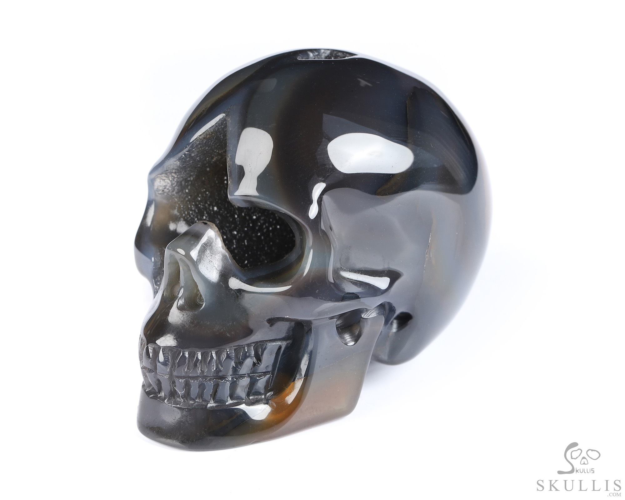 Huge 3.0" Agate Geode Carved Crystal Skull, Realistic, Crystal Healing
