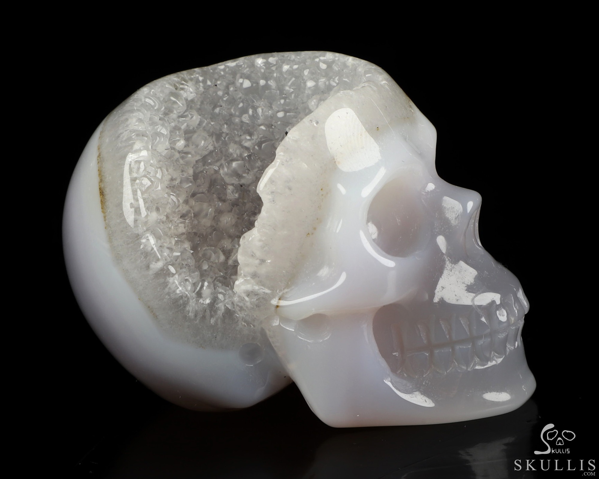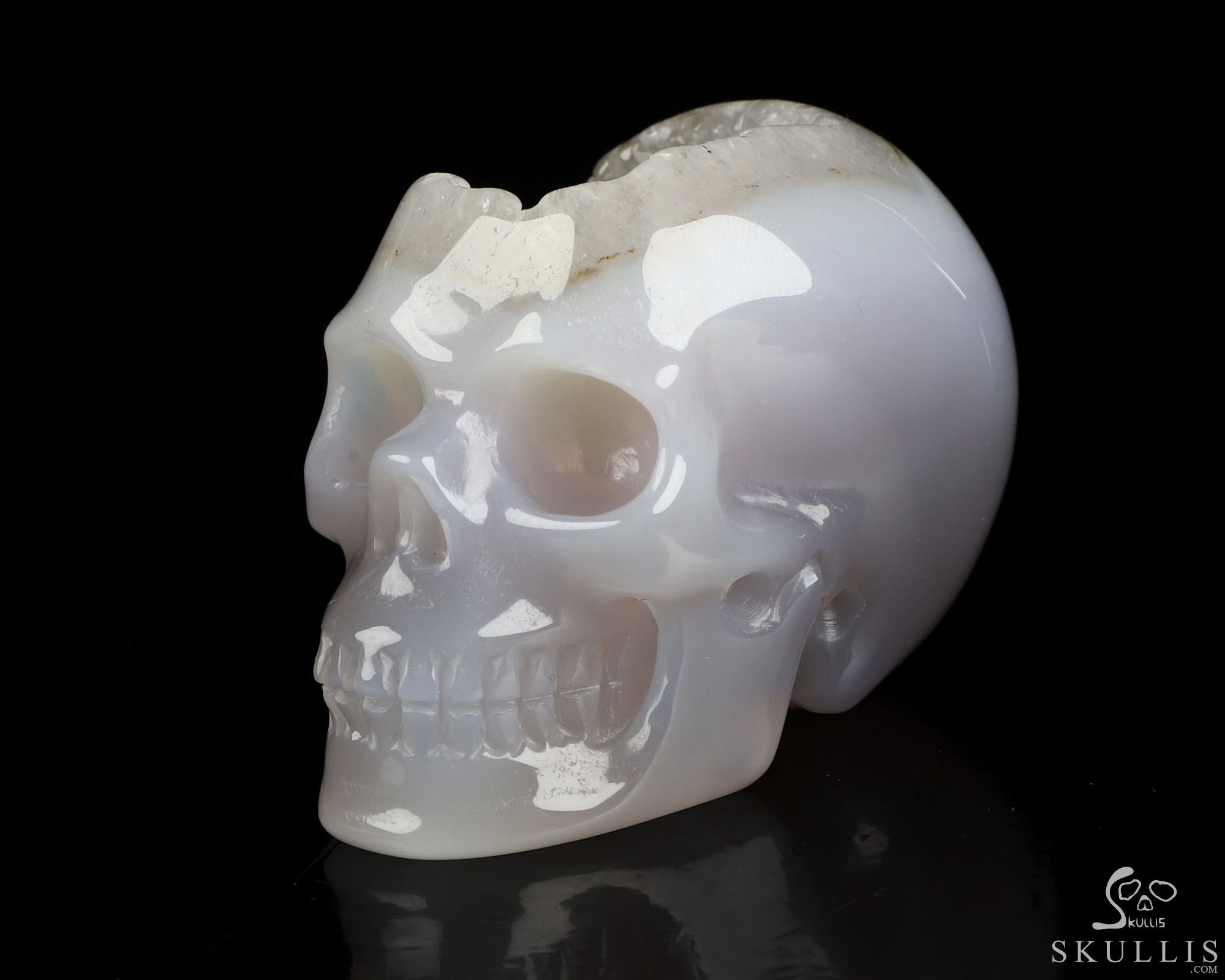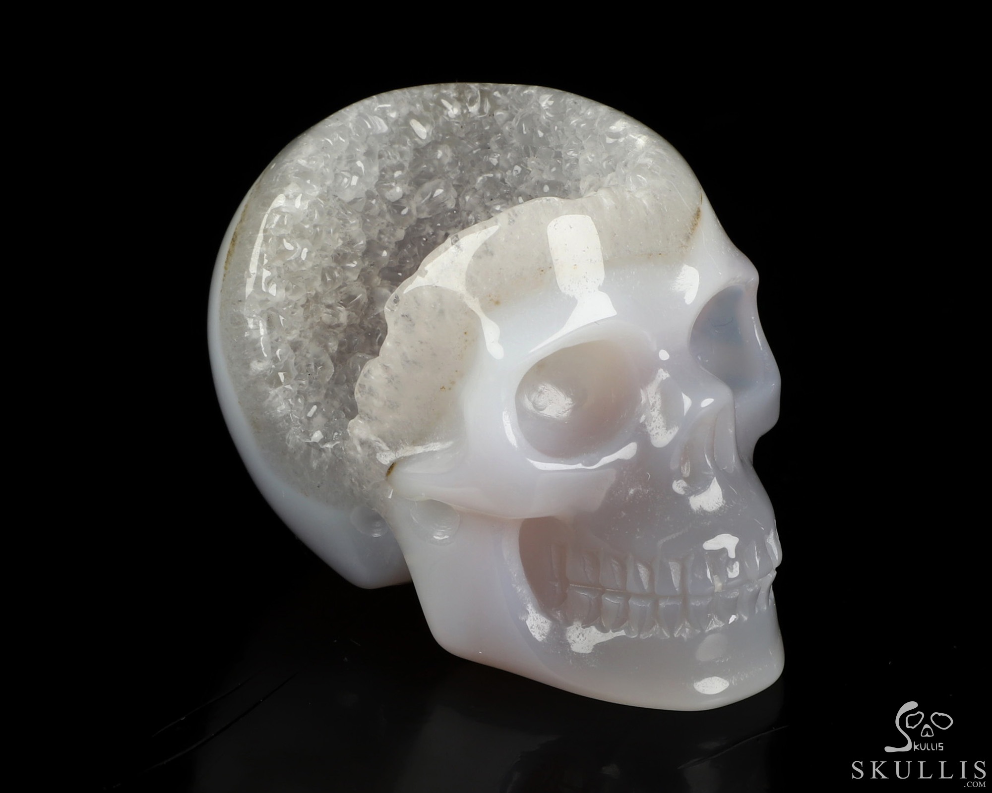 Lifesized 7.1" Agate Geode Hand Carved Crystal Skull, Realistic, Crystal Healing