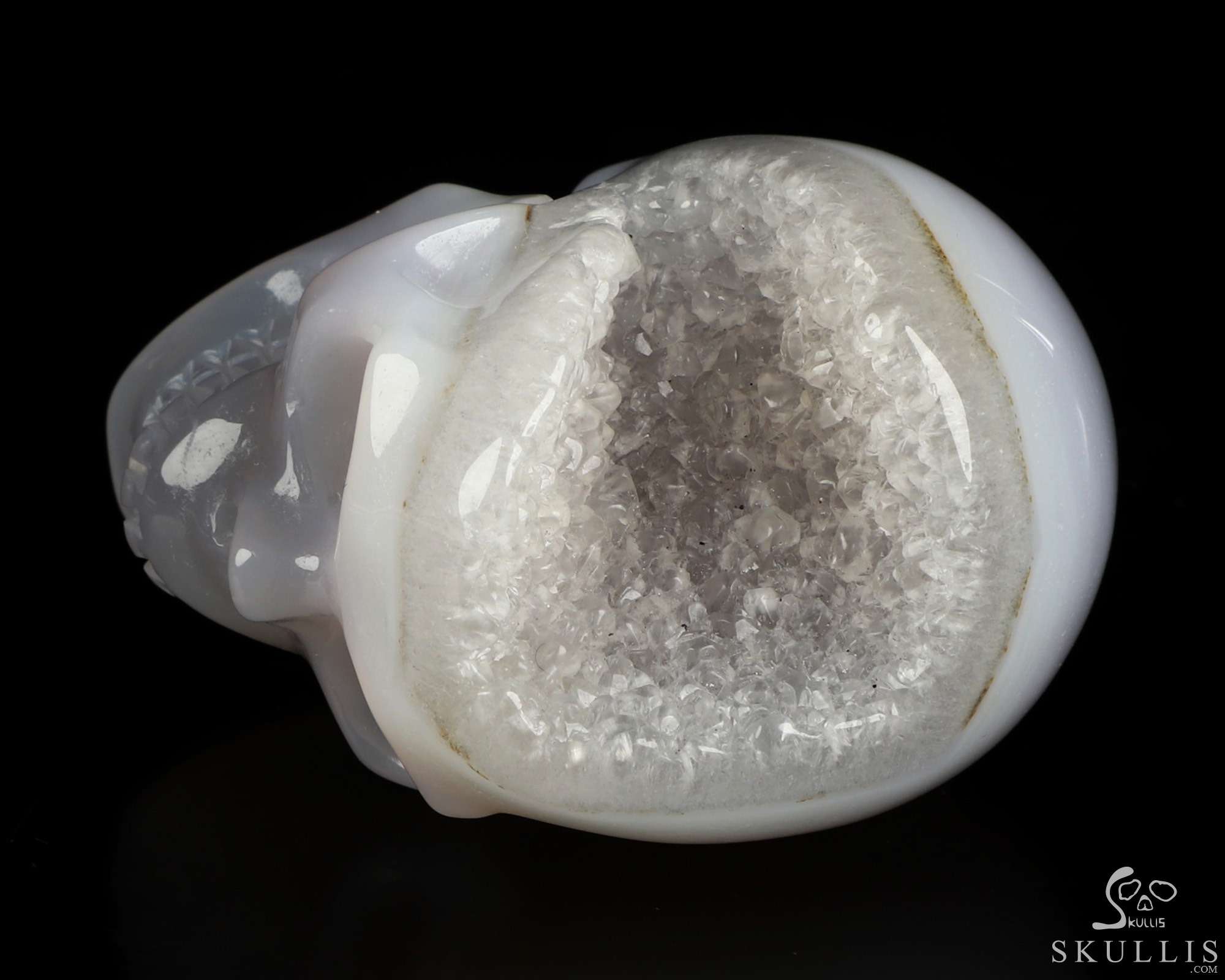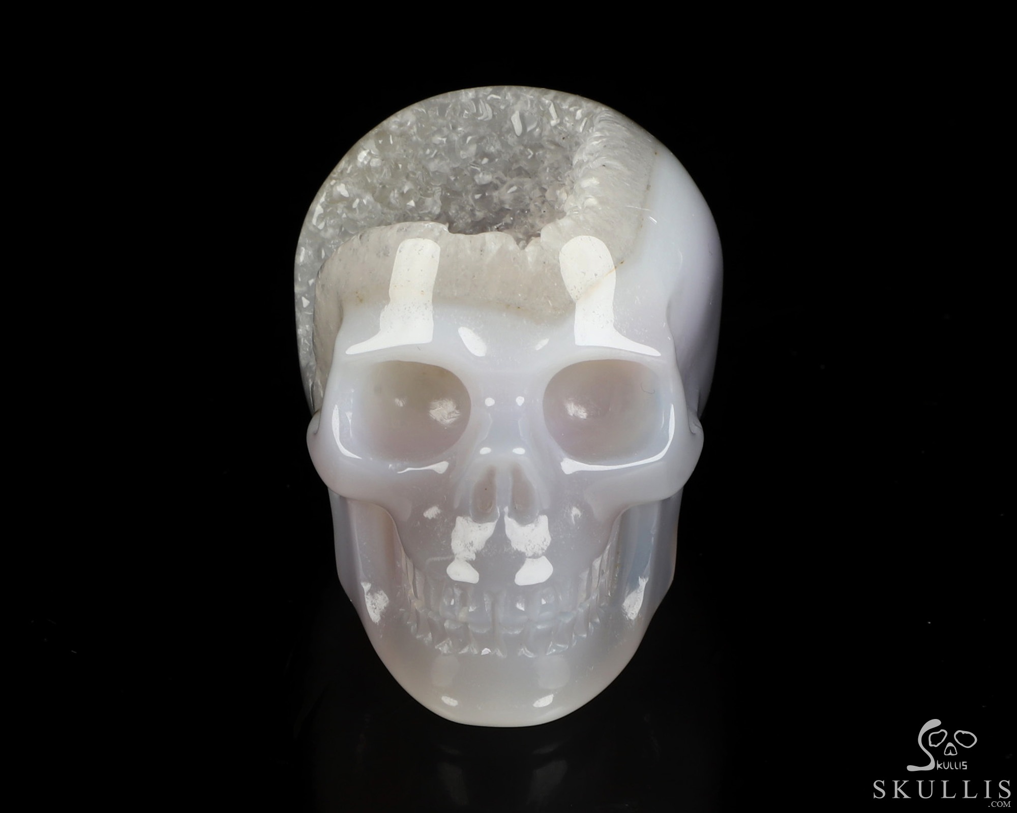 Huge 4.4" Agate Geode Carved Crystal Skull