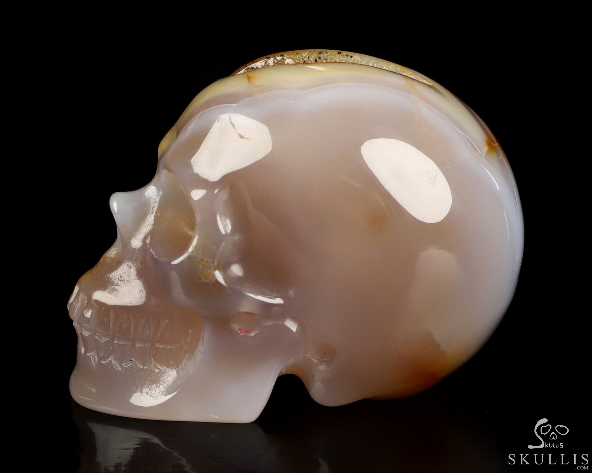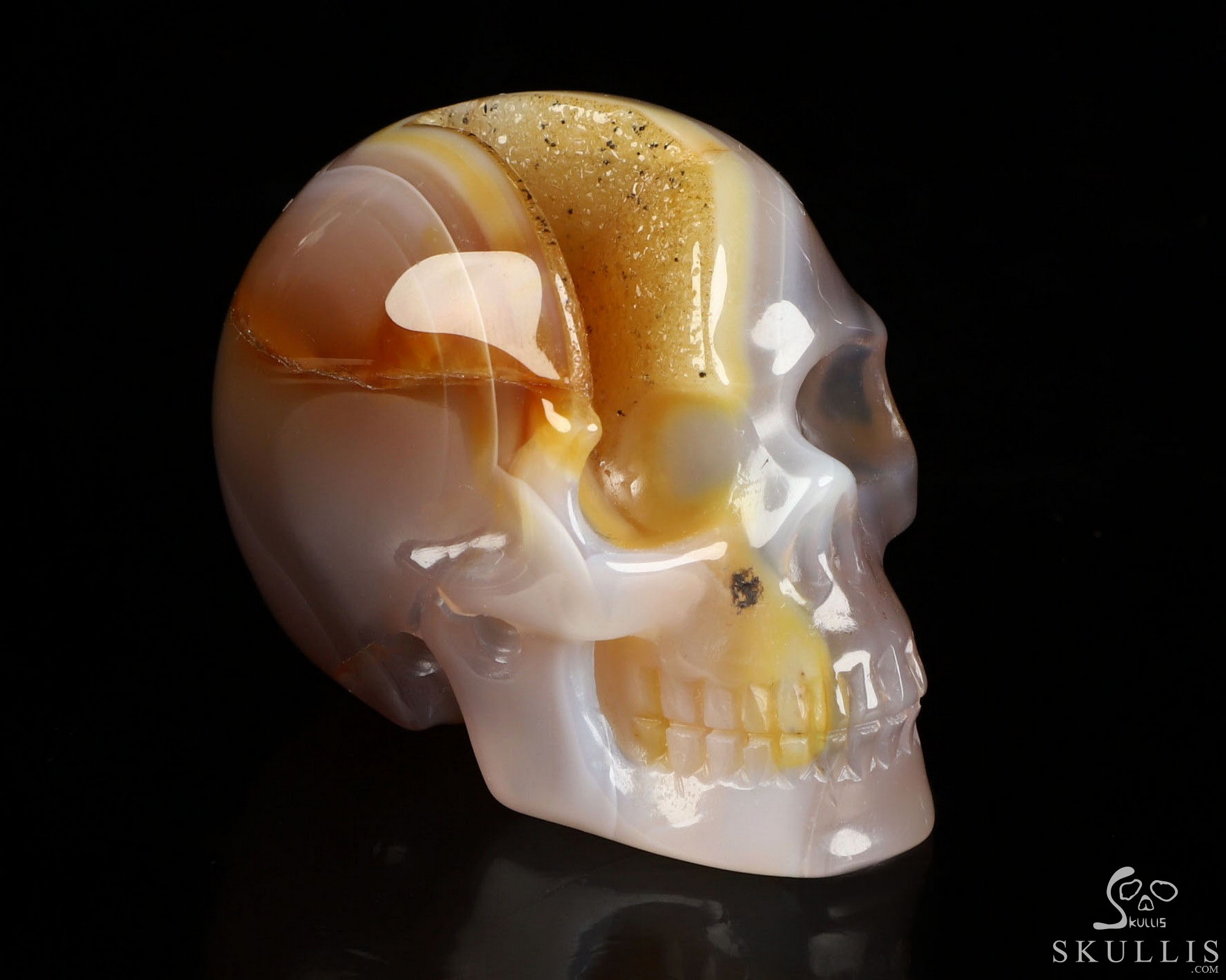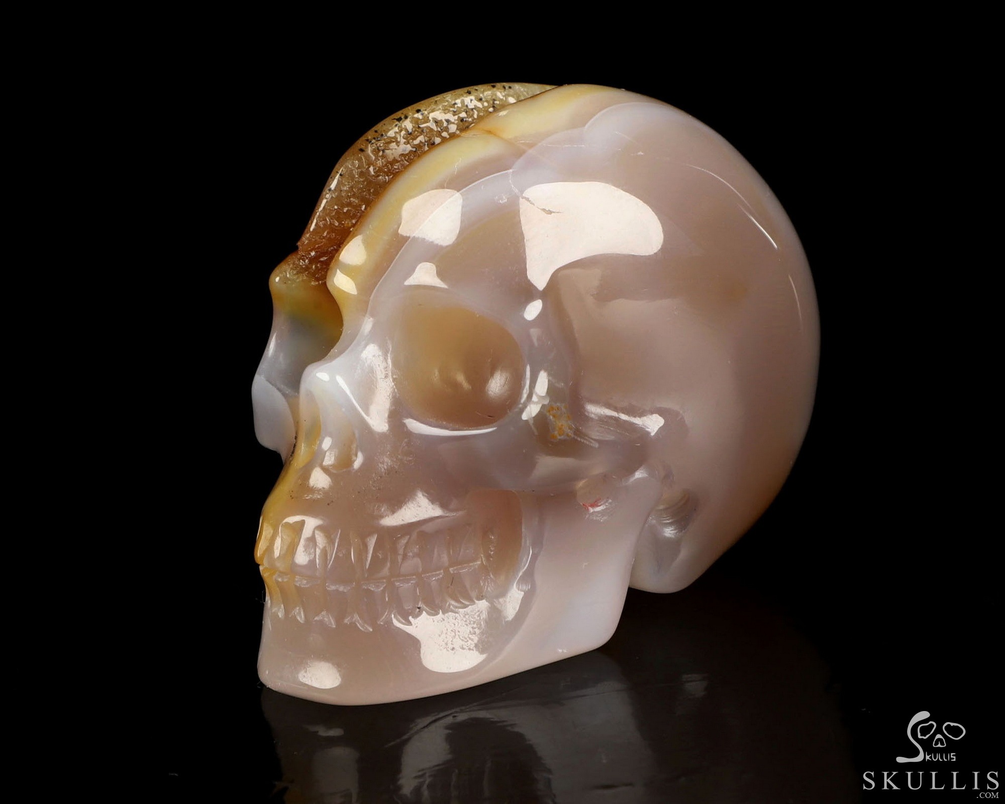 5.1" Agate Geode Hand Carved Crystal Skull, Realistic, Crystal Healing