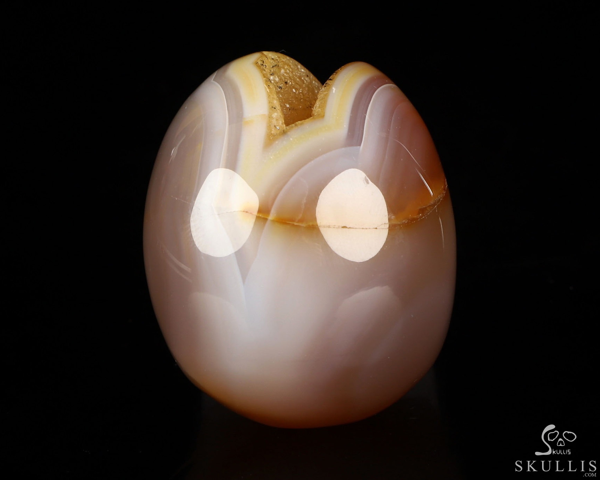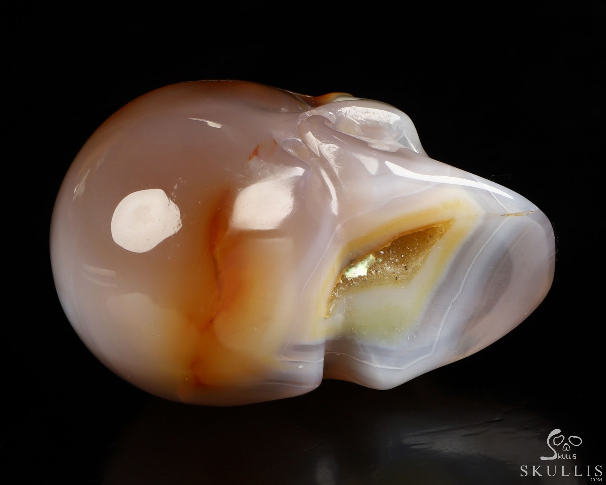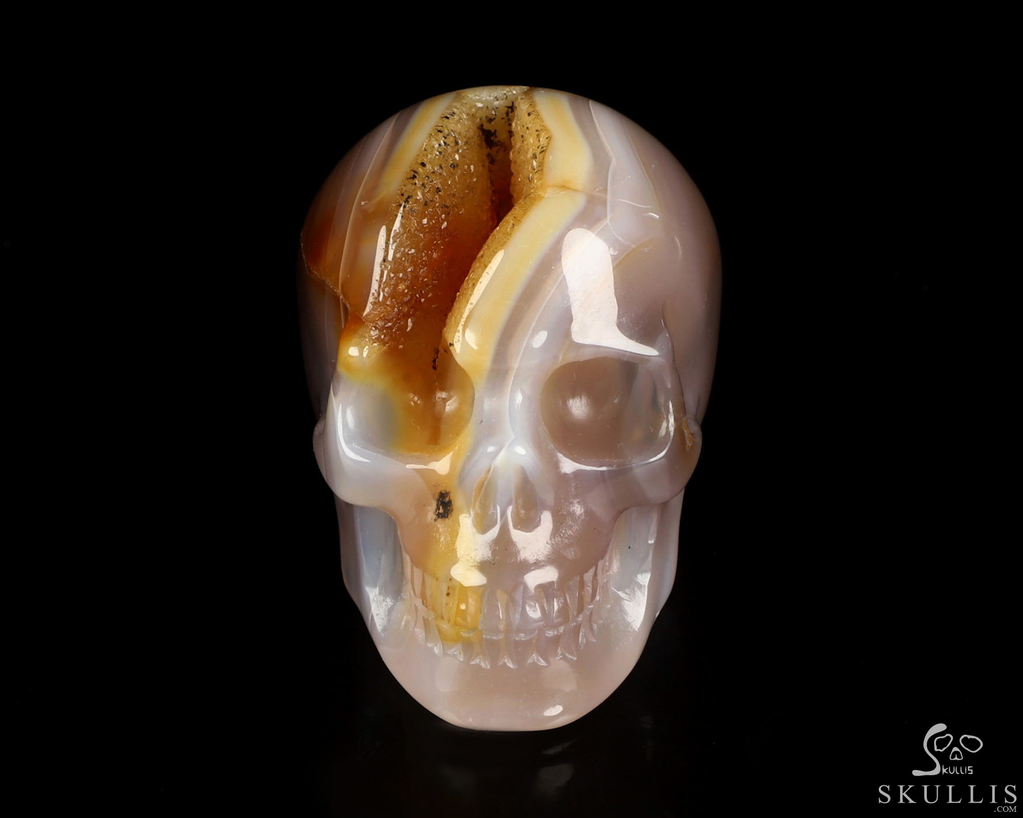 Huge 4.4" Agate Geode Carved Crystal Skull