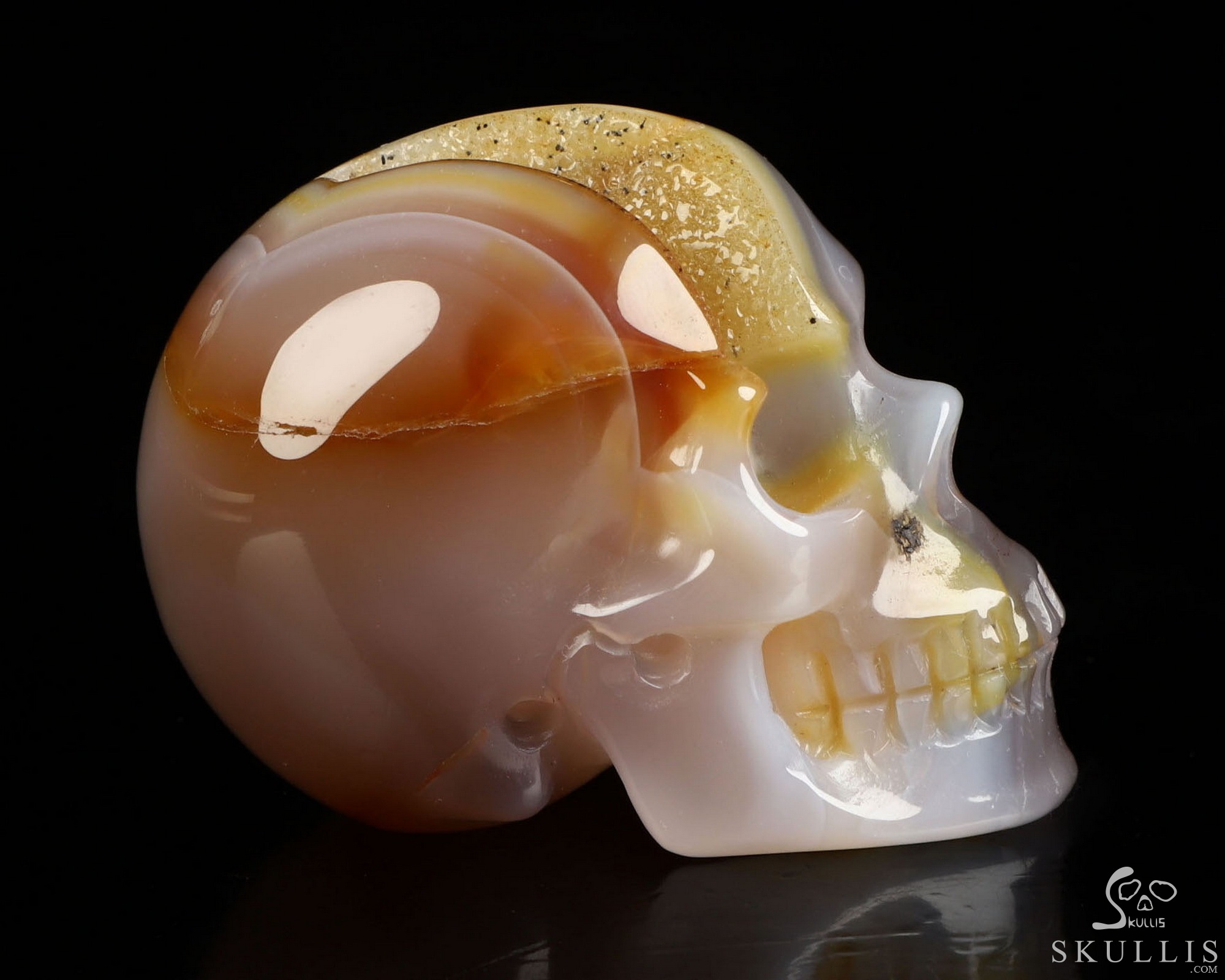 2.0" Agate Geode Hand Carved Crystal Skull, Realistic, Crystal Healing