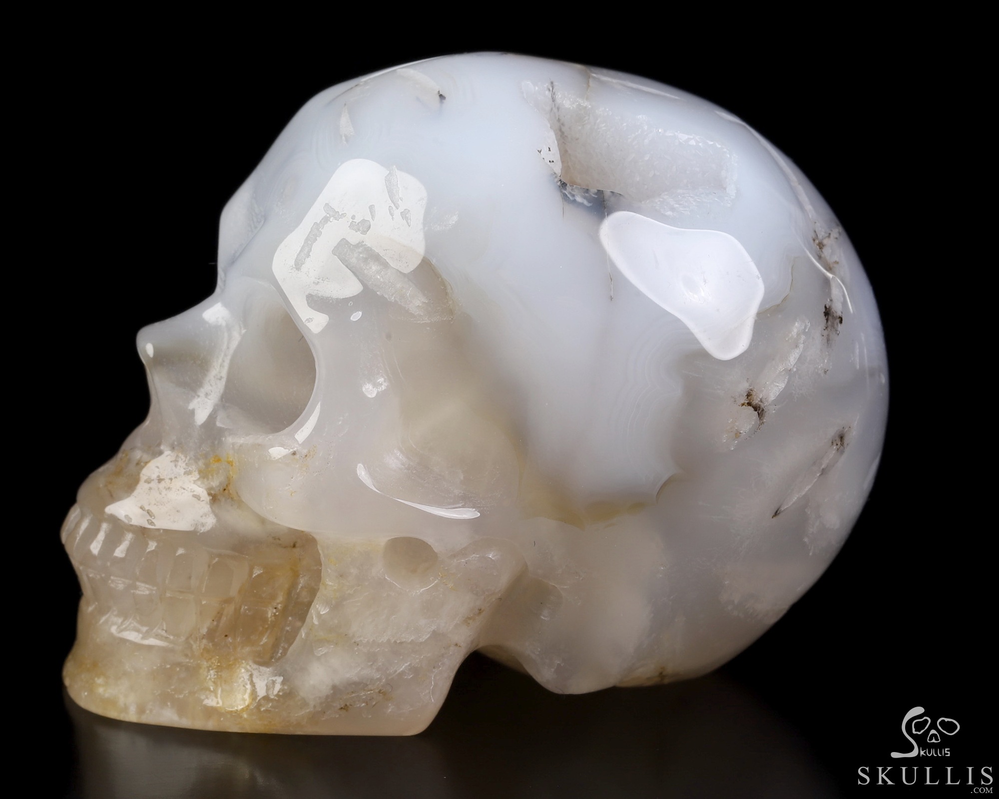 Lifesized 6.9" Agate Geode Hand Carved Crystal Skull with Stand, Crystal Healing
