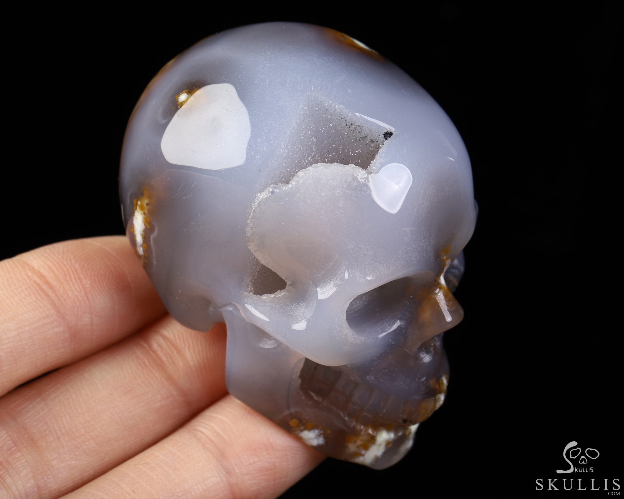 2.0" Agate Geode Carved Crystal Skull,Realistic, Crystal Healing