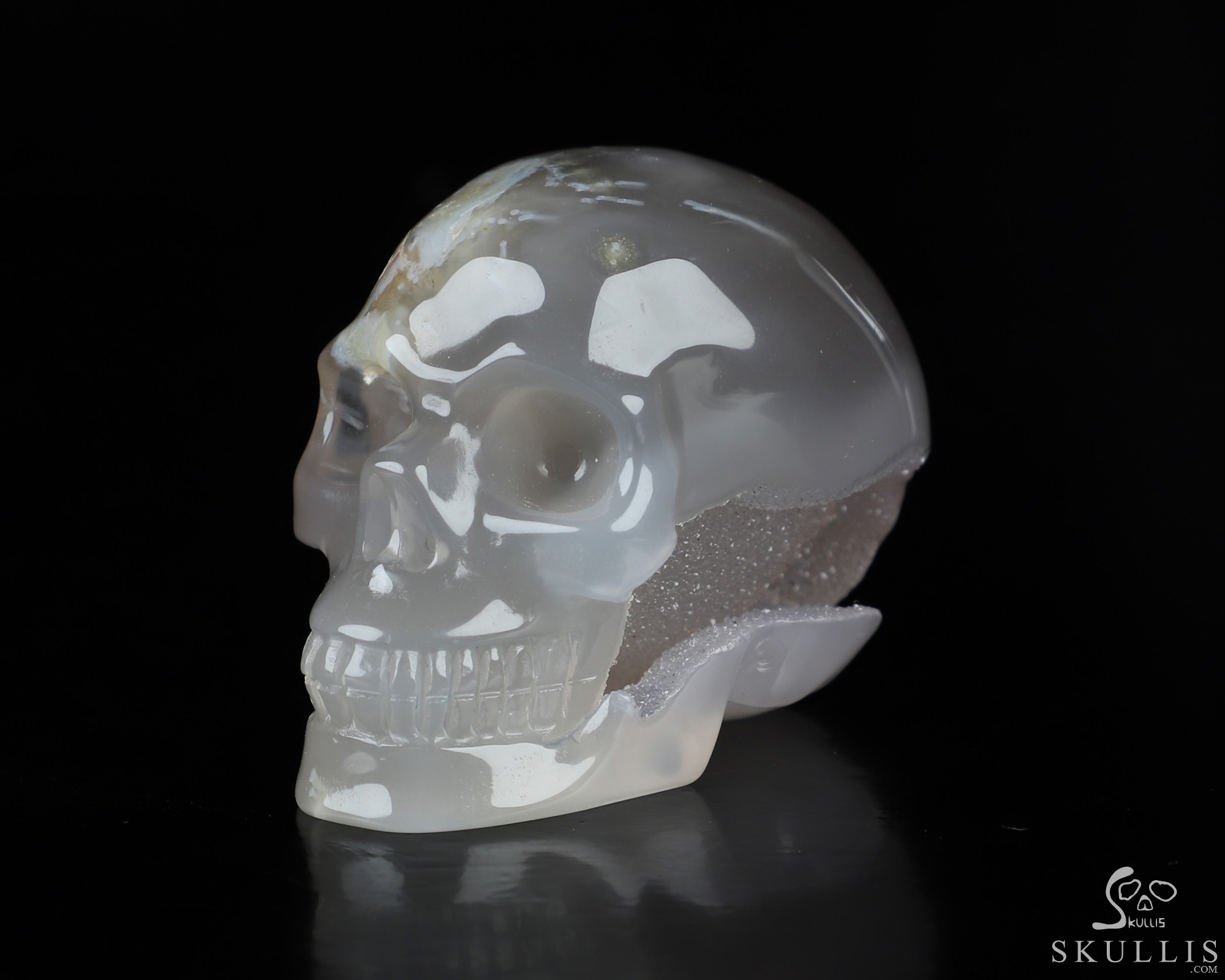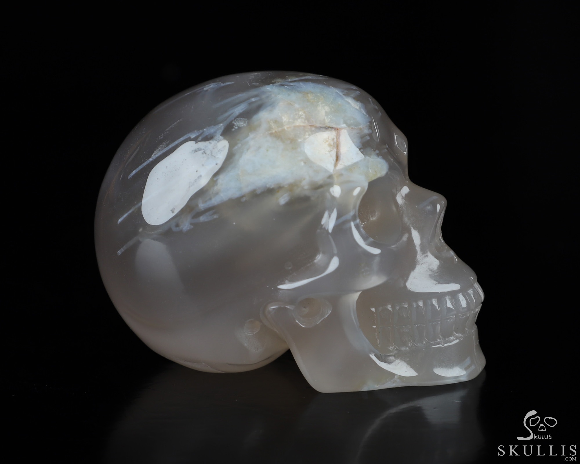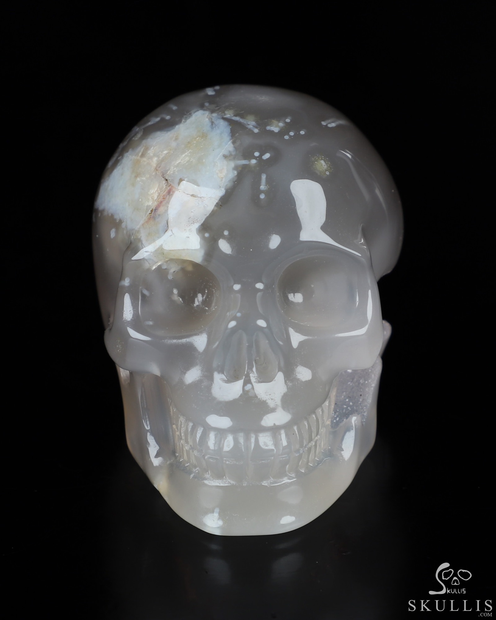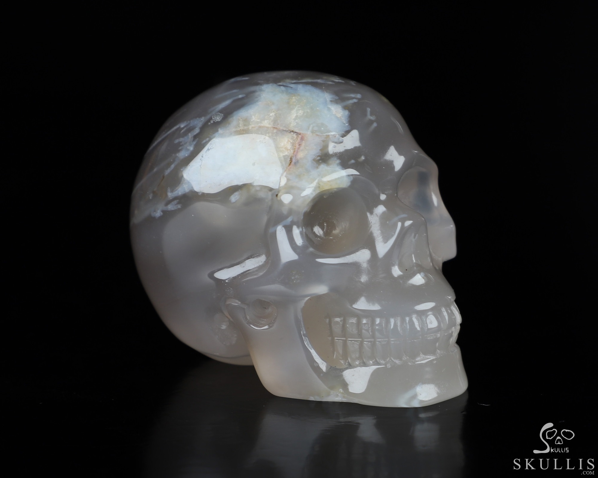 Super Realistic! Lifesized 7.0" Agate Hand Carved Crystal Skull, Crystal Healing