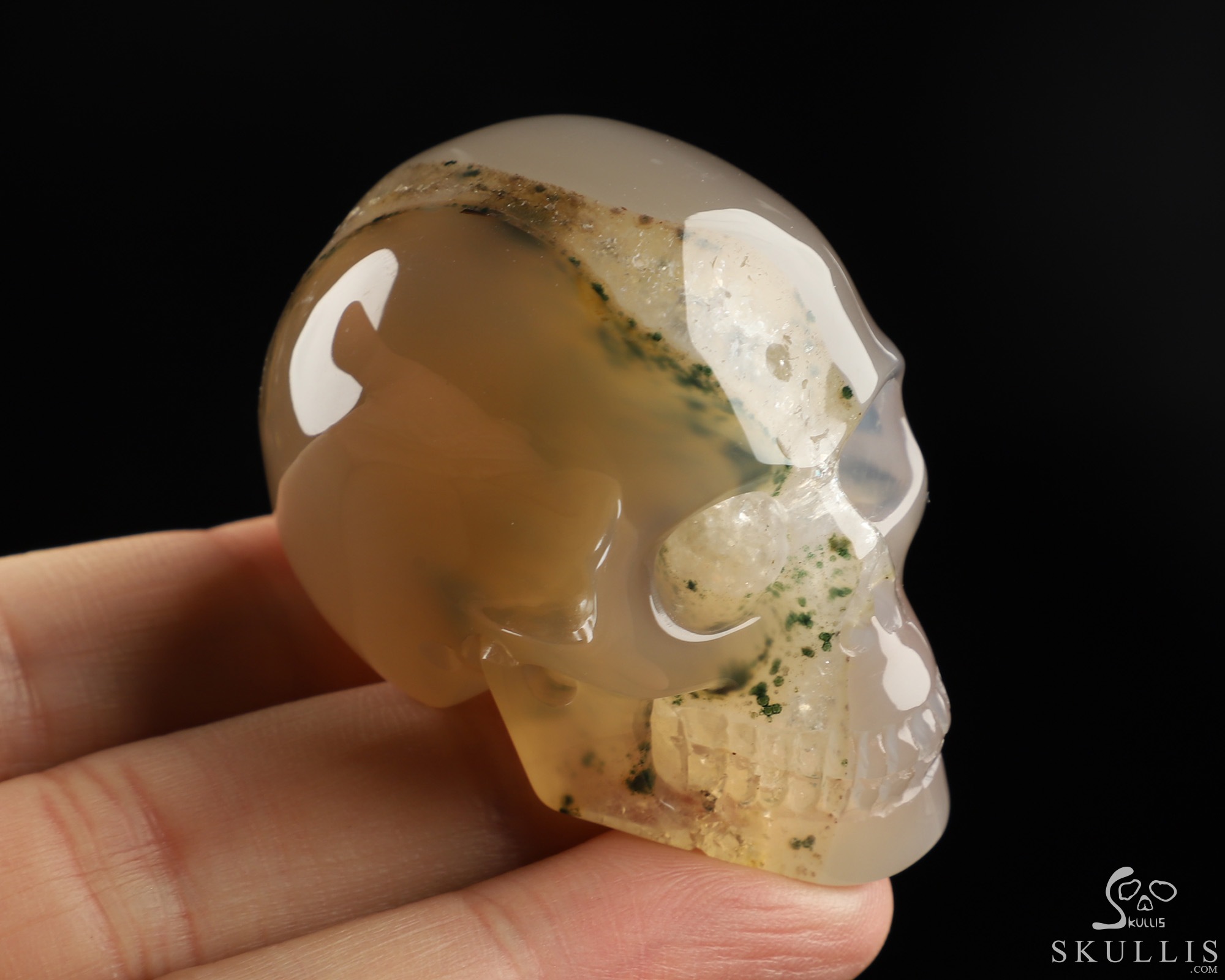 2.0" Agate Hand Carved Crystal Skull, Realistic, Crystal Healing