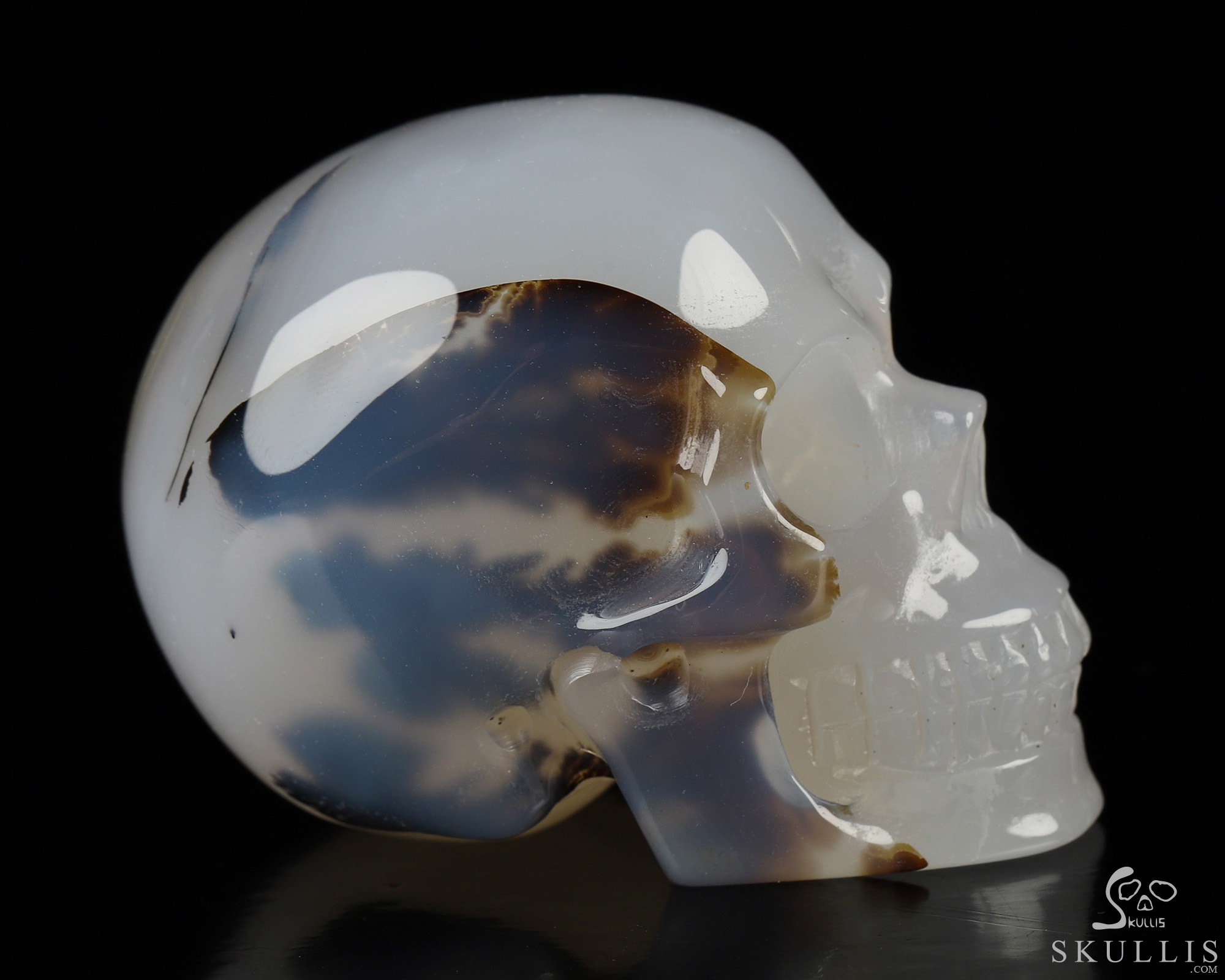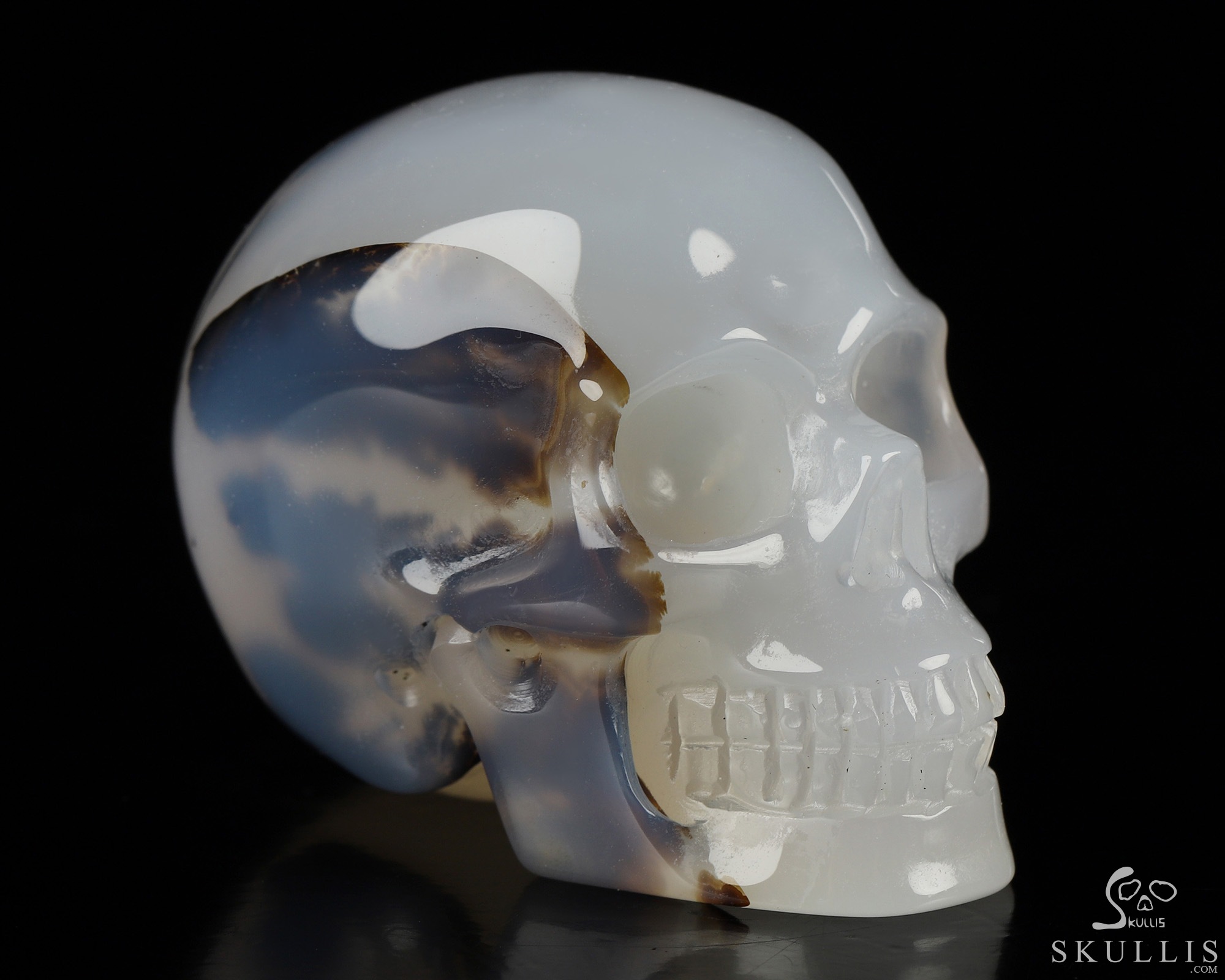 4.1" Agate Hand Carved Crystal Skull, Realistic, Crystal Healing