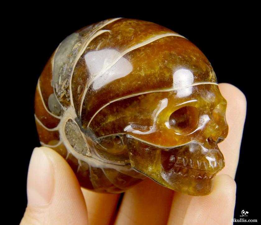 Nice 3.2" Ammonite Fossil Carved Crystal Skull