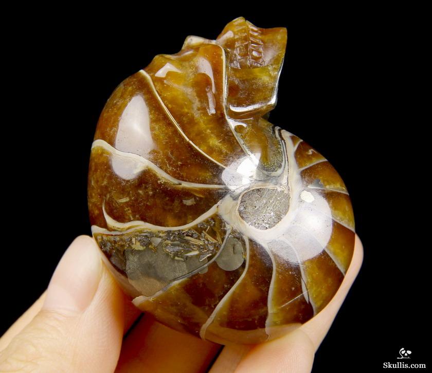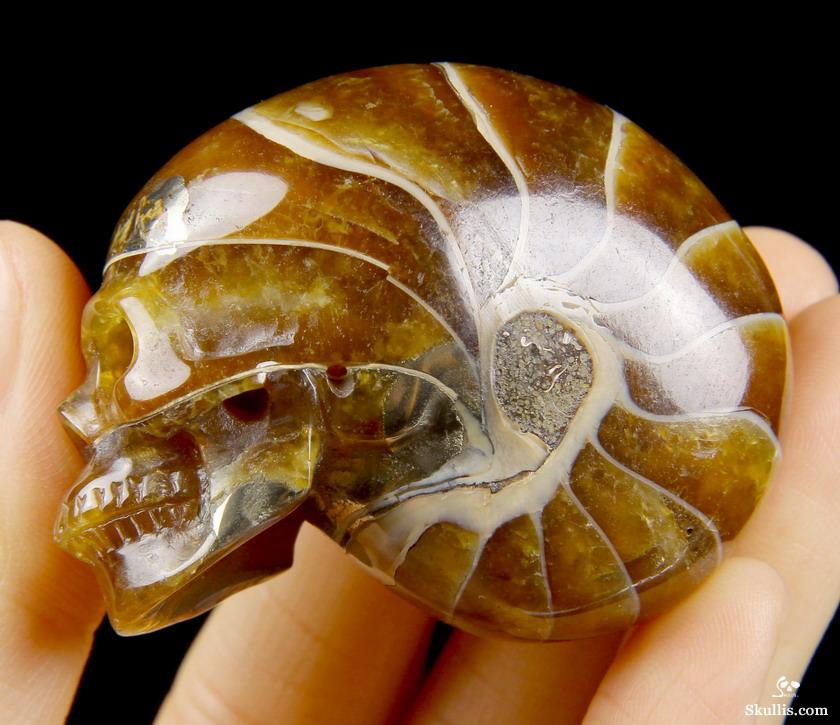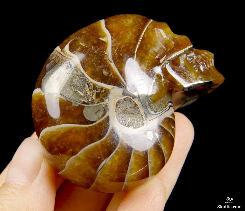 Huge 4.3" Ammonite Fossil Carved Crystal Skull