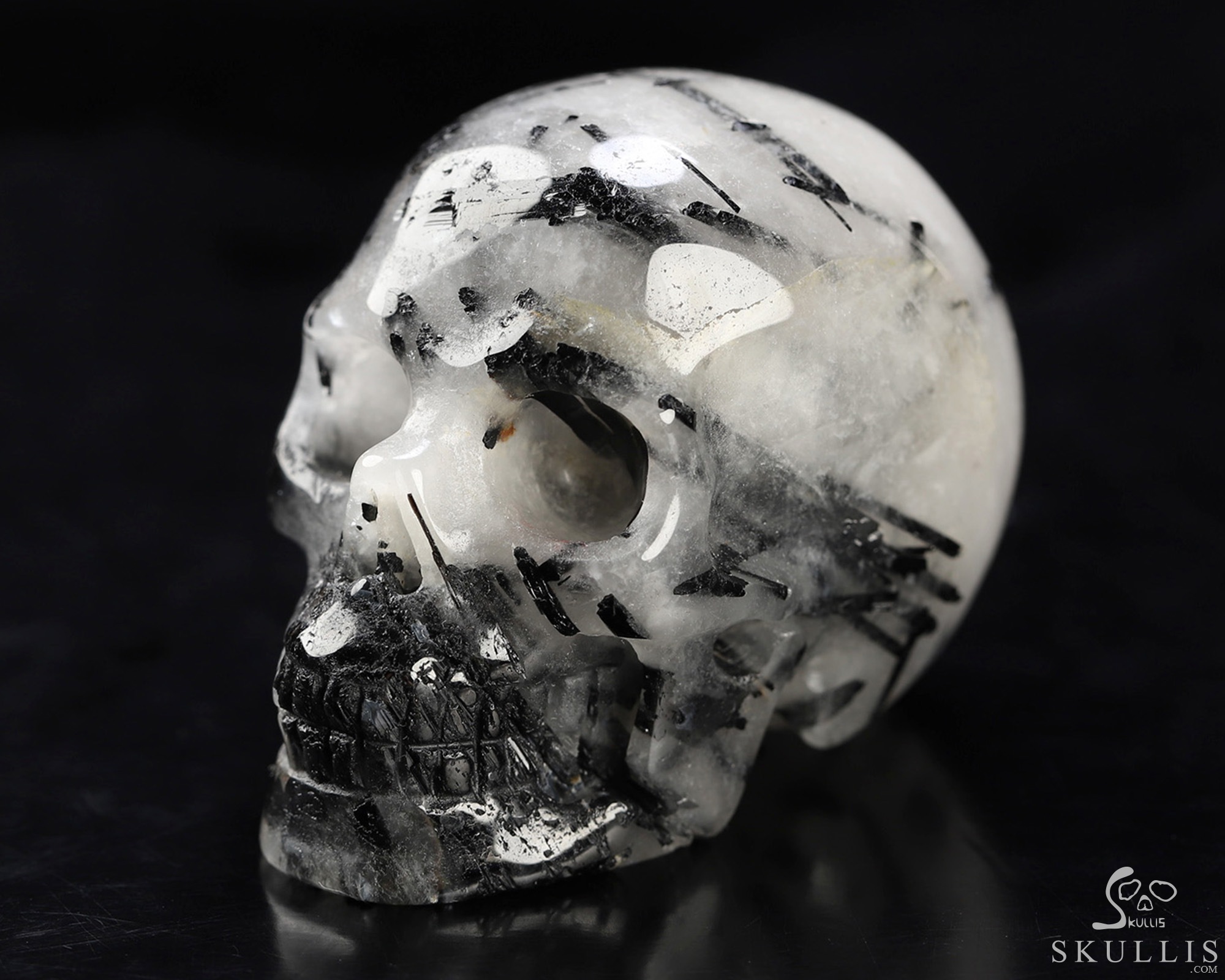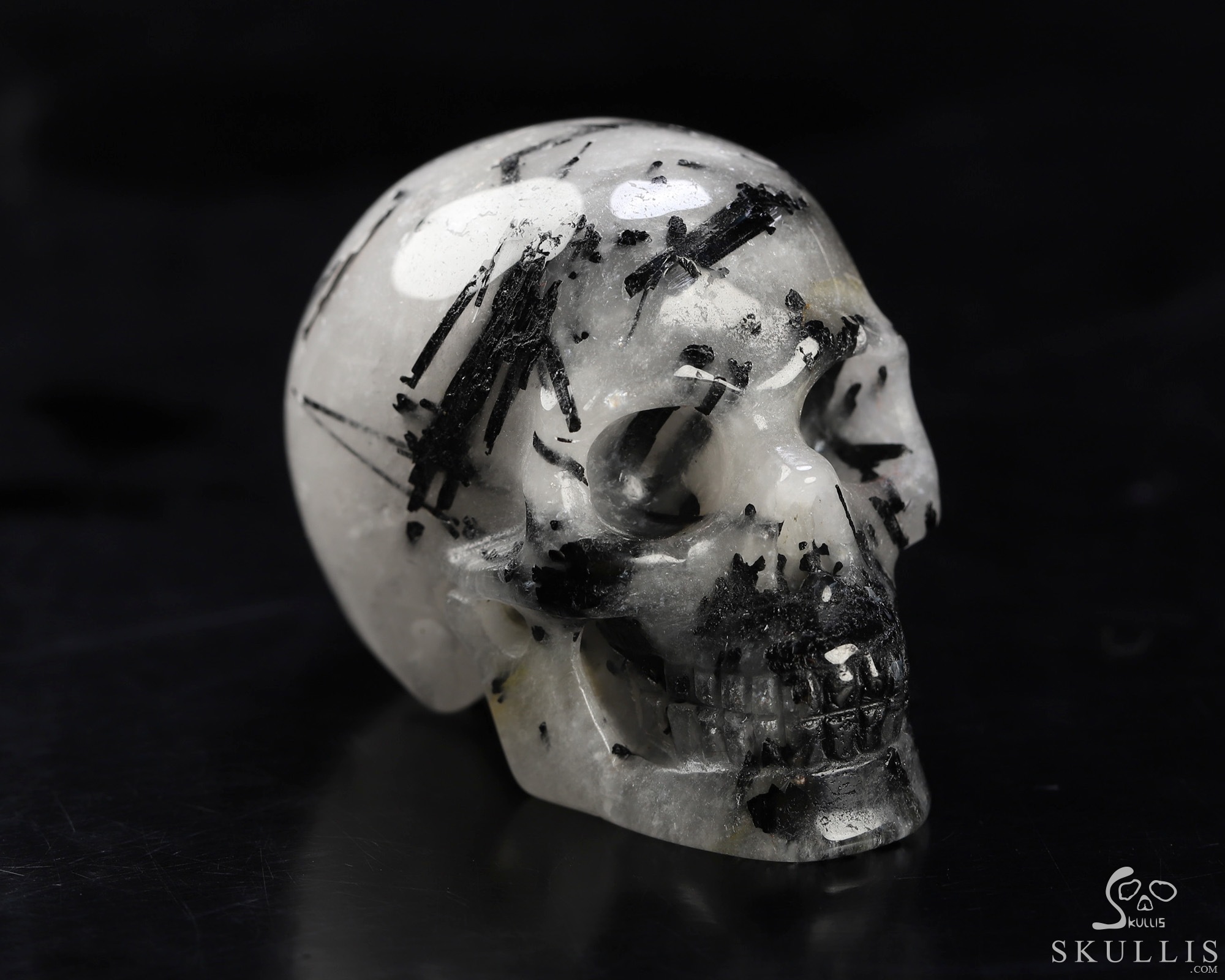 2.0" Black Tourmaline Hand Carved Crystal Skull, Realistic, Crystal Healing