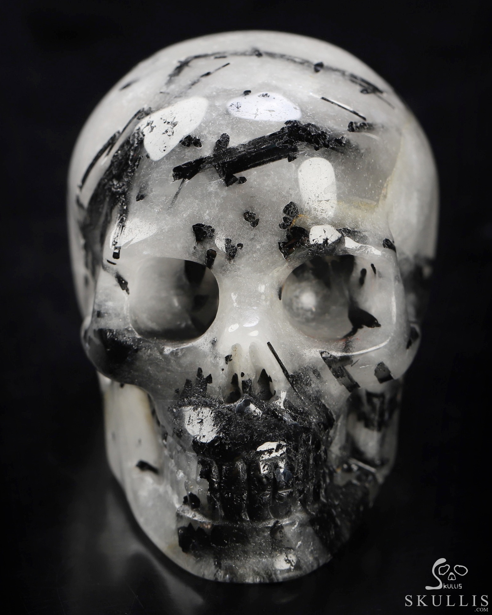 Rare Gemstone 7.3" Black Tourmaline Carved Crystal Skull,Super Realistic, Crystal Healing