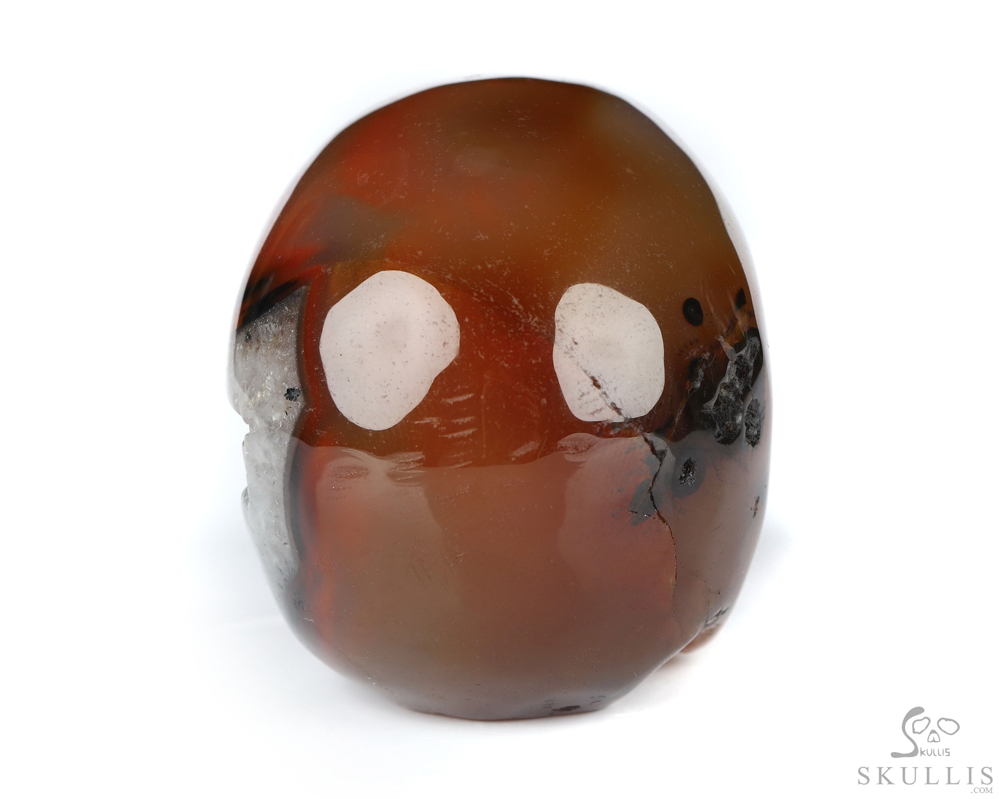 You are looking at a Black Zebra Agate skull. The skull is 2 inches from front to back.