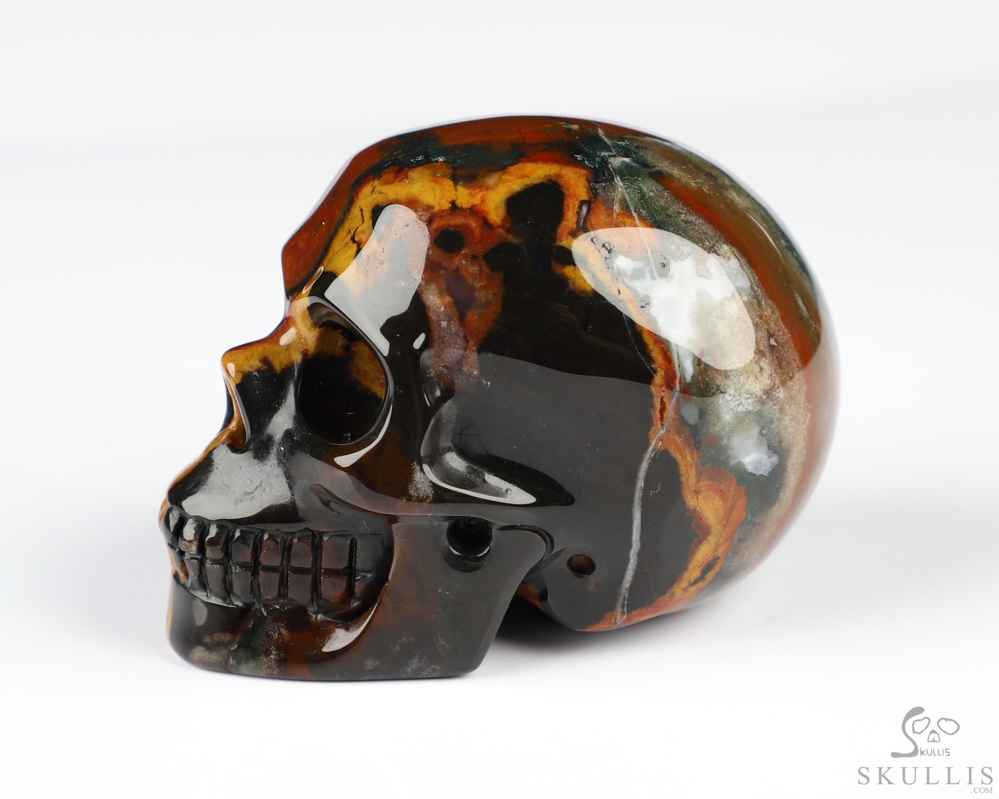 5.0" Black Zebra Agate Carved Crystal skull, Crystal Healing