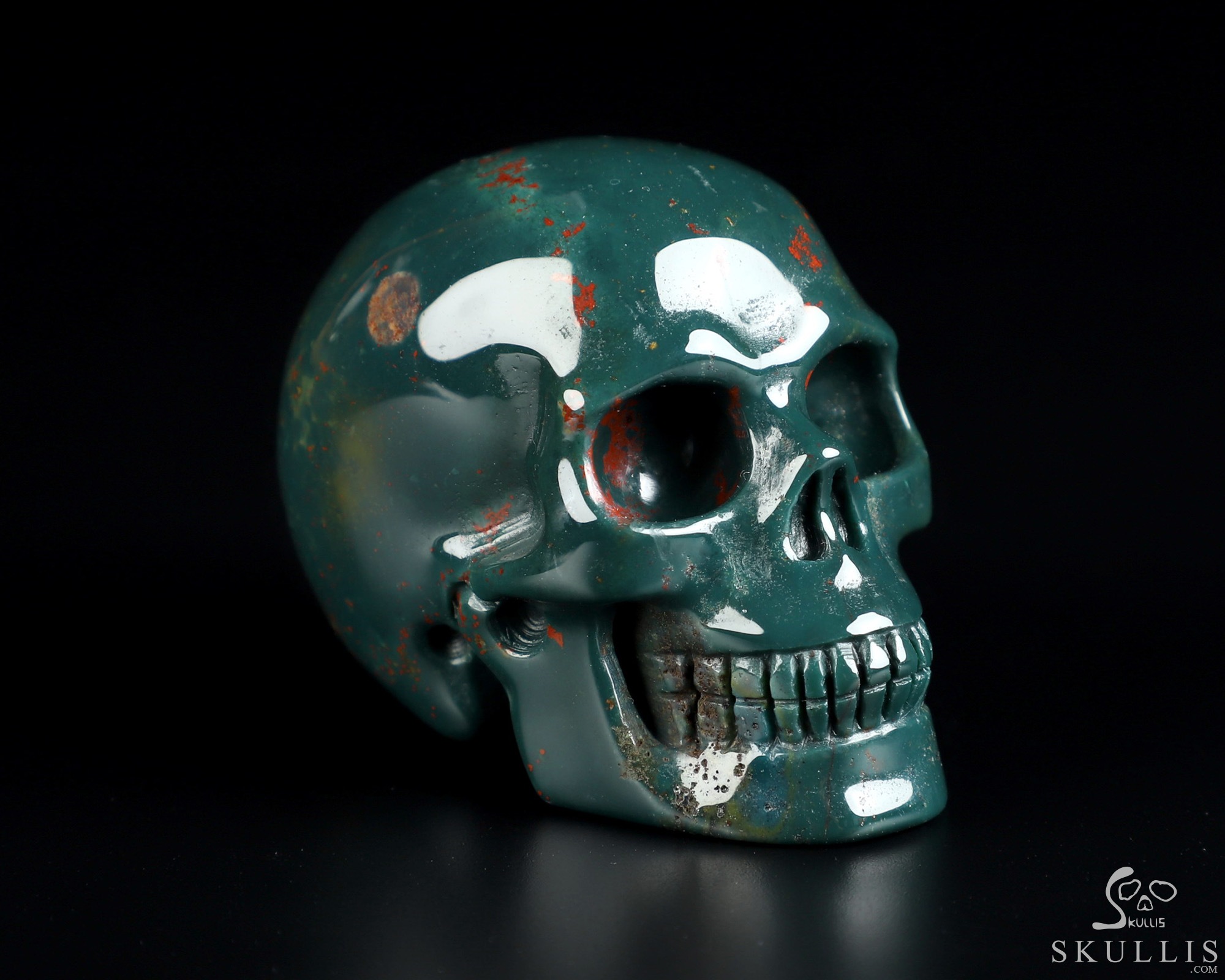 2.0" Bloodstone Hand Carved Crystal Skull, Realistic, Crystal Healing