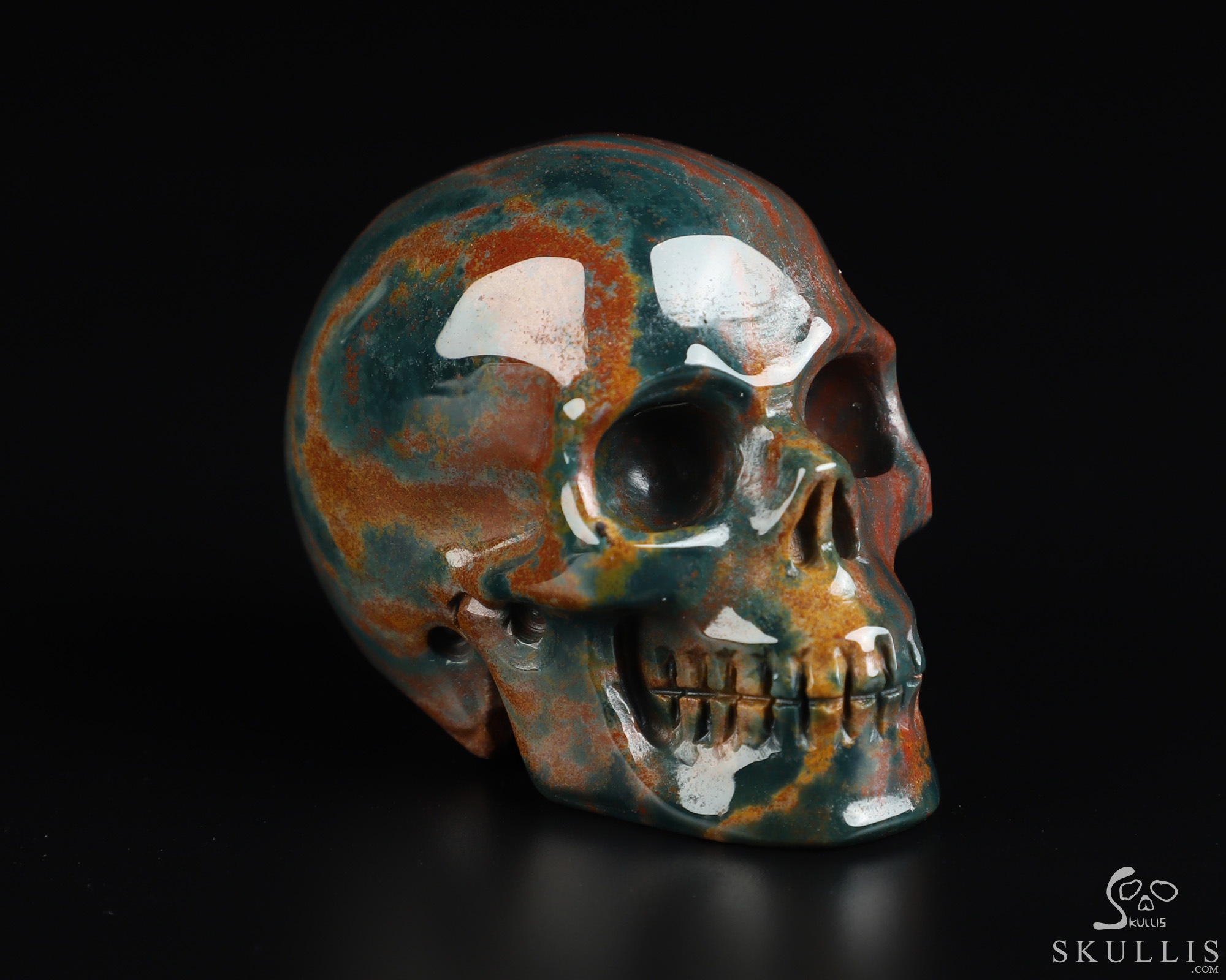 2.0" Bloodstone Hand Carved Crystal Skull, Realistic, Crystal Healing