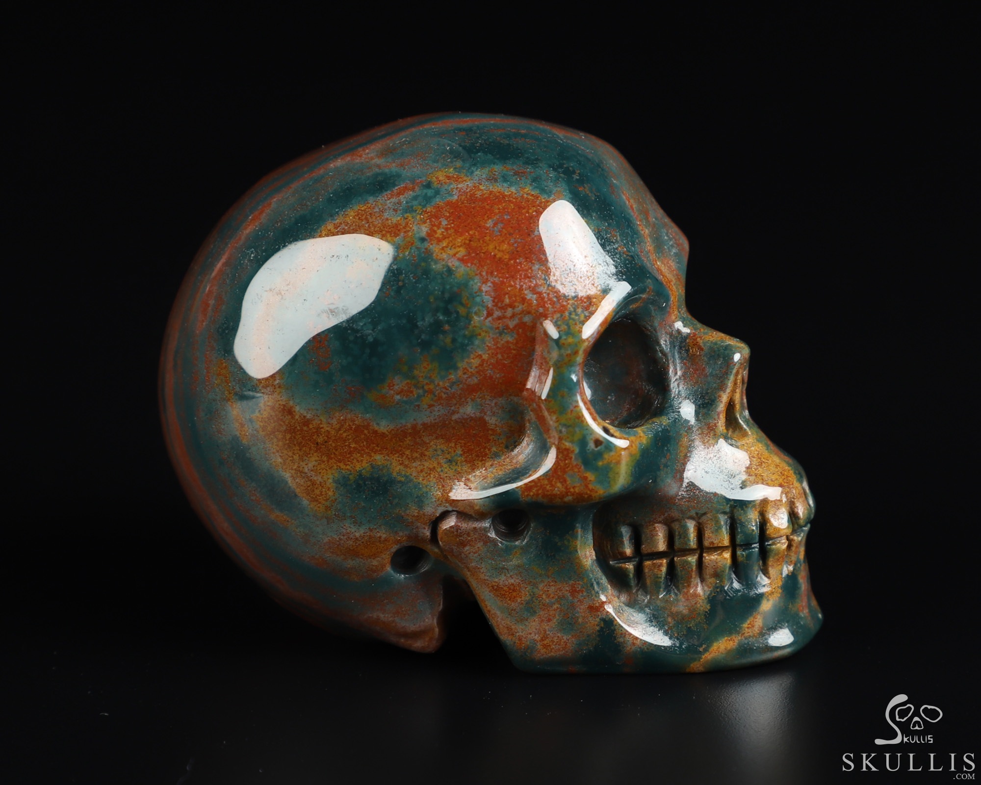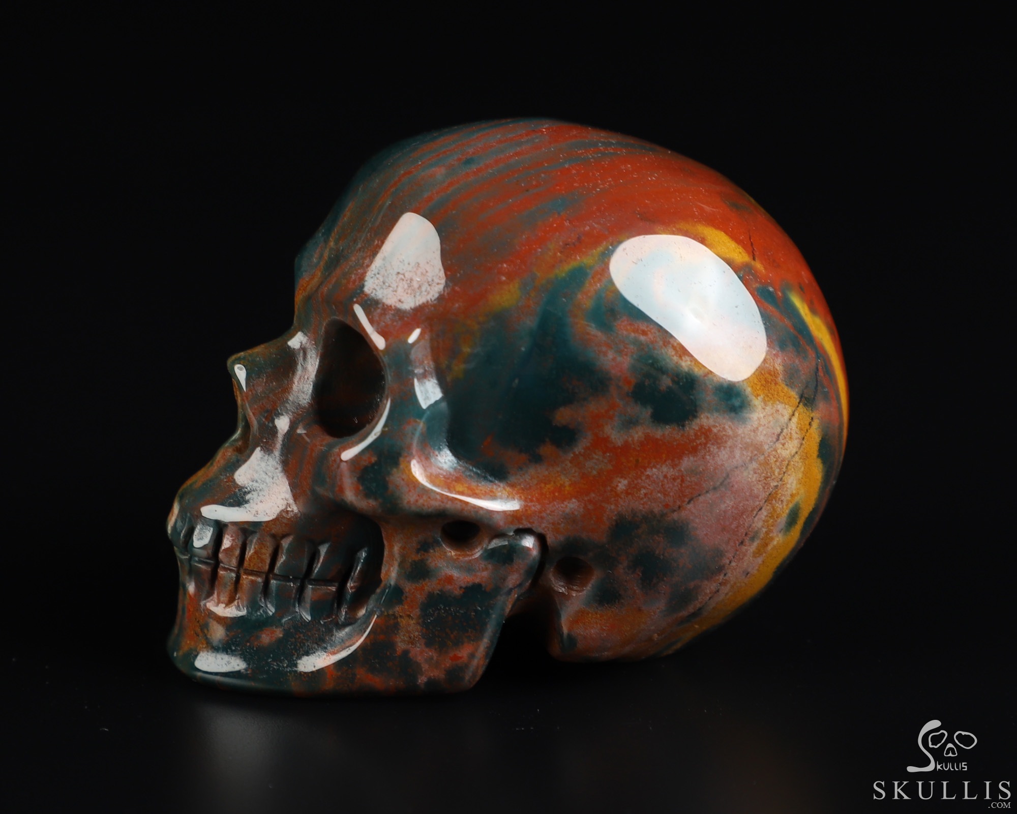 5.0" Bloodstone Hand Carved Crystal Skull, Super Realistic, Crystal Healing