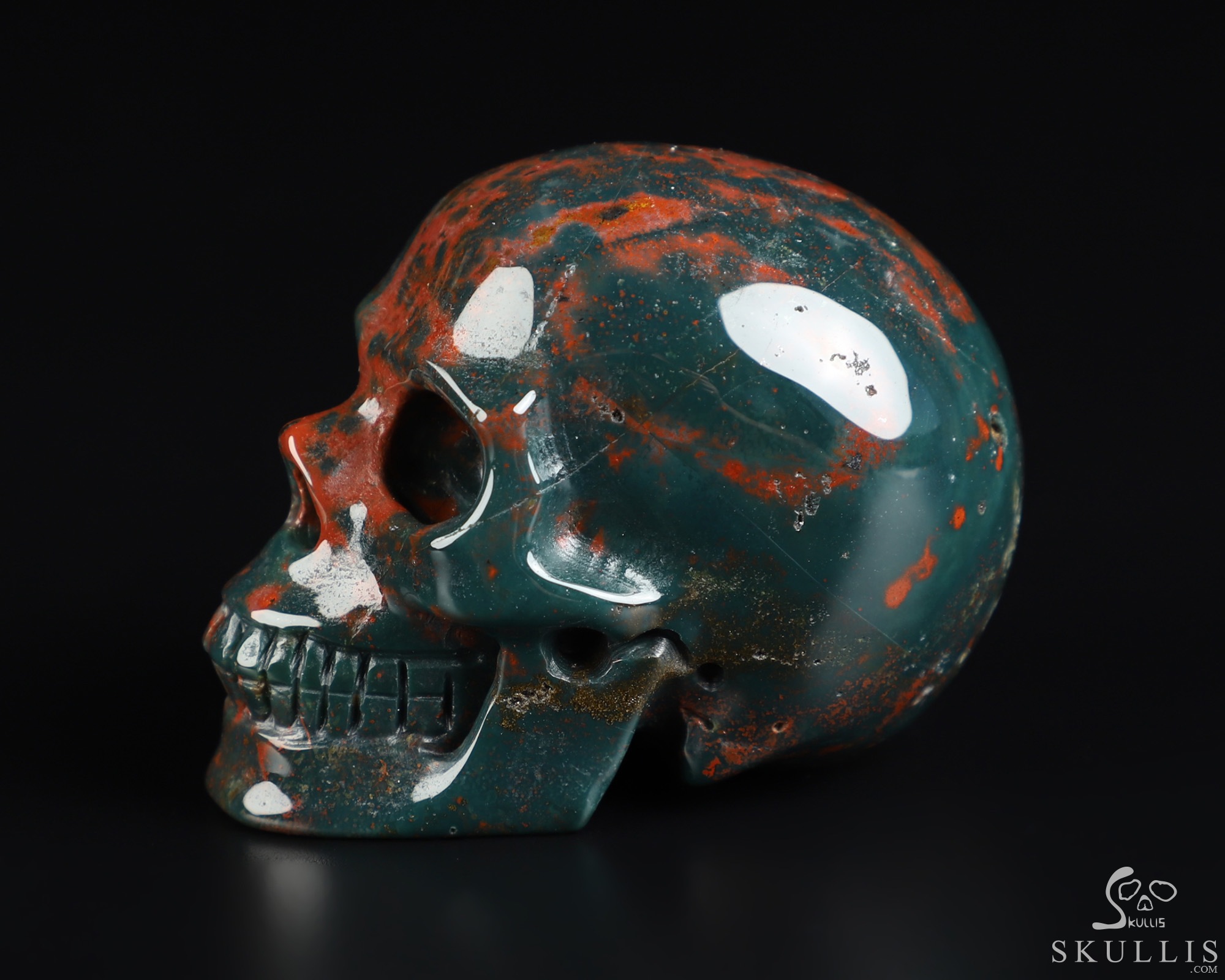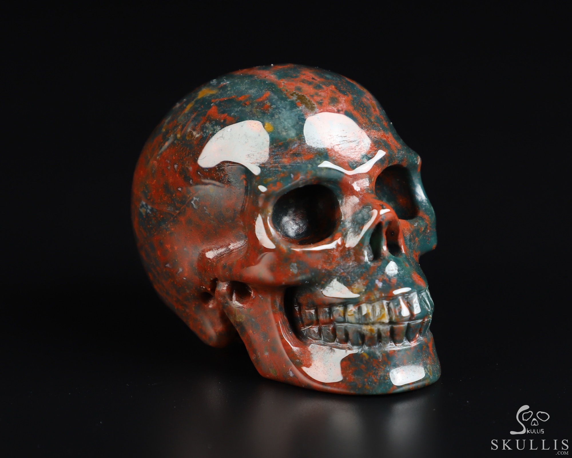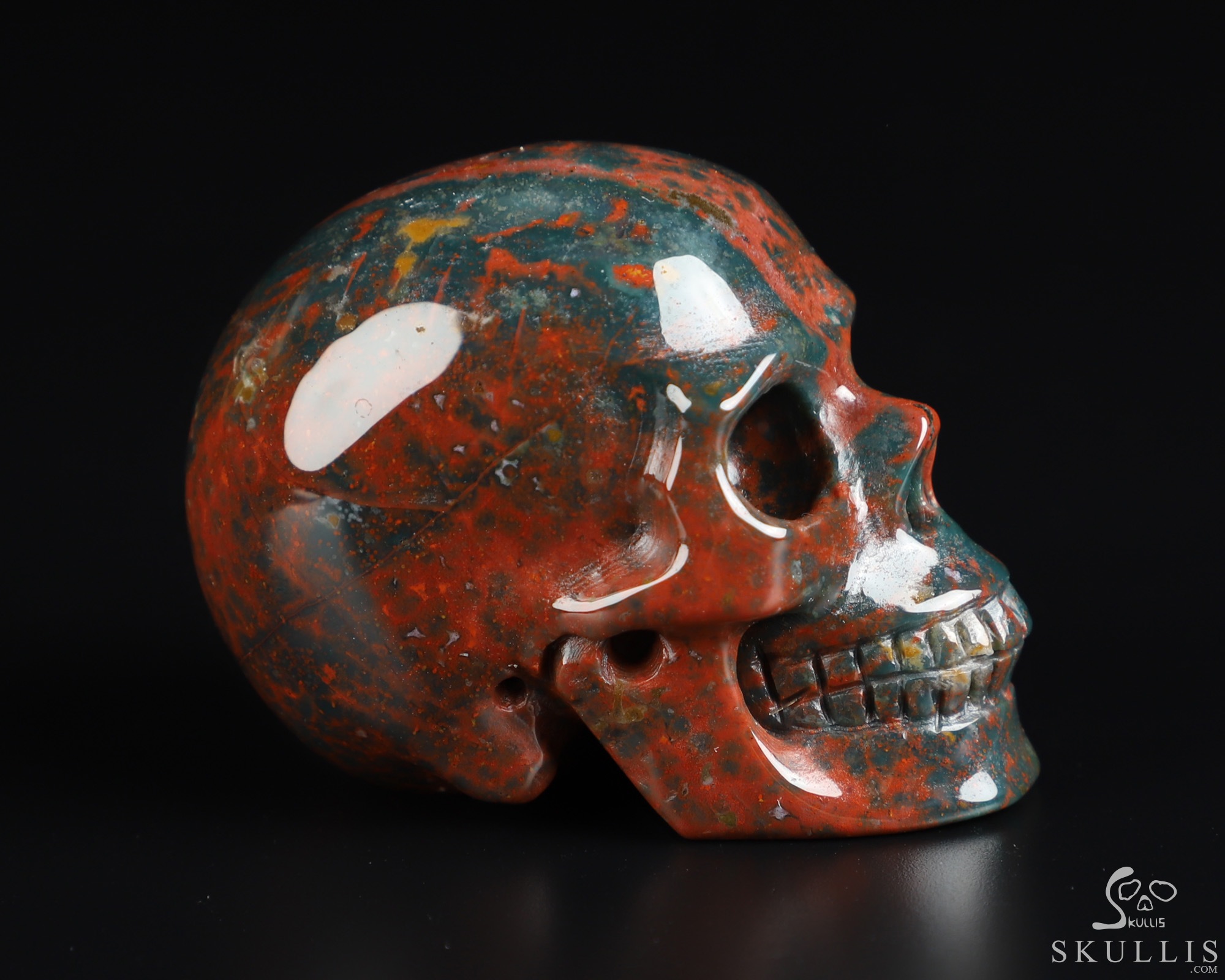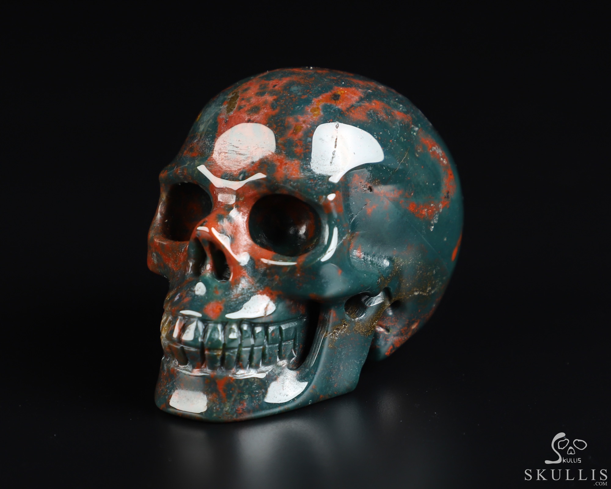 2.0" Bloodstone Hand Carved Crystal Skull, Realistic, Crystal Healing