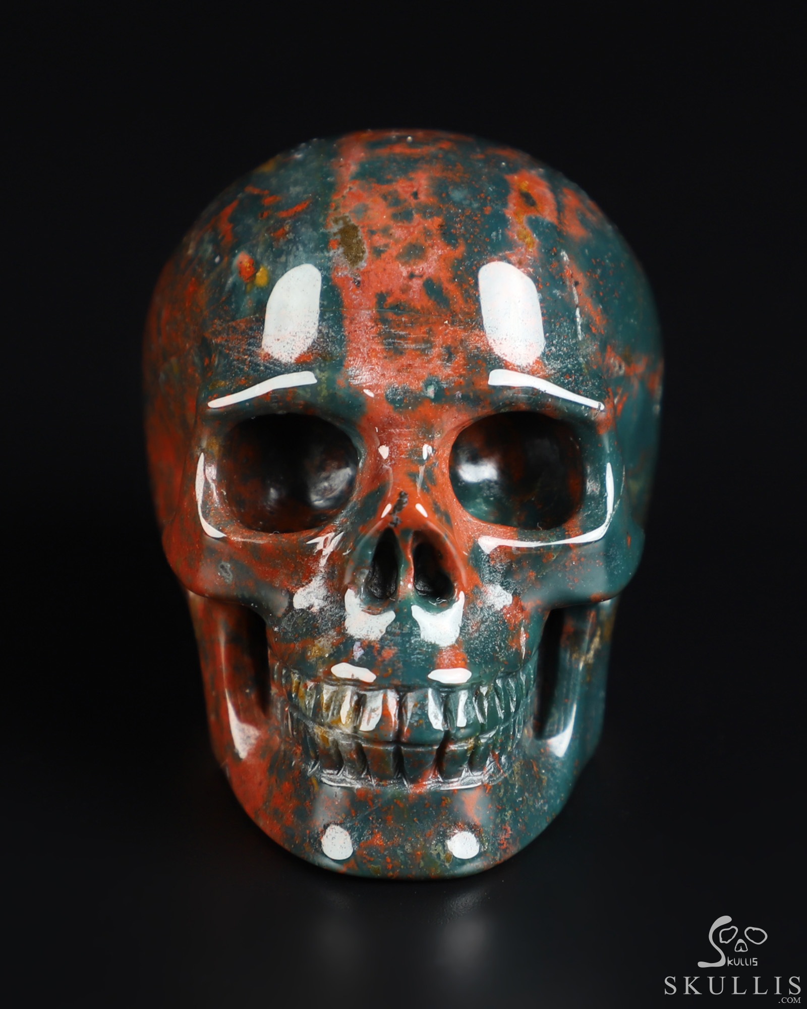 Amazing Gemstone Huge 5.0" Bloodstone Carved Crystal Skull, Super Realistic