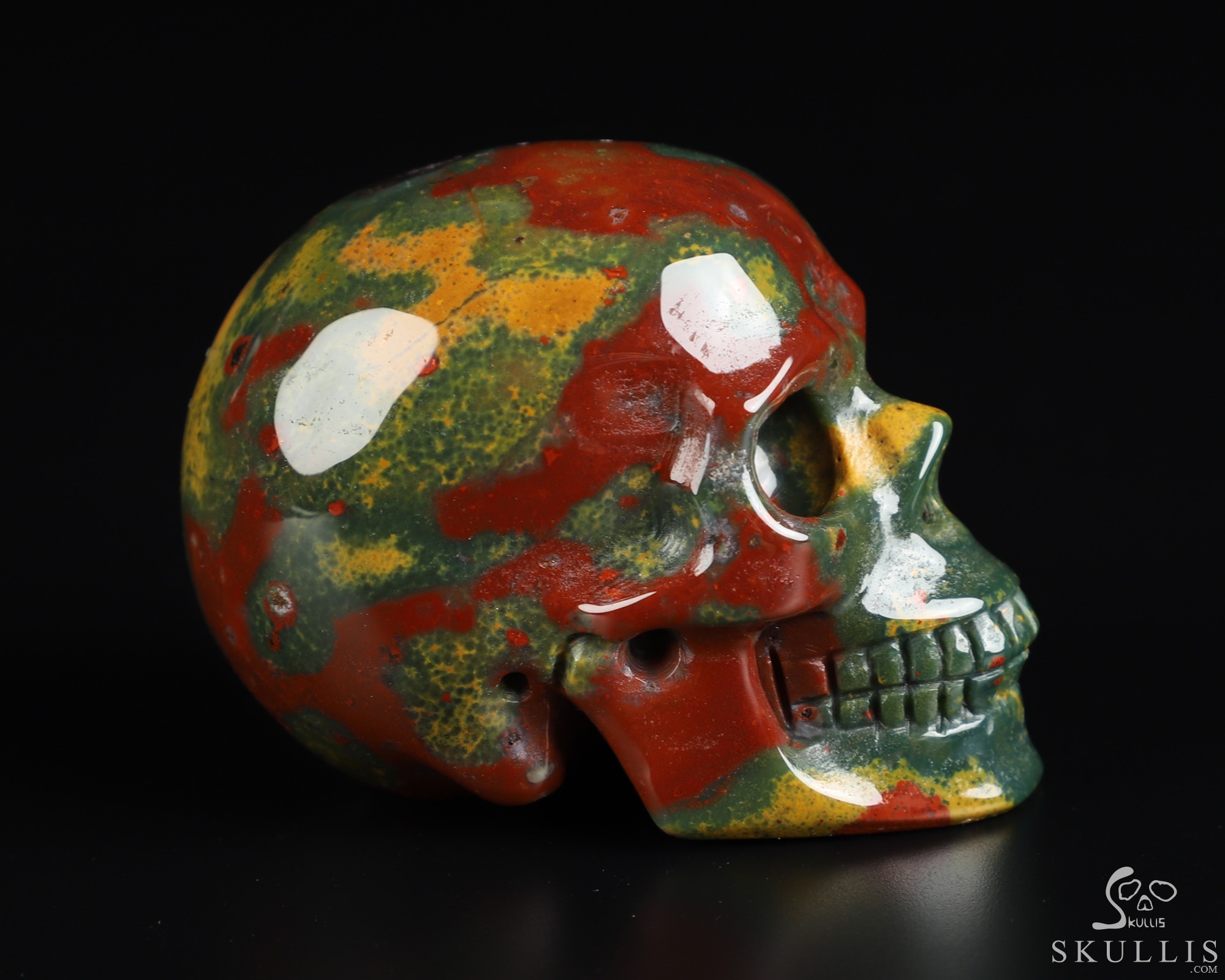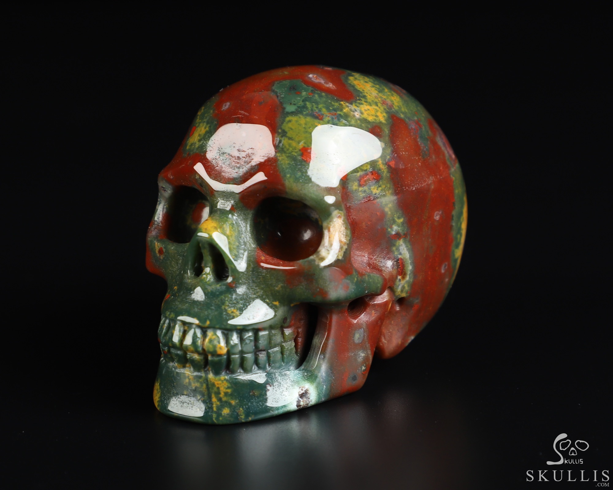 2.0" Bloodstone Hand Carved Crystal Skull, Realistic, Crystal Healing