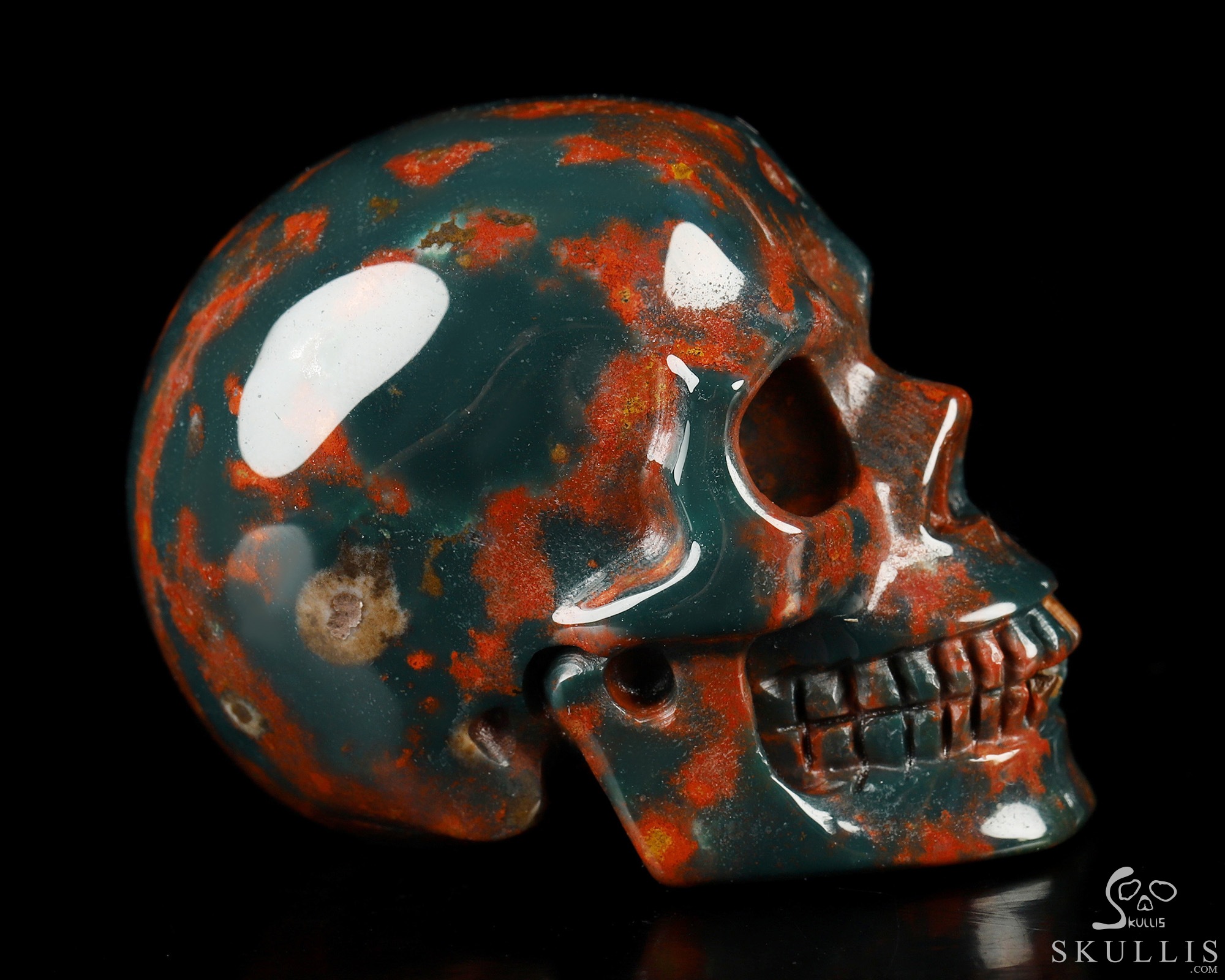 2.0" Bloodstone Hand Carved Crystal Skull, Realistic, Crystal Healing