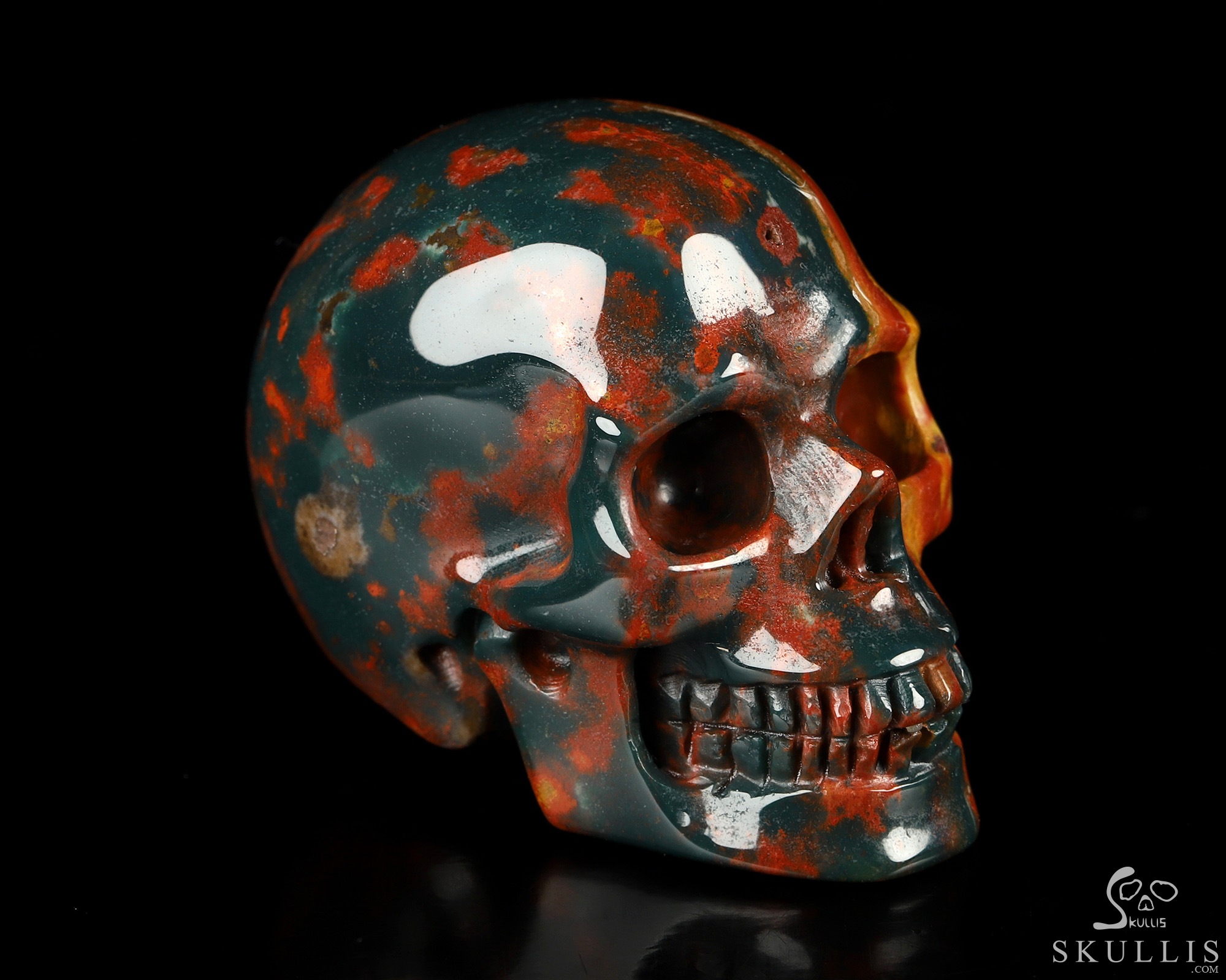 Lifesized 6.3" Bloodstone Carved Crystal Skull,Super Realistic, Crystal Healing