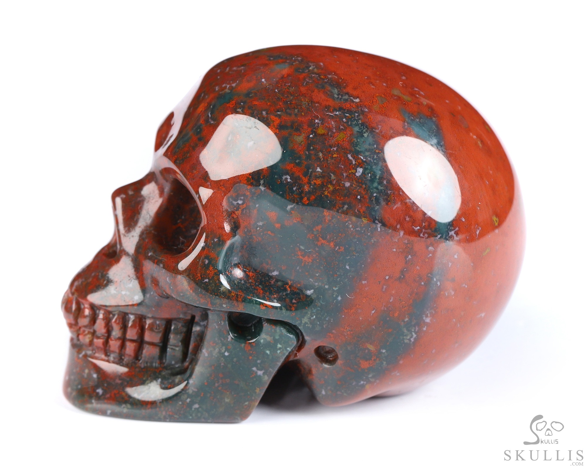 2.0" Bloodstone Hand Carved Crystal Skull, Realistic, Crystal Healing