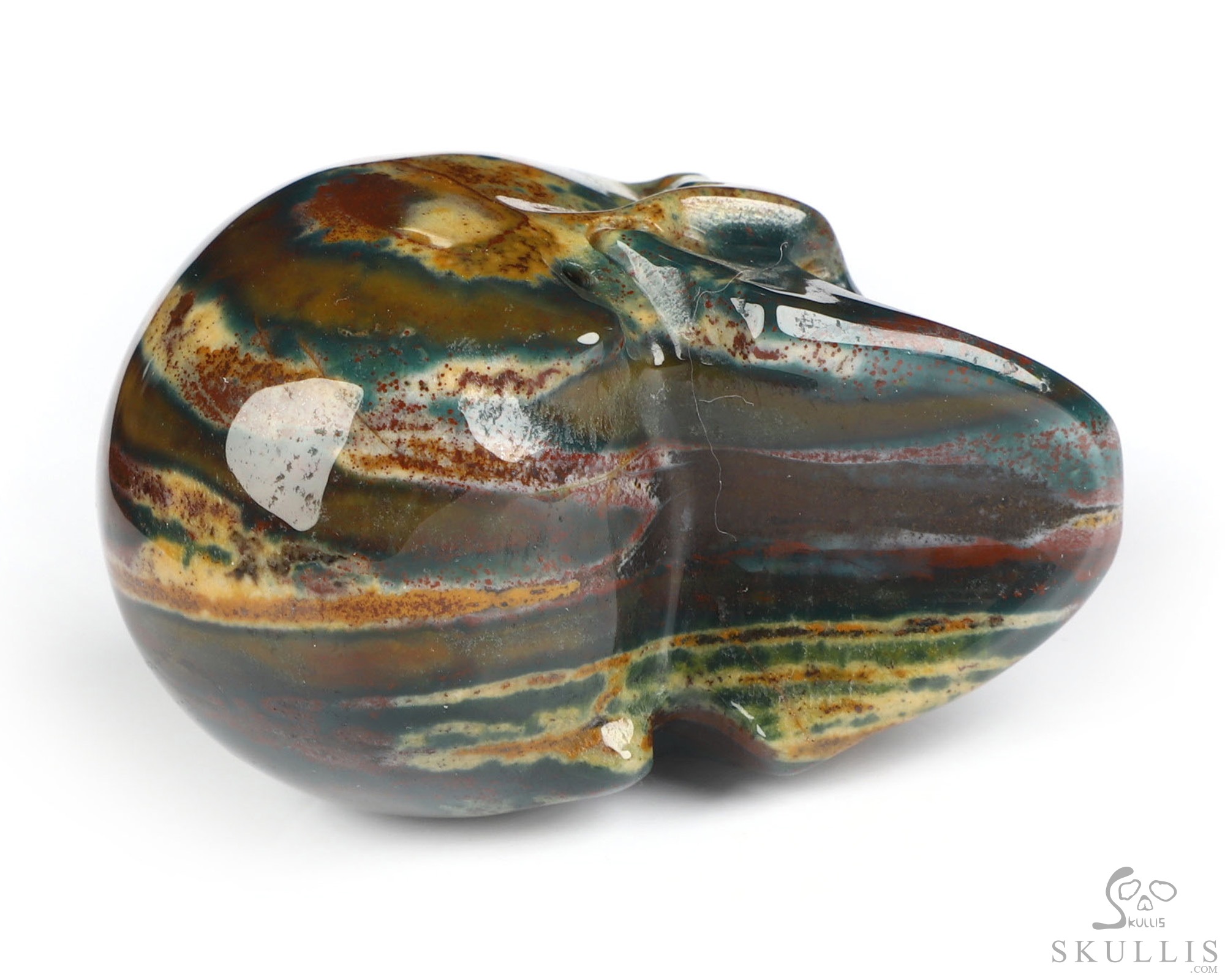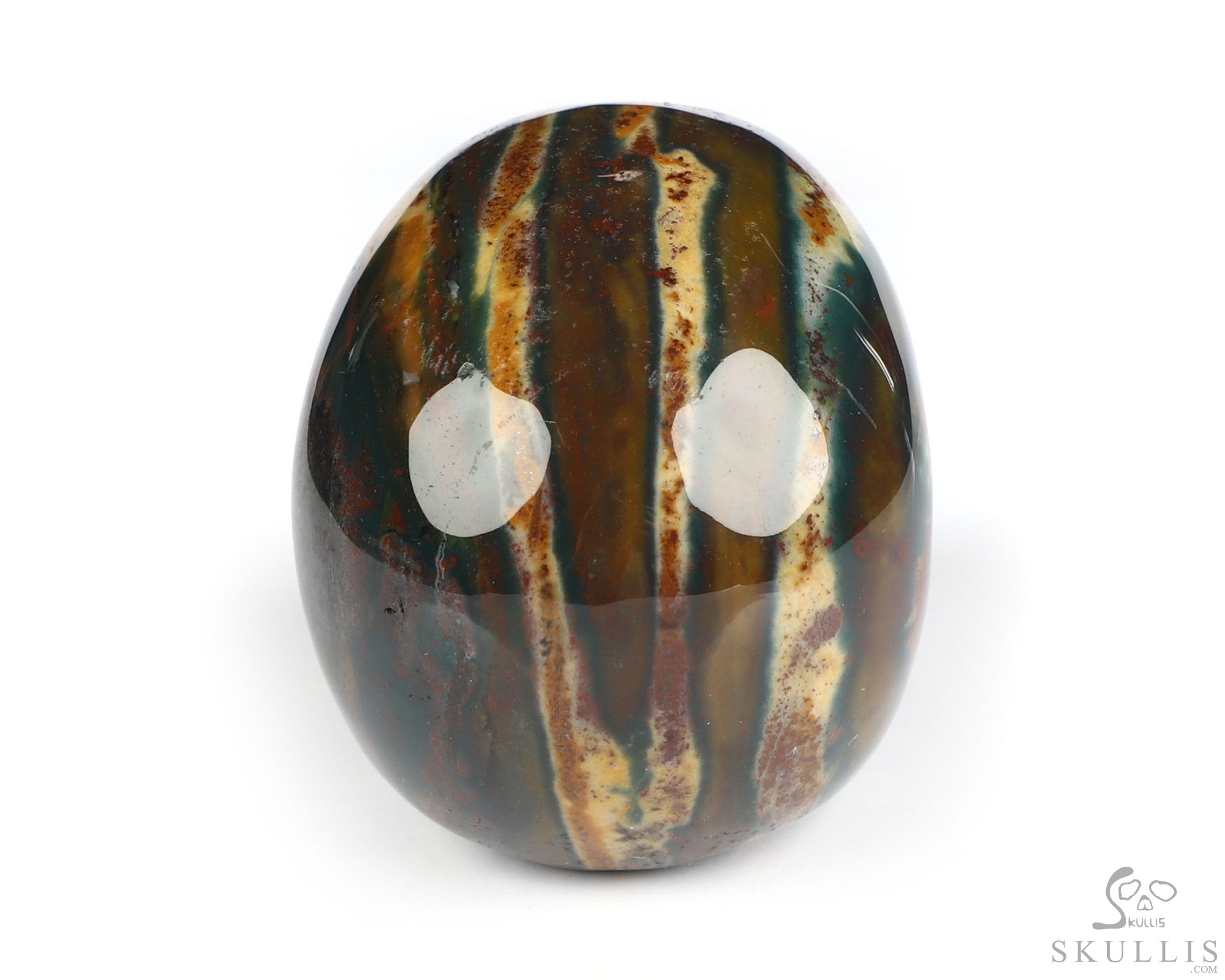 You are looking at a Bloodstone skull. The skull is 2 inches from front to back.