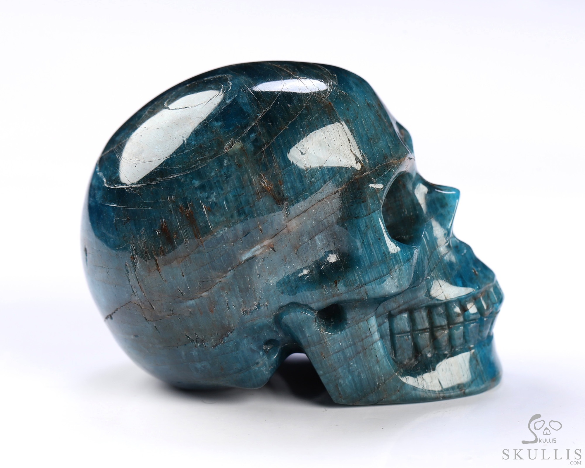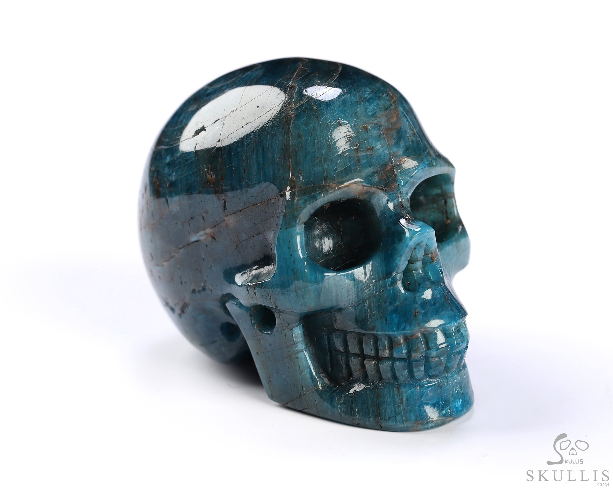 3.4" Blue Apatite Hand Carved Crystal Skull, Realistic, Crystal Healing