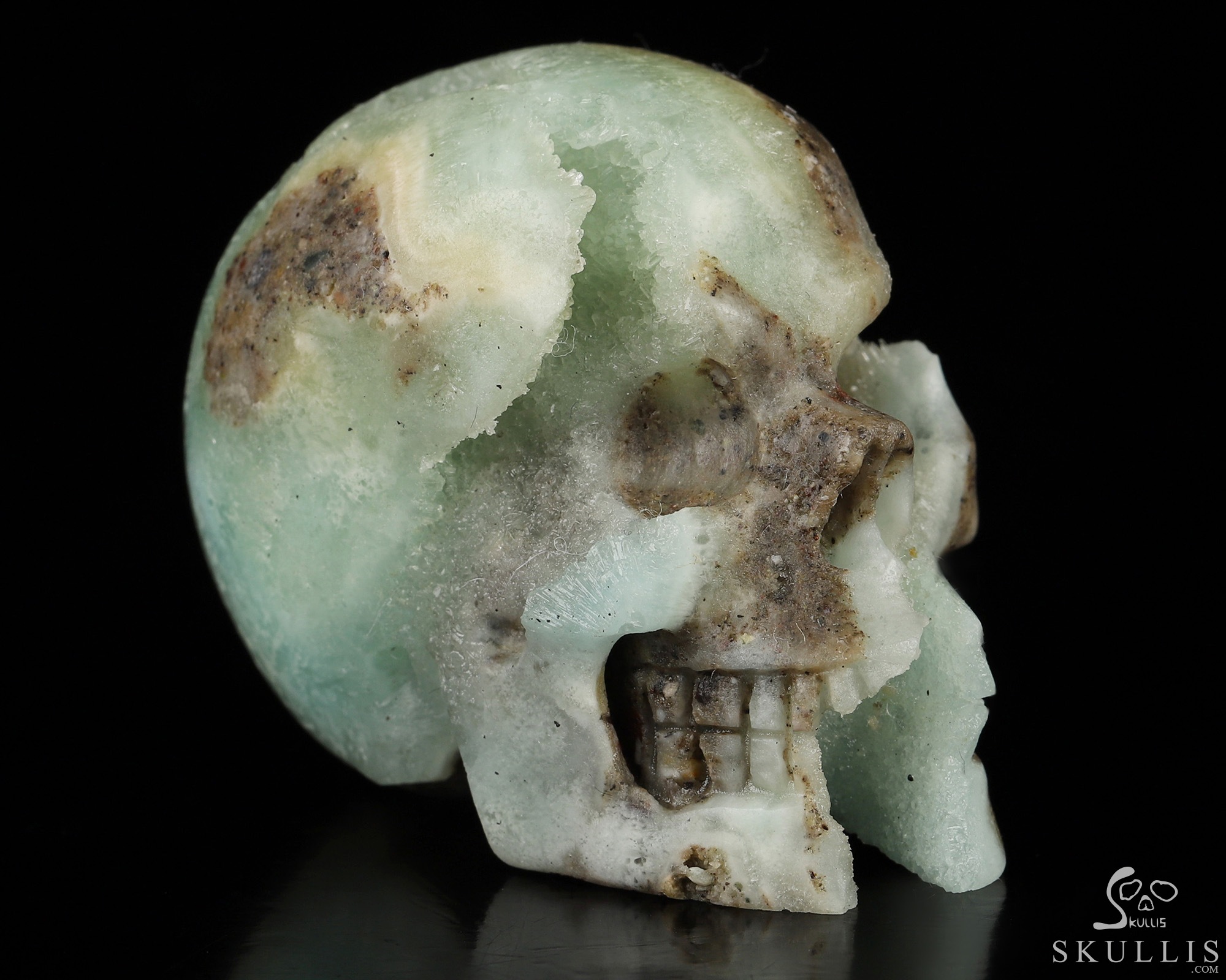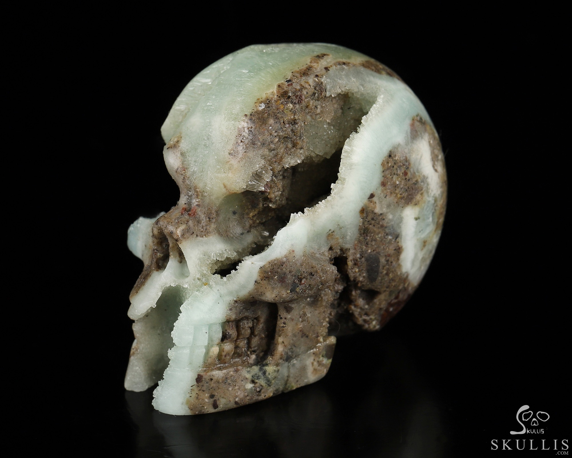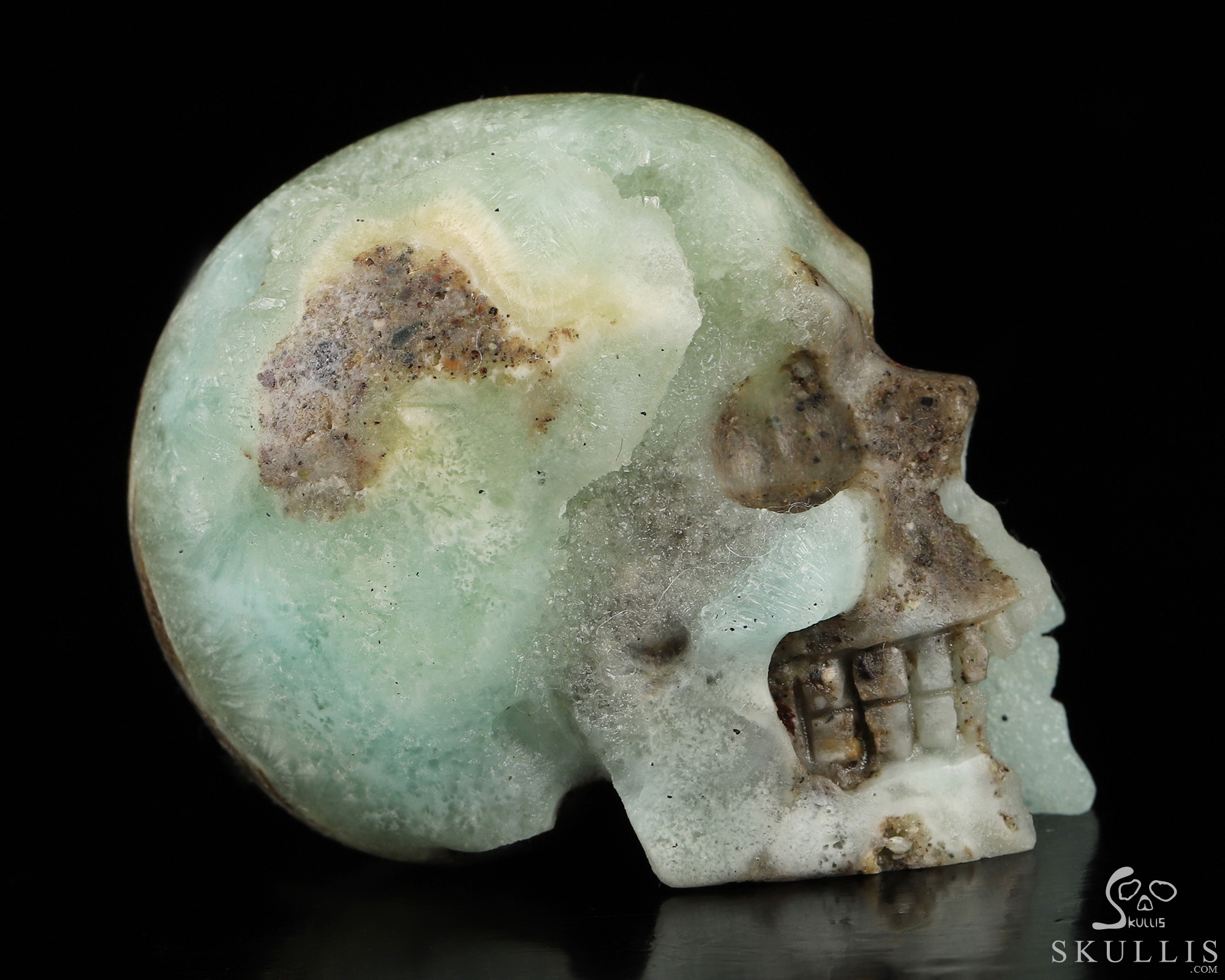 Lifesized 6.9" Blue Aragonite Carved Crystal Skull,Super Realistic, Crystal Healing