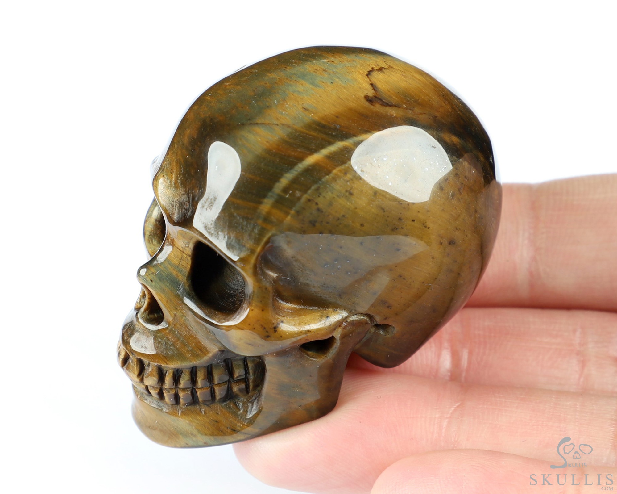 Flash 1.8" Blue & Gold Tiger's Eye Hand Carved Crystal Skull, Realistic, Crystal Healing