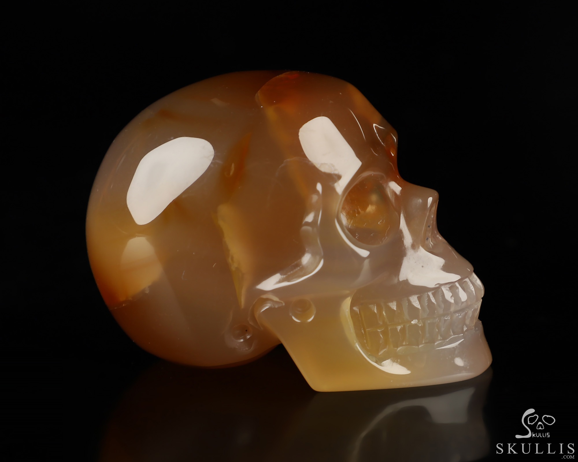 2.0" Carnelian Hand Carved Crystal Skull, Realistic, Crystal Healing