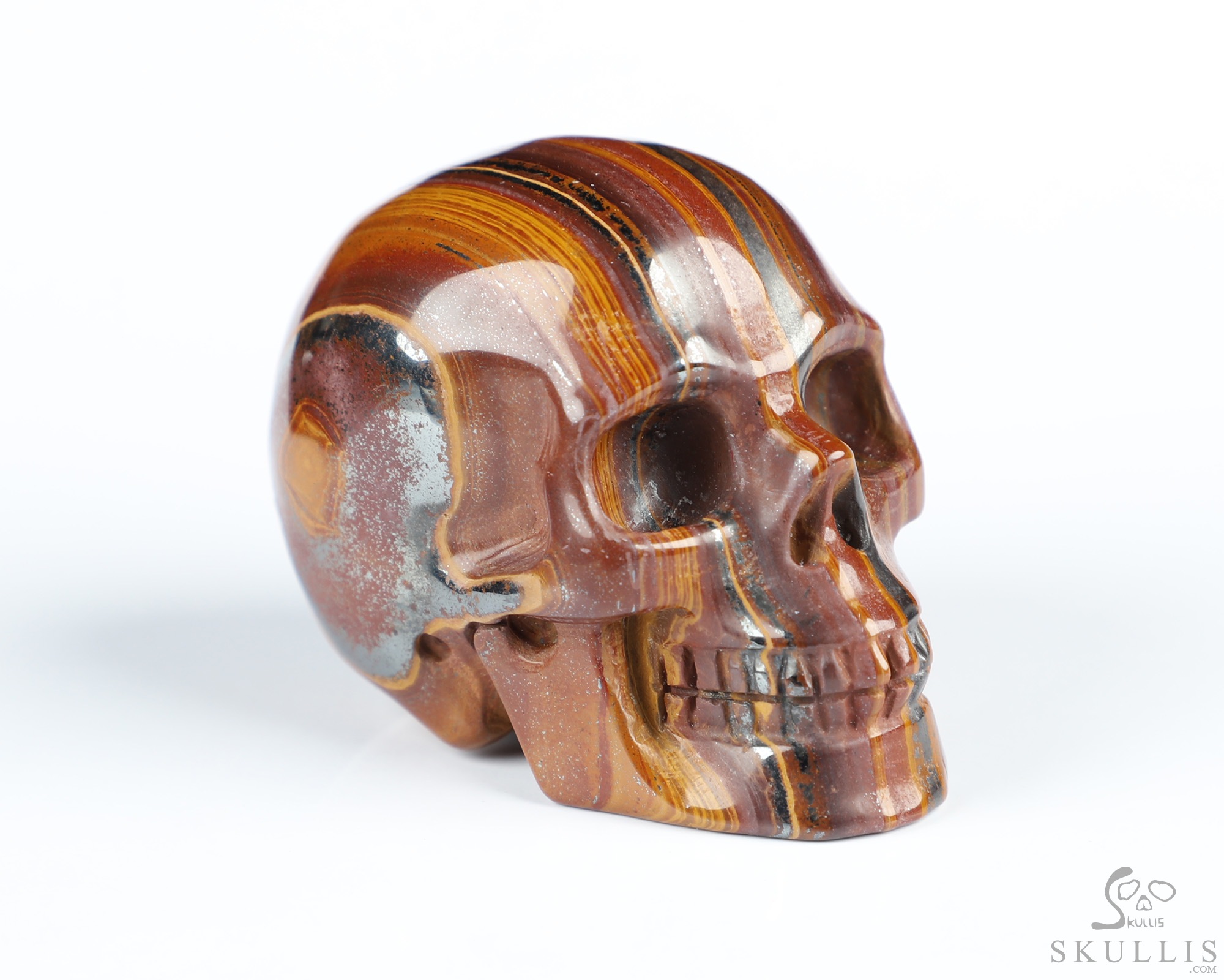 2.0" Colorful Tiger Iron Eye Hand Carved Crystal Skull, Realistic, Crystal Healing