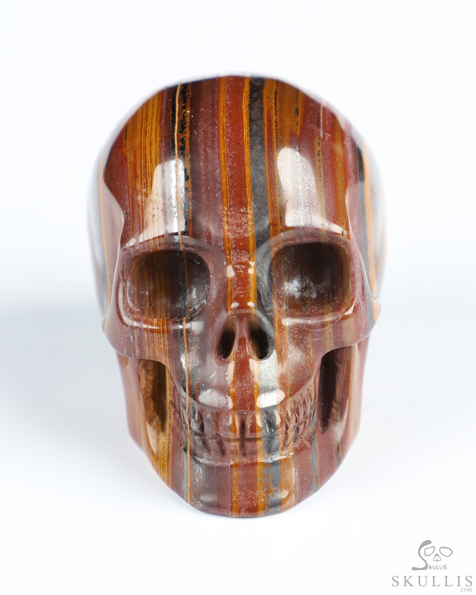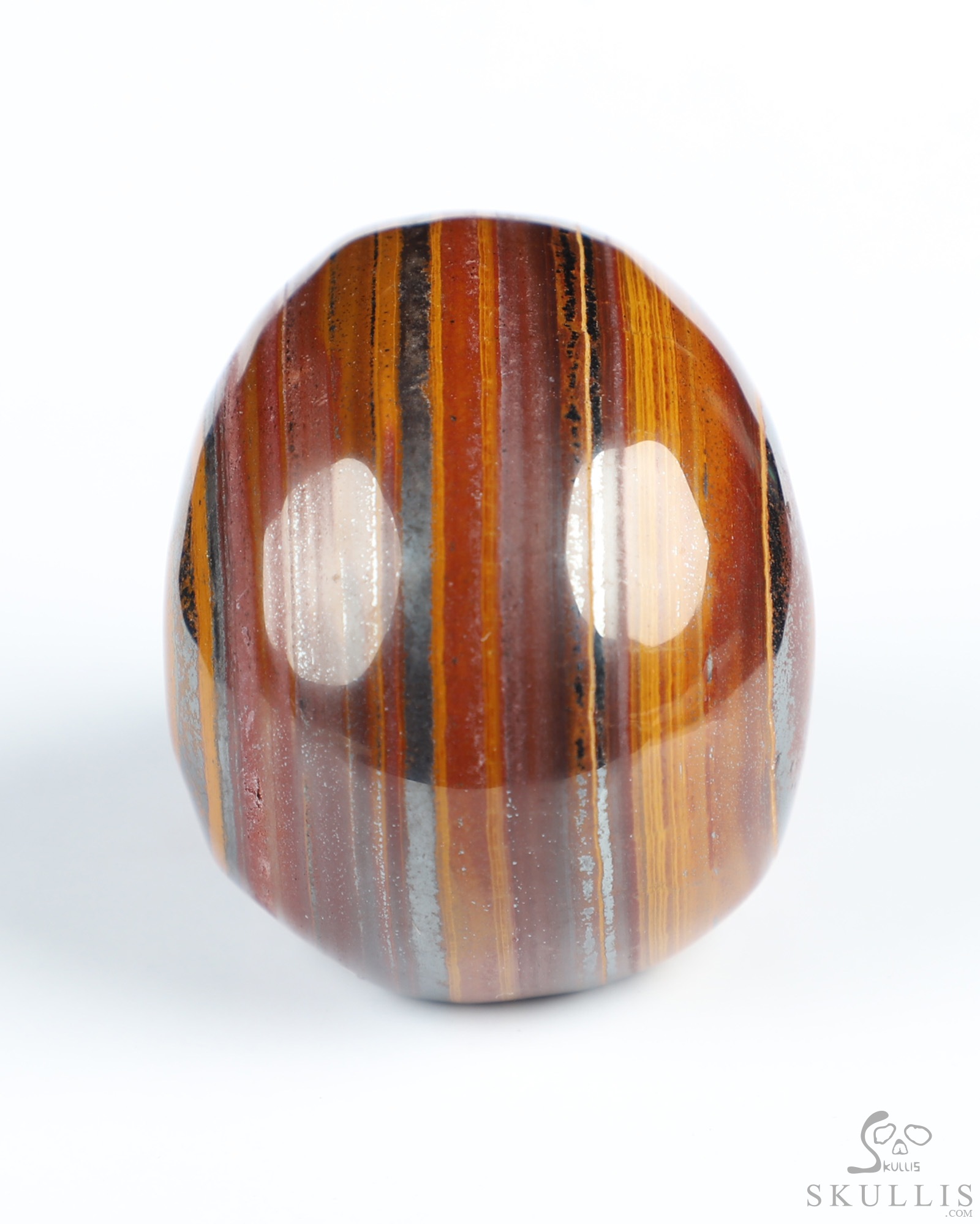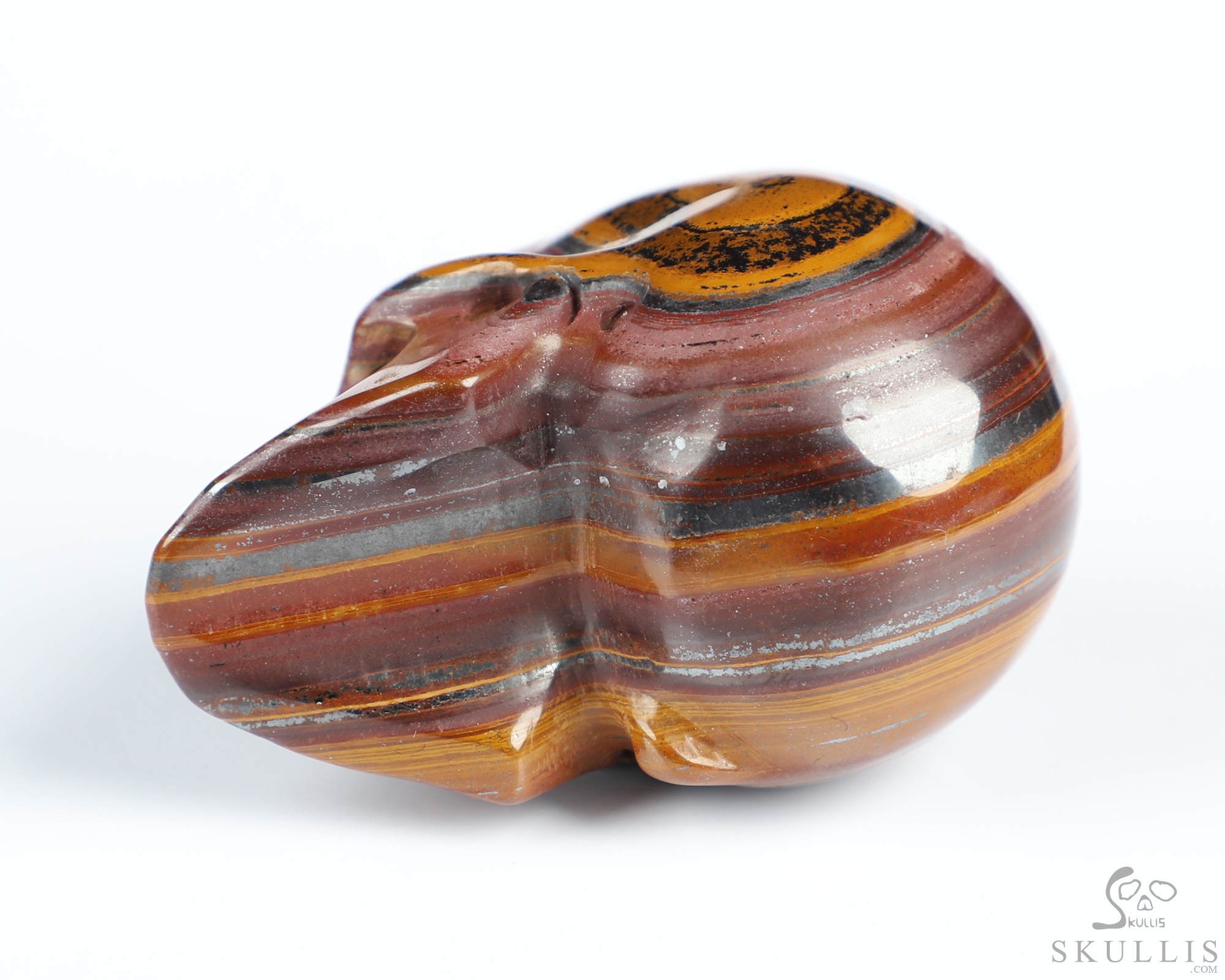 You are looking at a Colorful Tiger Iron Eye skull. The skull is 2 inches from front to back.
