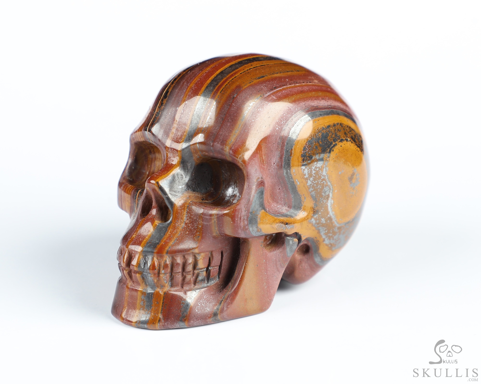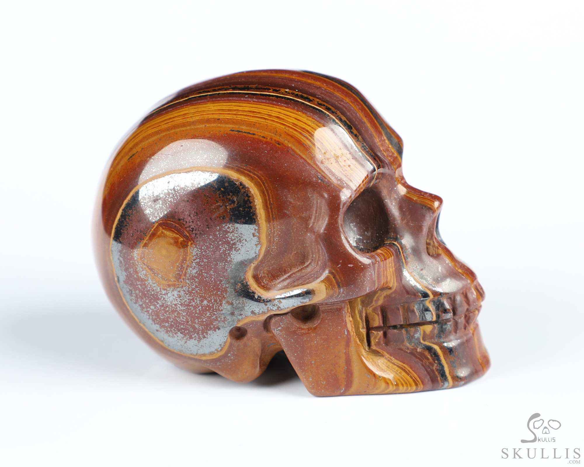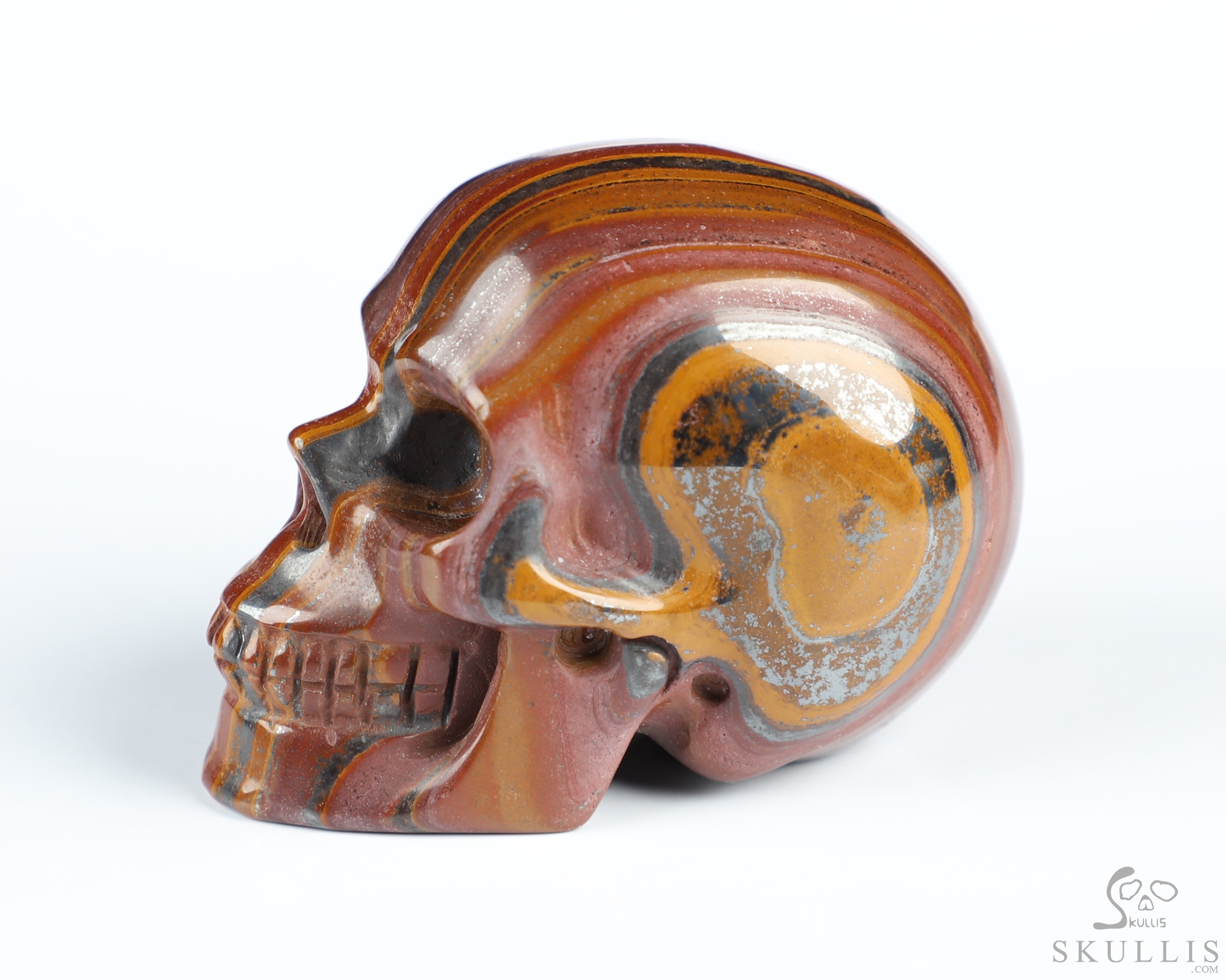 You are looking at a Colorful Tiger Iron Eye skull. The skull is 2 inches from front to back.