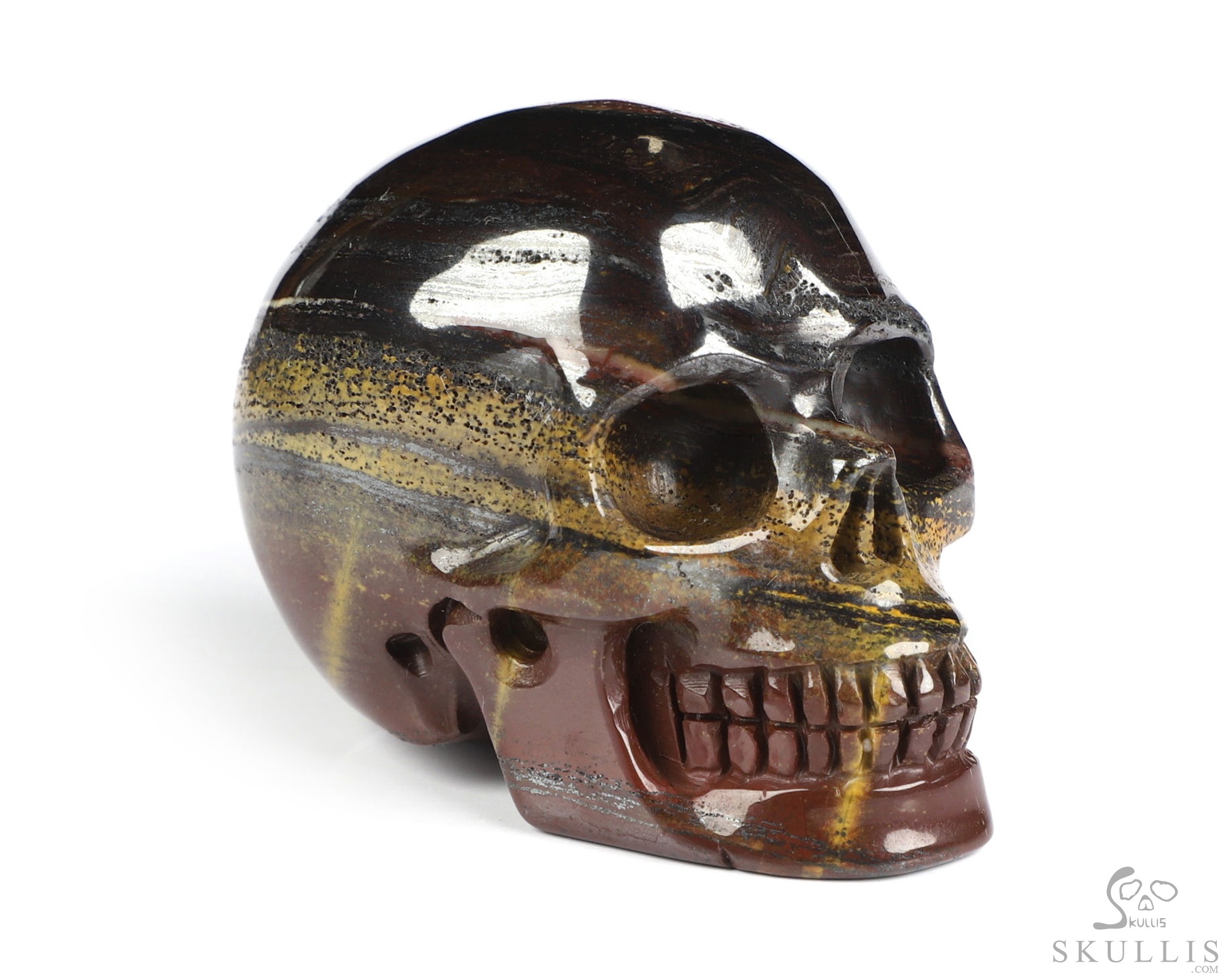 2.0" Gold Tiger Iron Eye Hand Carved Crystal Skull, Realistic, Crystal Healing