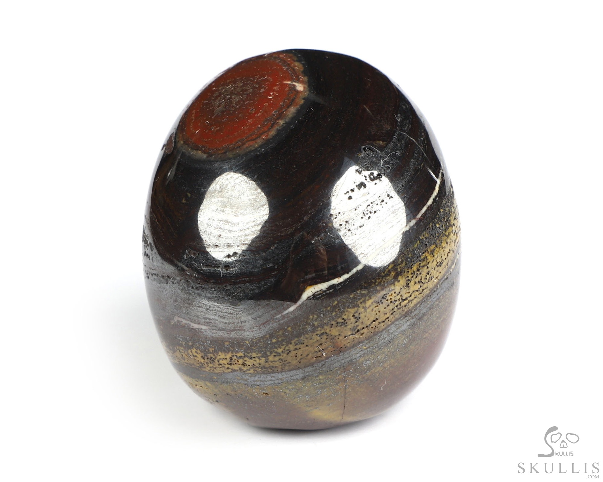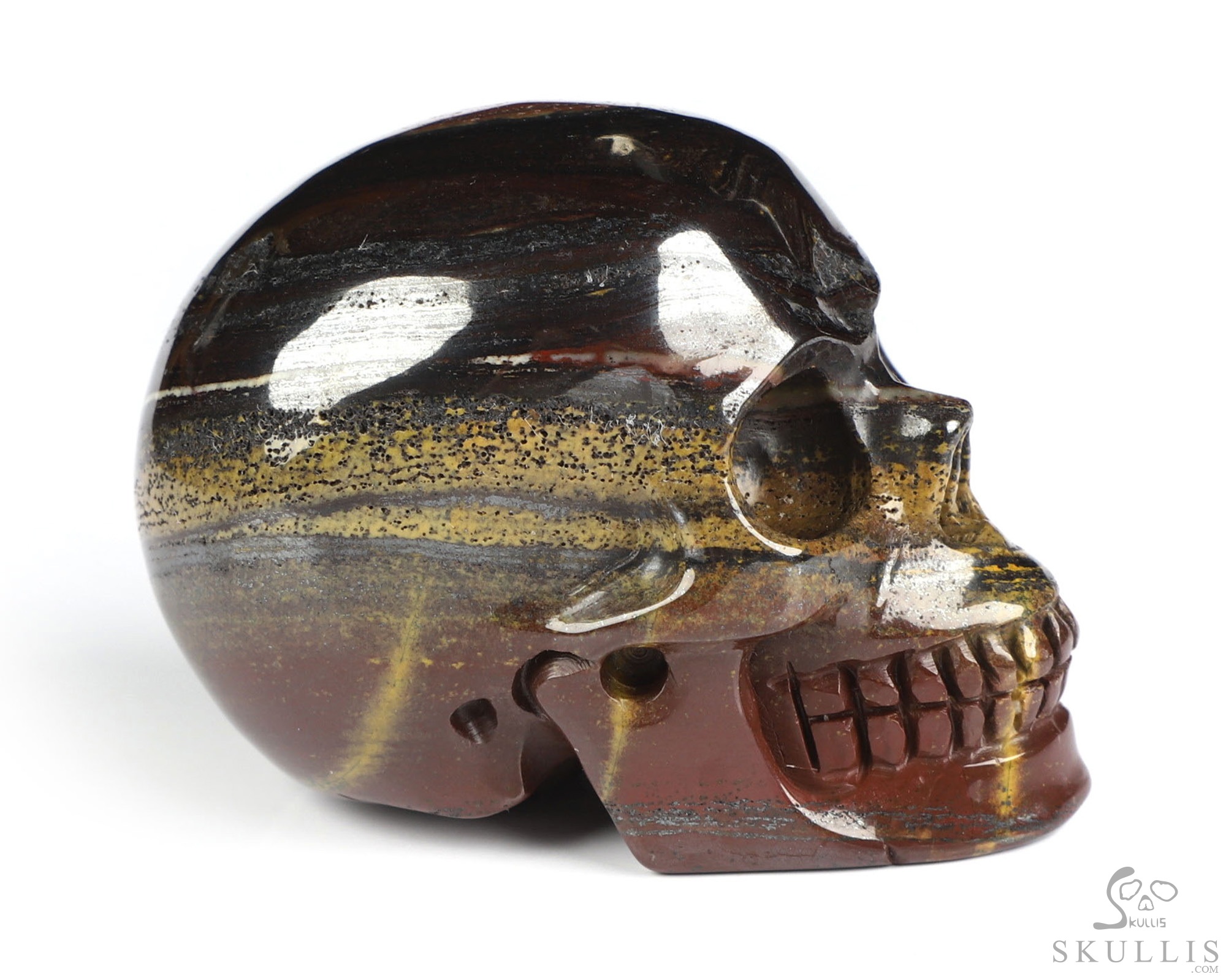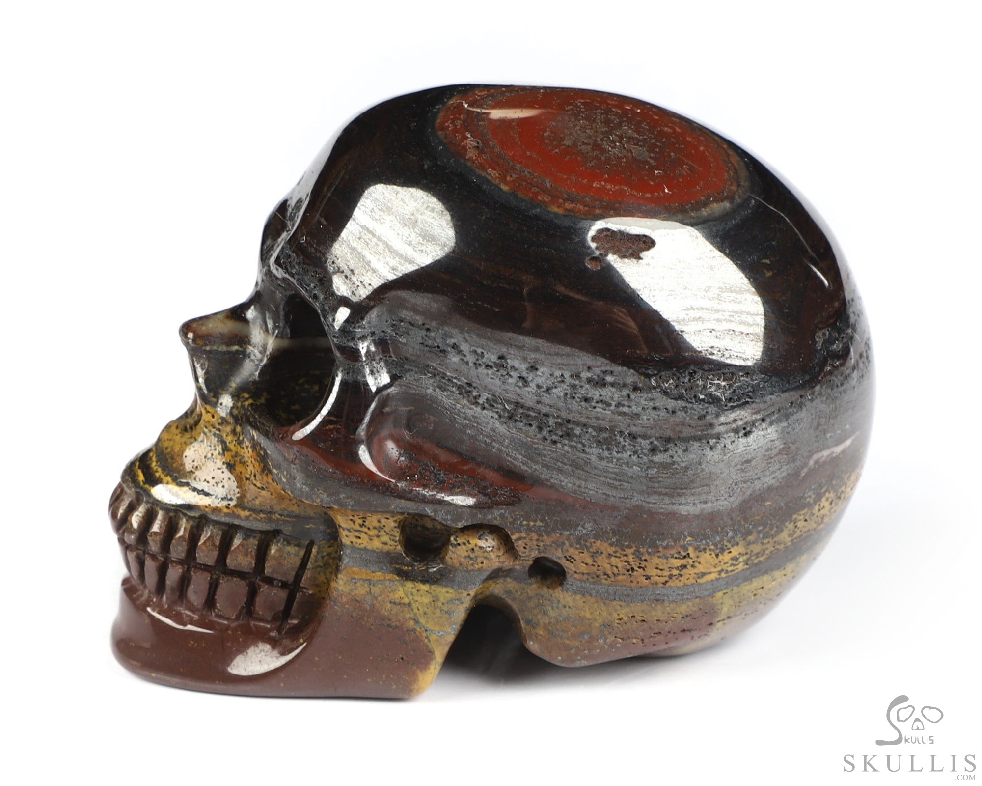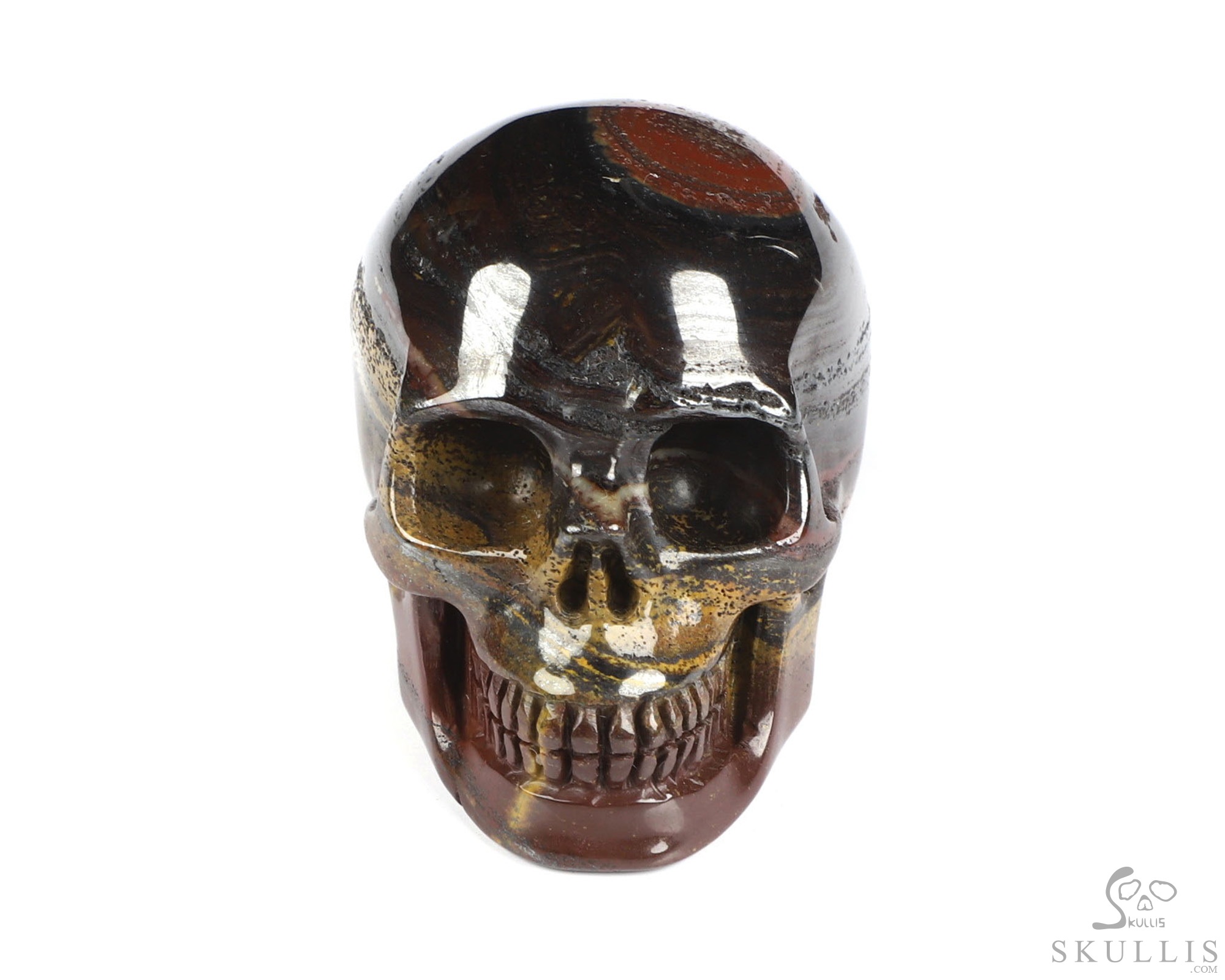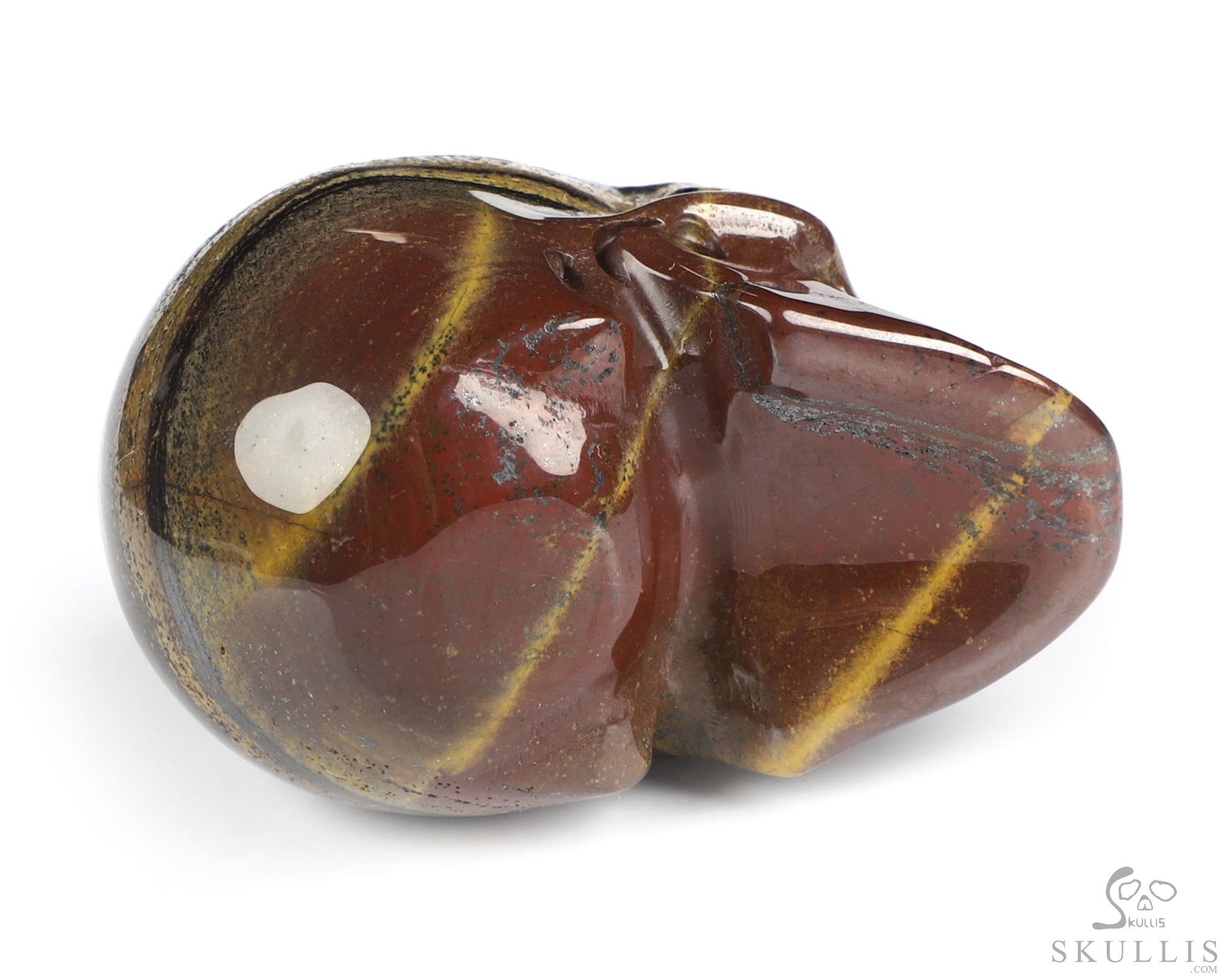 You are looking at a Colorful Tiger Iron Eye skull. The skull is 2 inches from front to back.