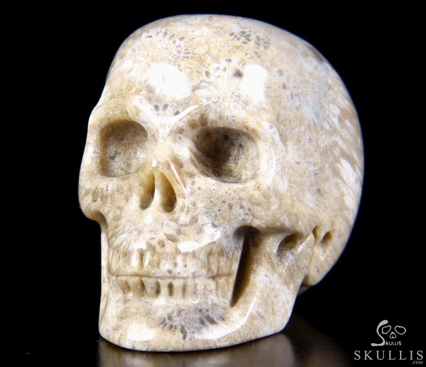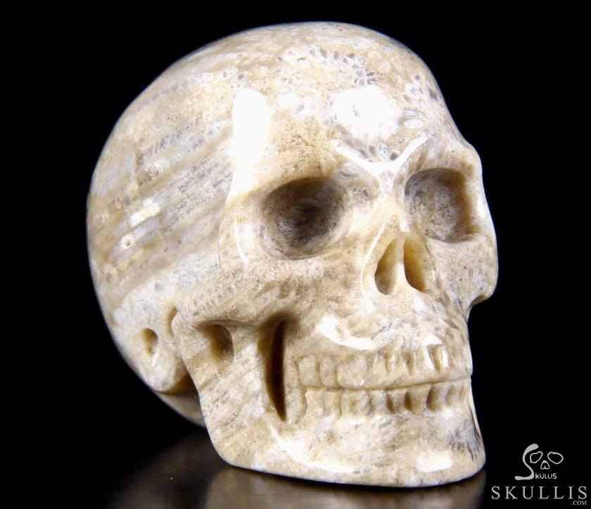 2.0" Coral Fossil Hand Carved Crystal Skull, Realistic, Crystal Healing