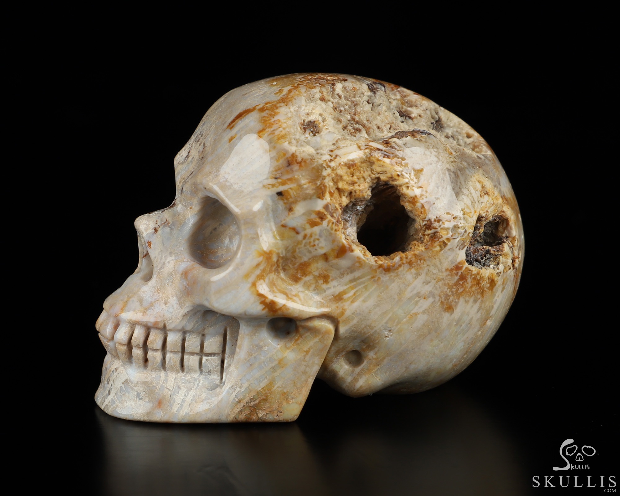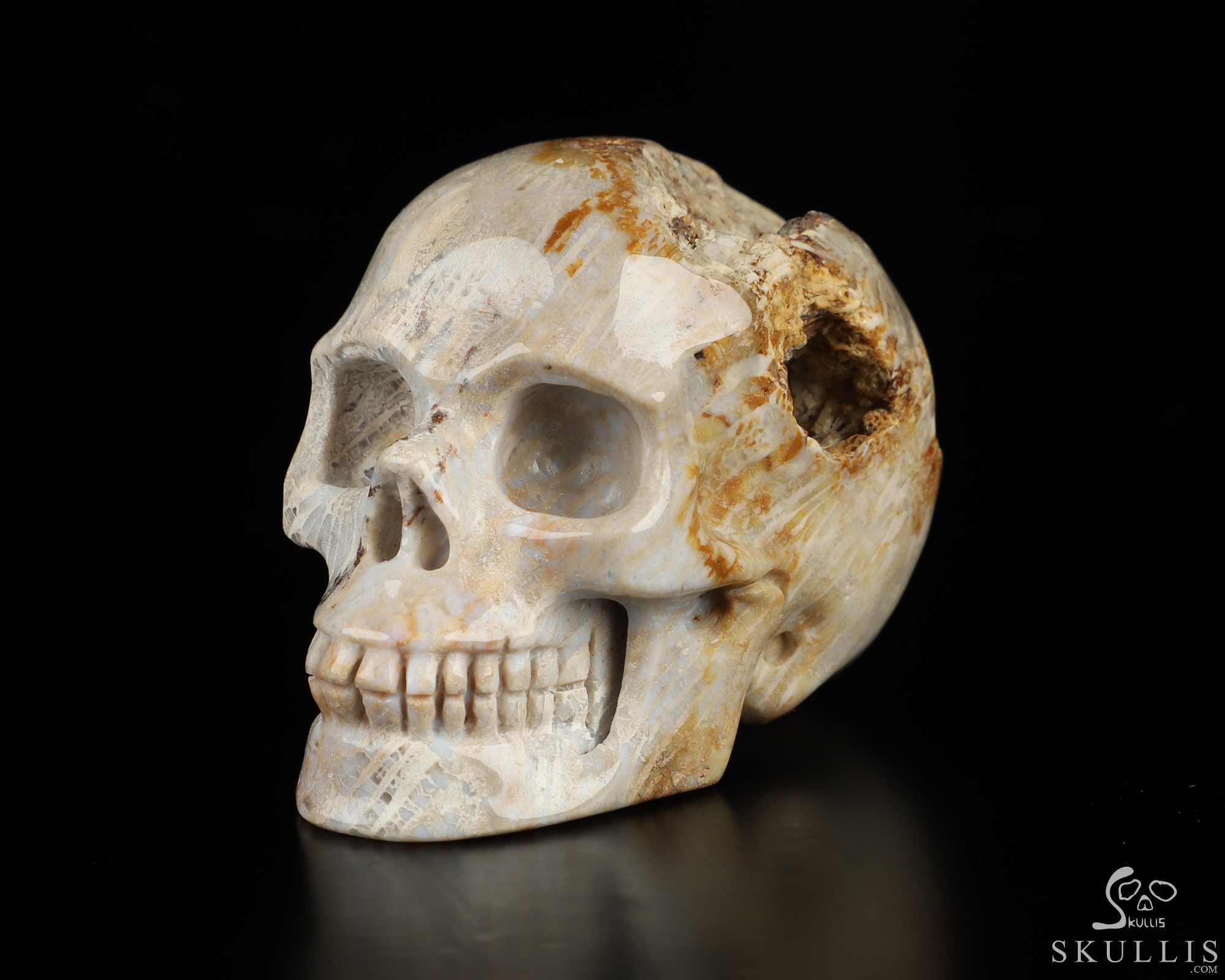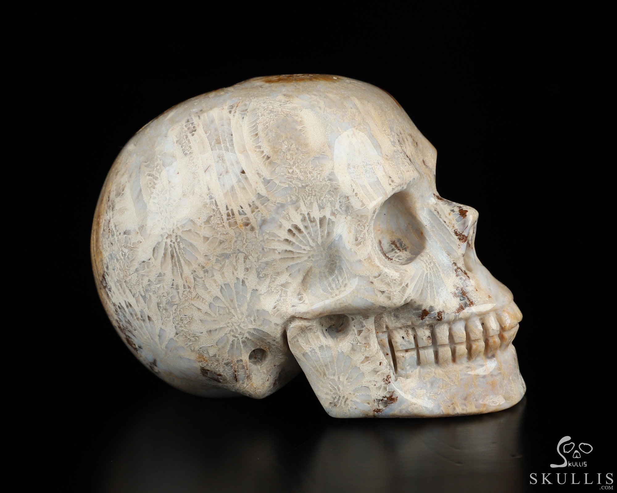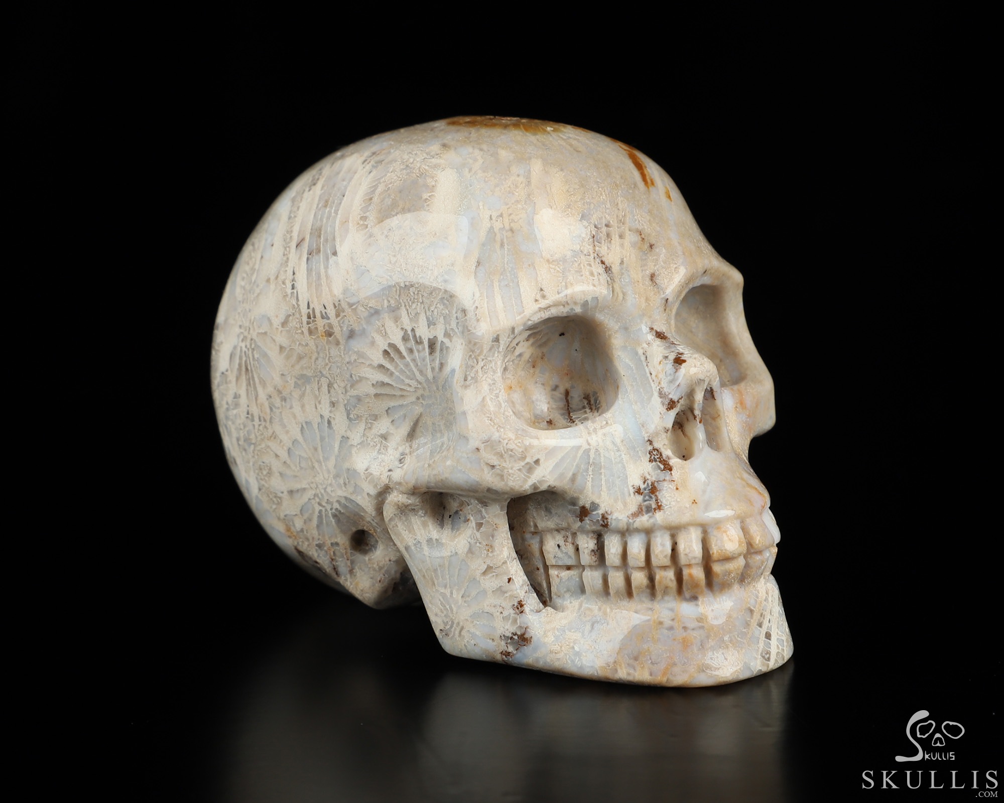 4.5" Coral Fossil Hand Carved Crystal Skull, Super Realistic, Crystal Healing