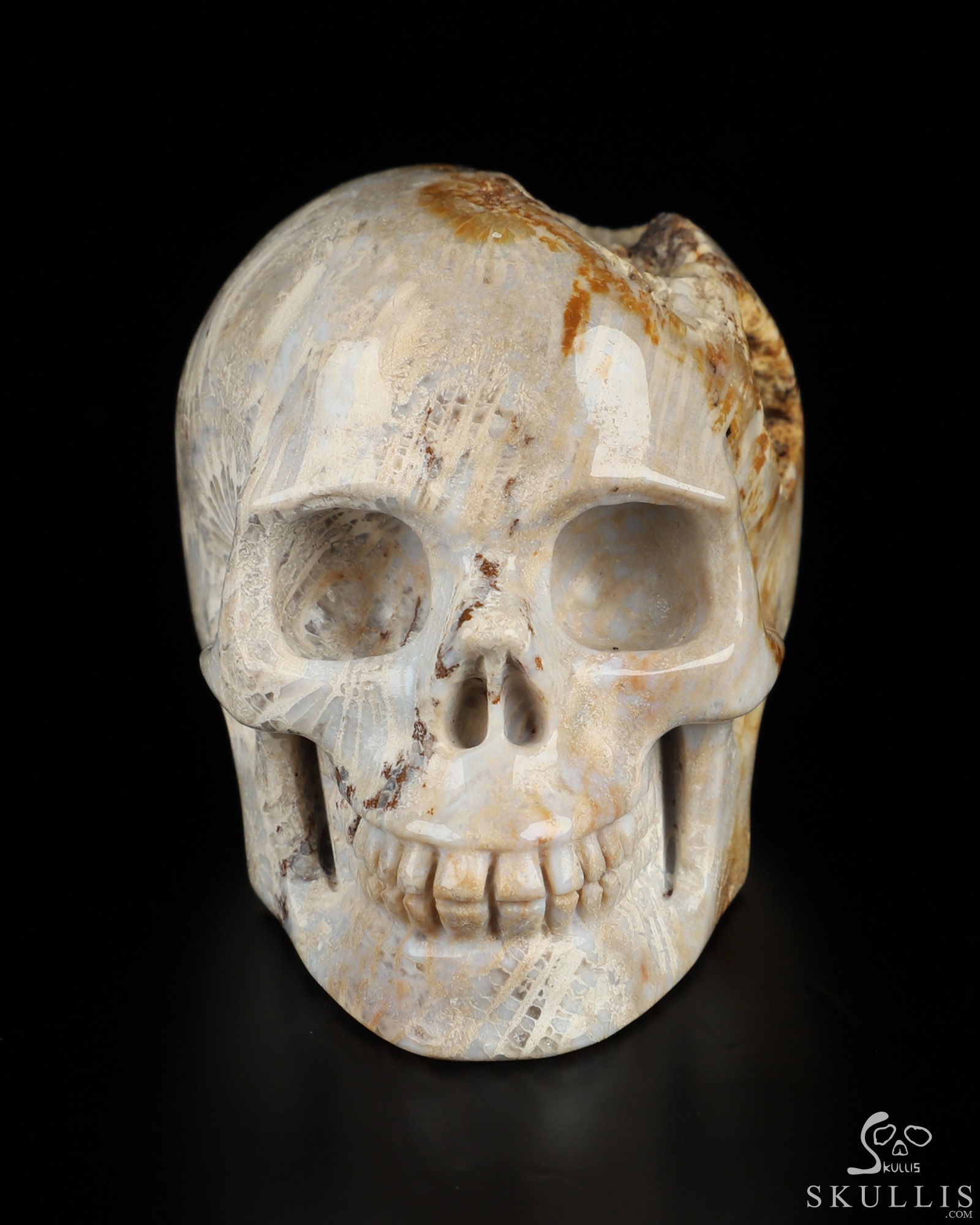 Lifesized 6.9" Coral Fossil Carved Crystal Skull,Super Realistic, Crystal Healing