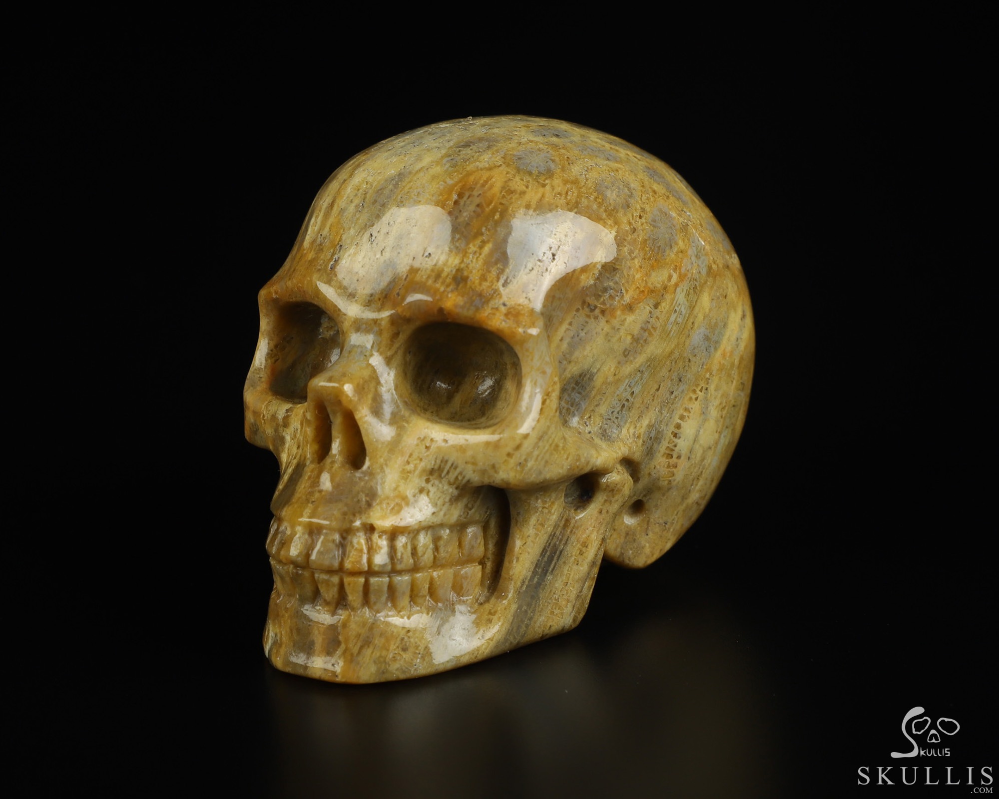2.1" Coral Fossil Hand Carved Crystal Skull, Realistic, Crystal Healing