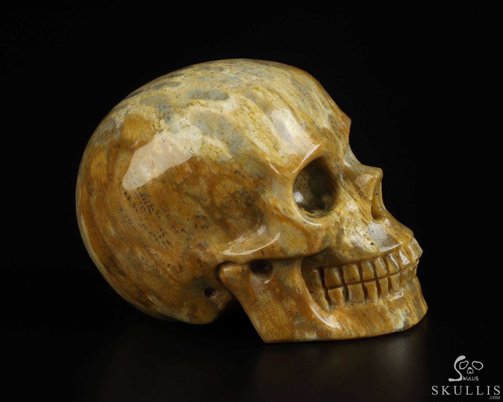4.1" Coral Fossil Hand Carved Crystal Skull, Super Realistic, Crystal Healing