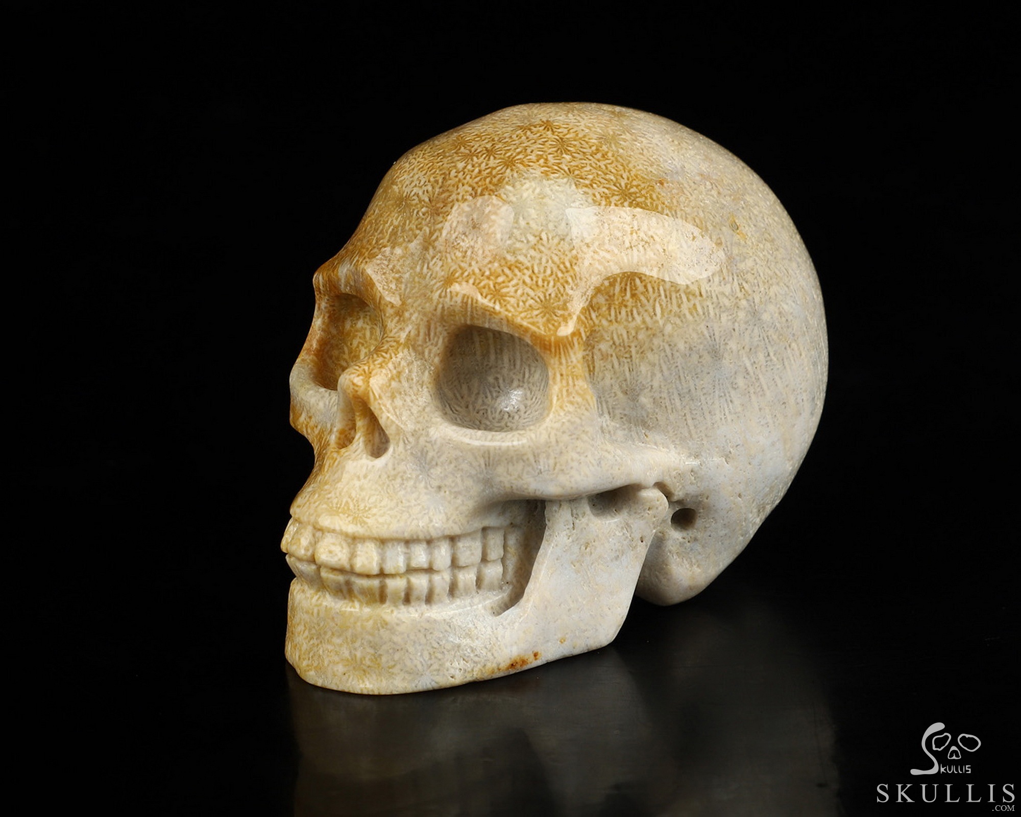 5.3" Coral Fossil Carved Crystal Skull, Realistic