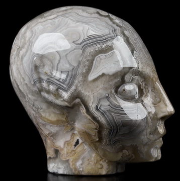 (38.4LB )Feb 3, 2015 ACSAD (A Crystal Skull a Day) - Faly Goavana - Titan Crazy Lace Agate Carved Crystal Skull Sculpture