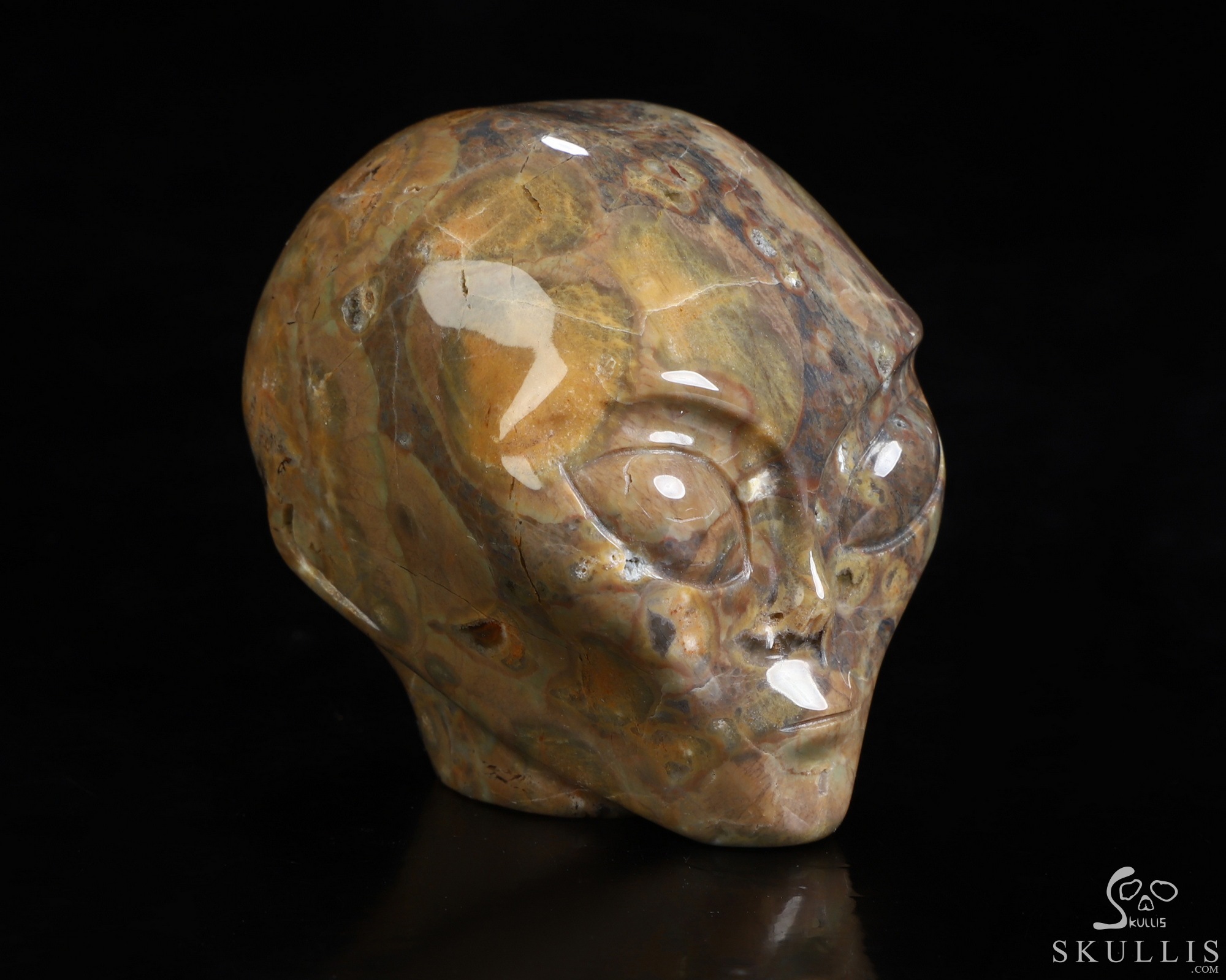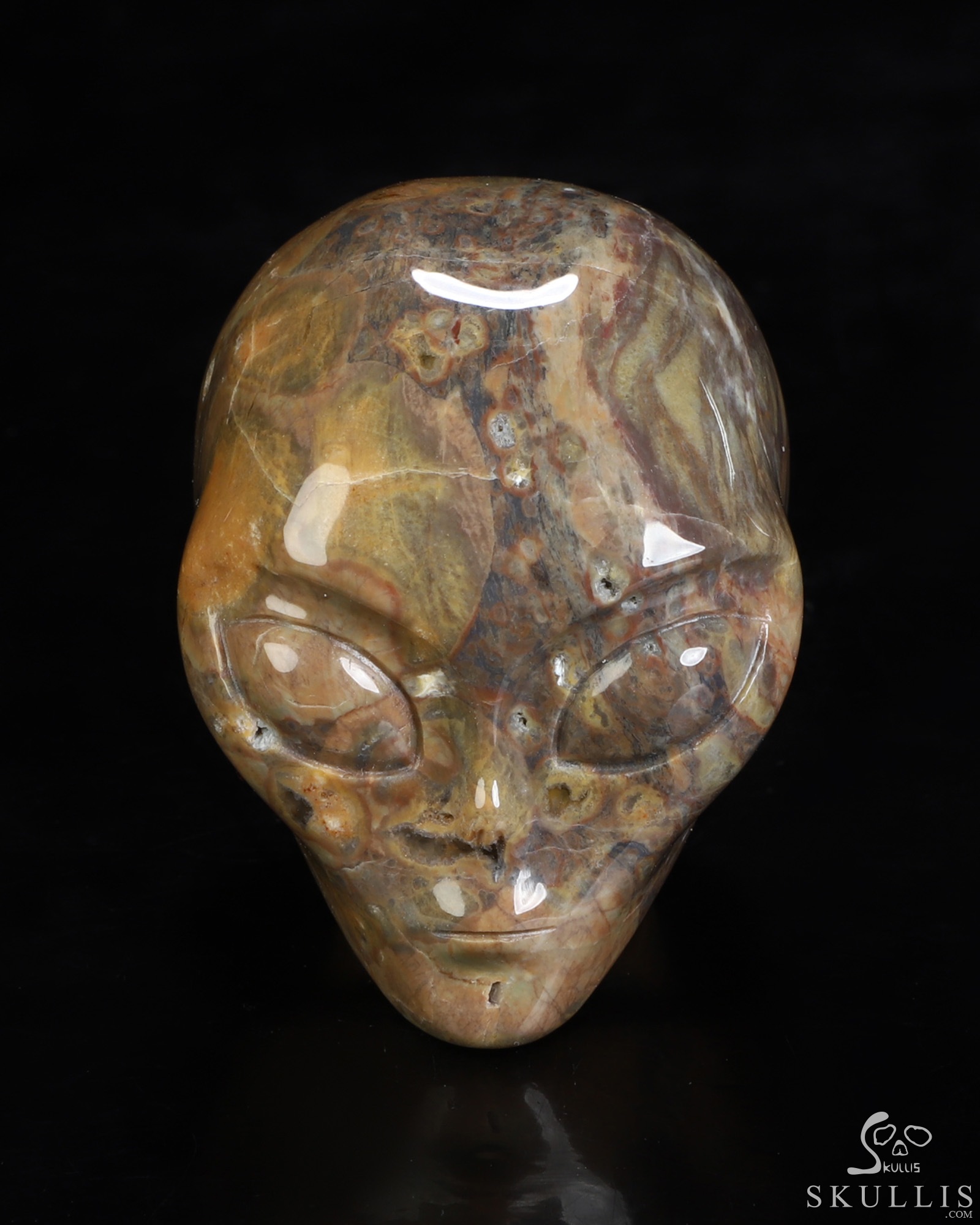2.0" Dinosaur Egg Agate Star Being Female Alien Crystal Skull Companion, Hand Carved Gemstone Fine Art Sculpture, Reiki Healing Stone Statue