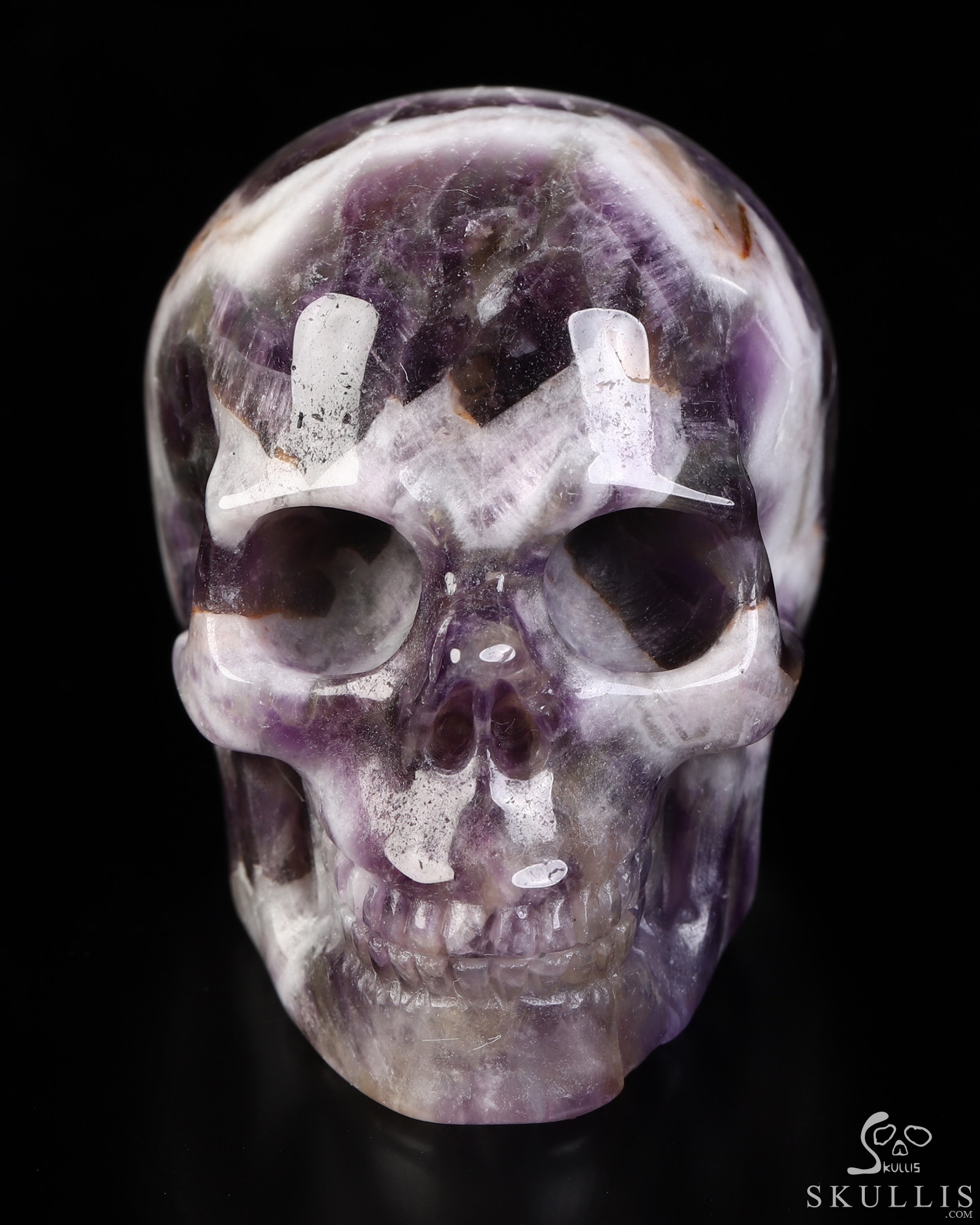 BEAUTIFUL LINES 5.1" Dream Chevron Amethyst Carved Crystal Skull,Super Realistic, Crystal Healing